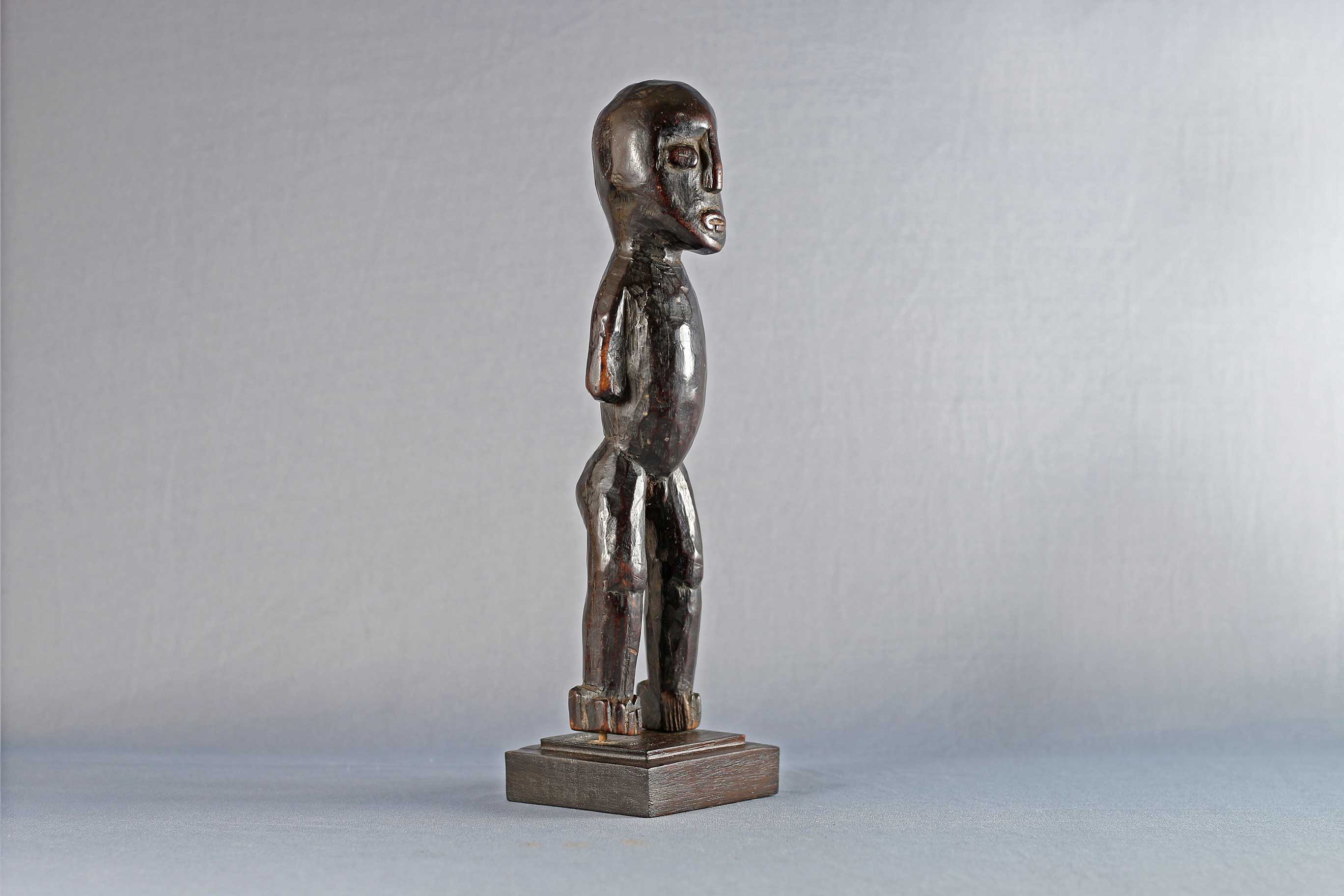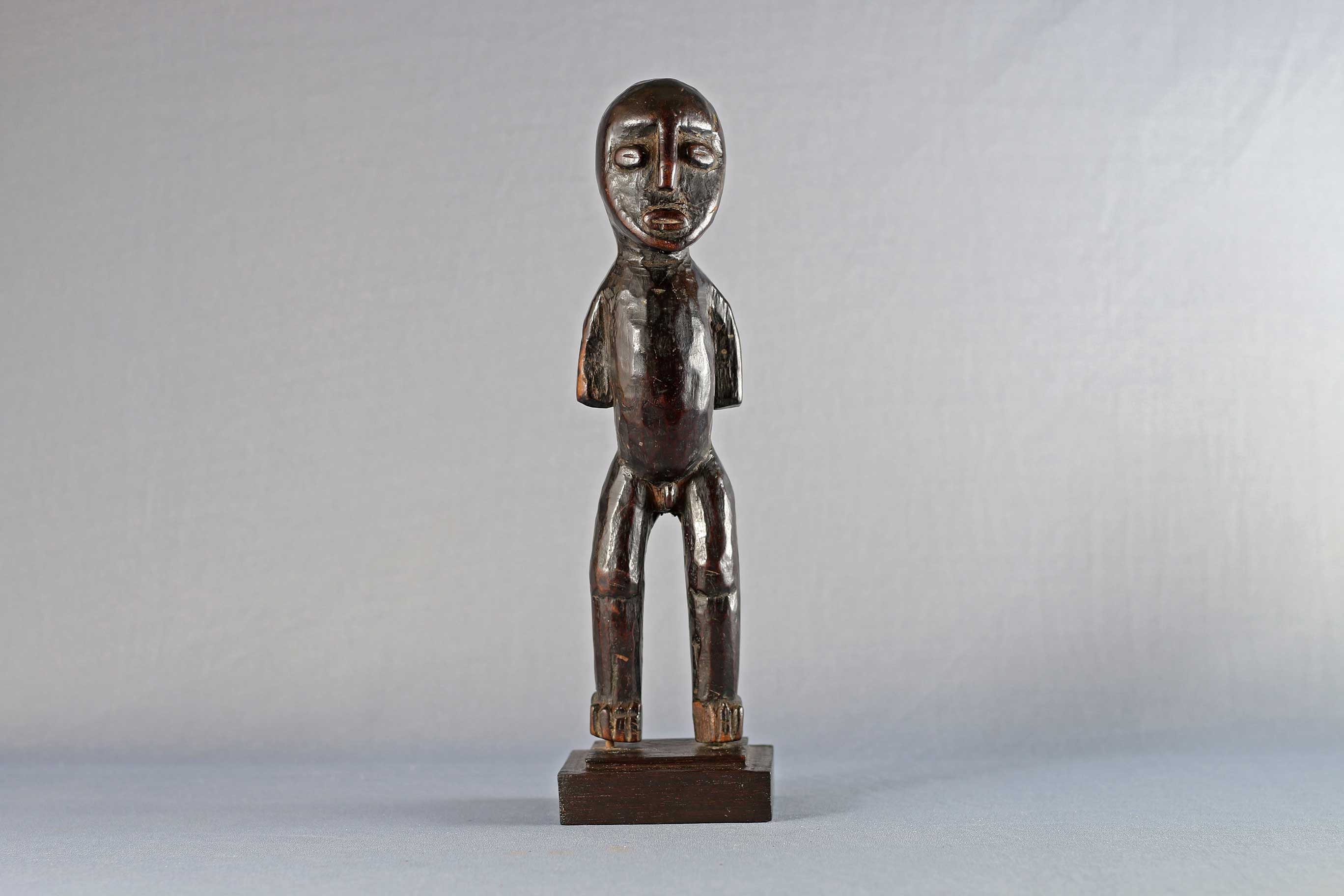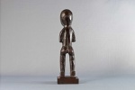 The Lega inhabit the virgin forest of eastern DRC, between the great lakes and the Lualaba River, next to Luba people. All Lega art is used within the context of the Bwami society for the production of most Lega artwork, which includes ivory and wooden statuettes and masks. Ivory objects are reserved for the highest level, Kindi, while wooden objects are used by Kindi and Yonanio, the second level.