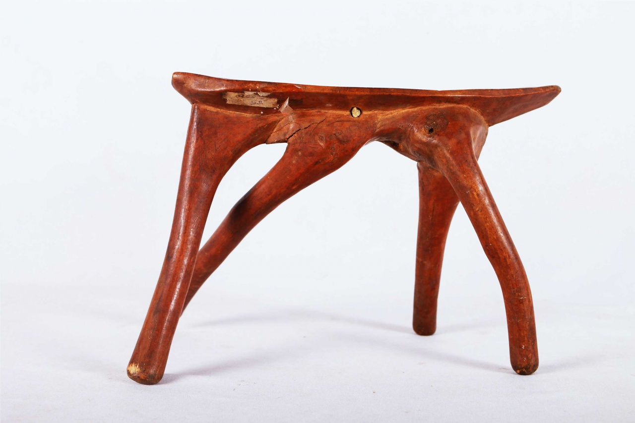 The flat platform of this headrest serves as a stool or headrest and the other pieces on the headrest were of unexpected use. This old piece has a narrow horizontal platform and legs that extend in different directions to give resistance and stability. It shows traces of frequent usage, has a wonderful patina and it shows clear signs of age.