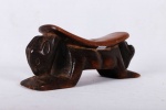This particular piece is nicely carved from one piece of wood. It is stylized with an abstract form of an animal, which is typical of the arts of the Luba. It shows signs of frequent usage, old wonderful brown patina. Some wear attesting to old age and clear signs of natural abrasion.