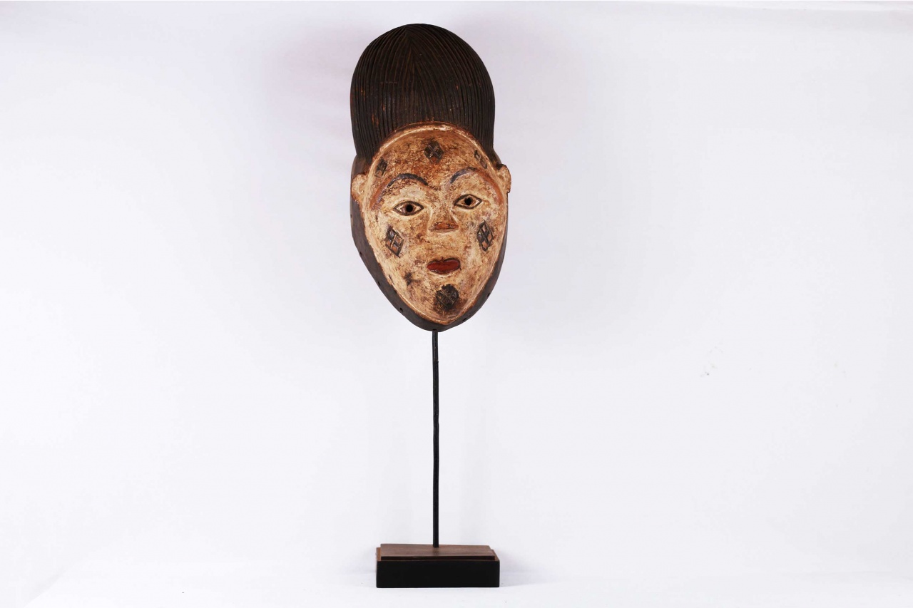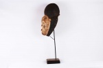 This Luba mask originates from the south-eastern Democratic Republic of Congo (Zaire). The Luba people neighbour the Songye tribe, Zela, Kunda and their masks share similar characteristics to those of the Songye tribe. Their masks were hand-carved and hand-painted by individual artists. The Luba are known to be inventive when it comes to persona depicting on their masks. Among the Luba, some masks depict non-traditional forms, for example, this particular mask commonly known as a “La Belle Madeleine” depicts exotic characteristics of a catholic nun with a lovely face, it has a dark patina and the face surface is covered in the paint like a coat, it shows visible signs of age and usage.