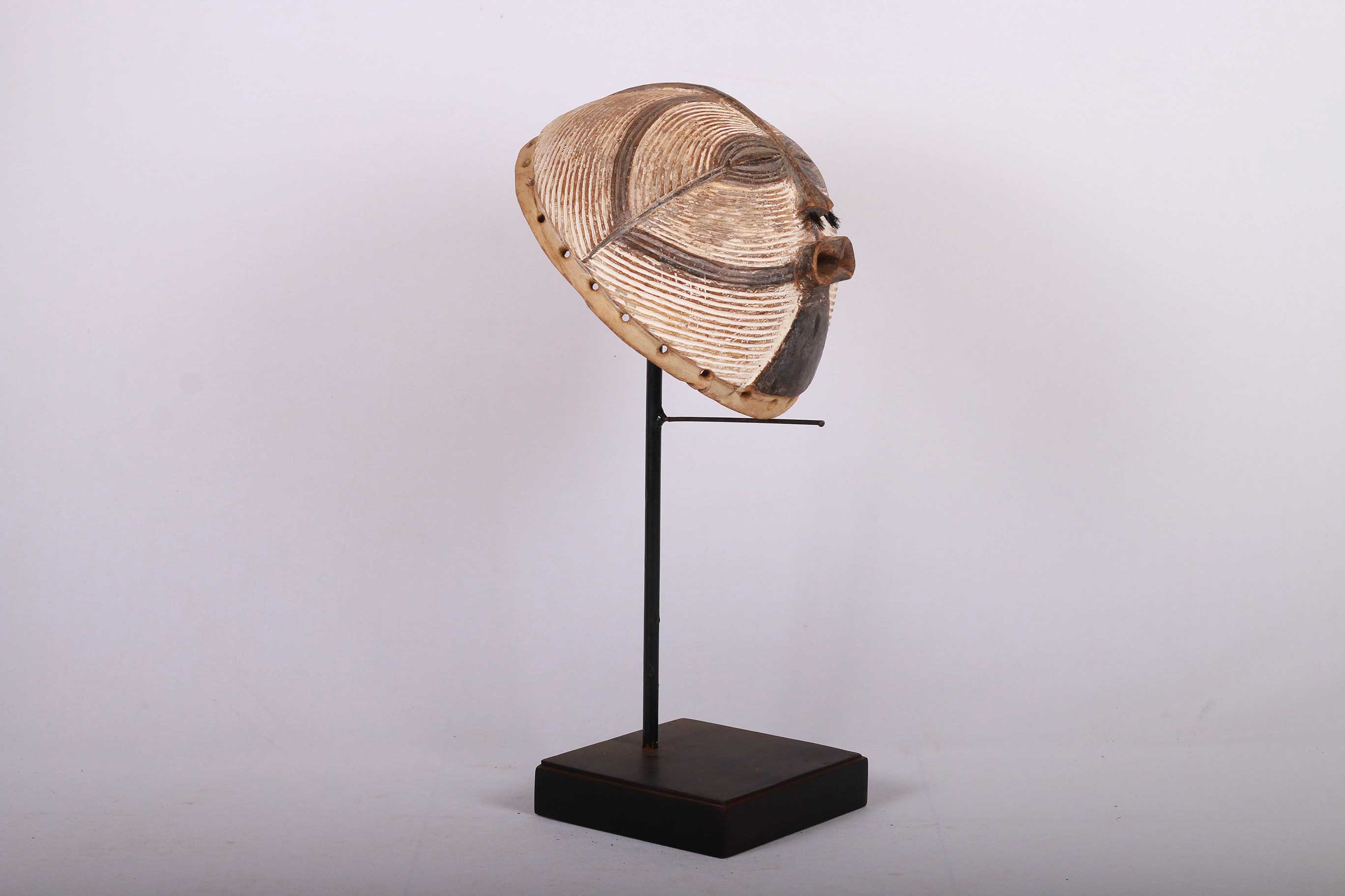 This Luba mask originates from eastern Songye in Congo. The Luba people live near the Songye tribe and are mostly engaged in farming. Their masks share a similar characteristic as that of the Songye tribe and are also known as the Kifwebe. They used the masks for dances, lunar ceremonies or plays as artists hold a special place in the Luba tribe. Luba Masks differ in size, color and look and this is simply because each Luba mask is hand-carved and hand-painted by individual artists so no two masks are exactly the same. The following mask shows great signs of usage and age.