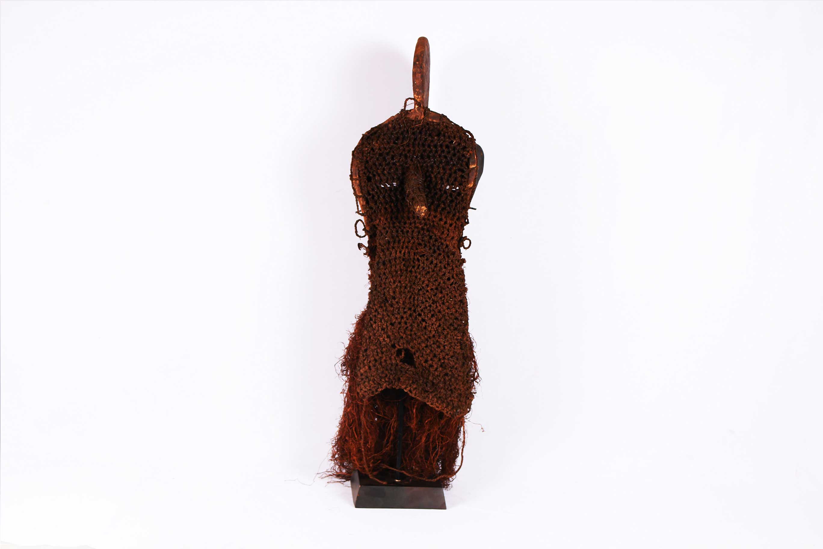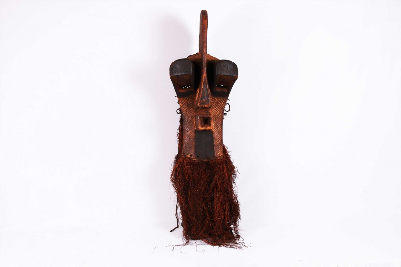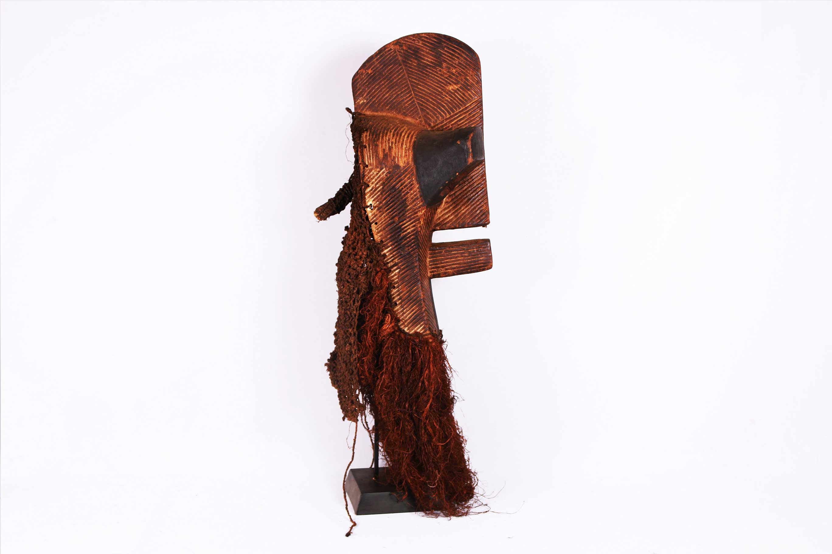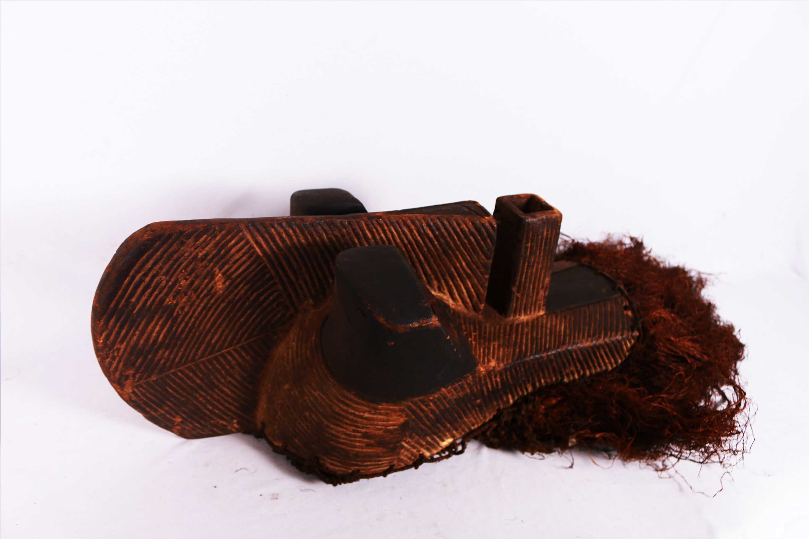 Kifwebe masks were made for the Kifwebe association, a type of society that provided a means of controlling social behavior and neutralizing disruptive elements within the group. These masks appeared at the installation and death of a chief, and at the initiation rites of young men as well as a whole range of occasions that included punishments, warfare, and public works. There are great variety and symbolism within the various Kifwebe masks. More than thirty different mask names have been recorded. Several have animal names while other masks have names of illnesses like leprosy or names denoting natural phenomena. For the most part, Kifwebe masks no longer function to maintain social control among the Songye except in the southeastern regions bordering on Luba territory. Female masks, in direct relation to the physical world and procreation, move calmly; their task is to invoke benevolent spirits that will influence the future generation. Female masks are associated with the moon and are worn for moon rituals as well as during funerals and initiation rites. The following mask shows age and good usage. The following is a Luba Songye mask and it shows signs of good age usage.
