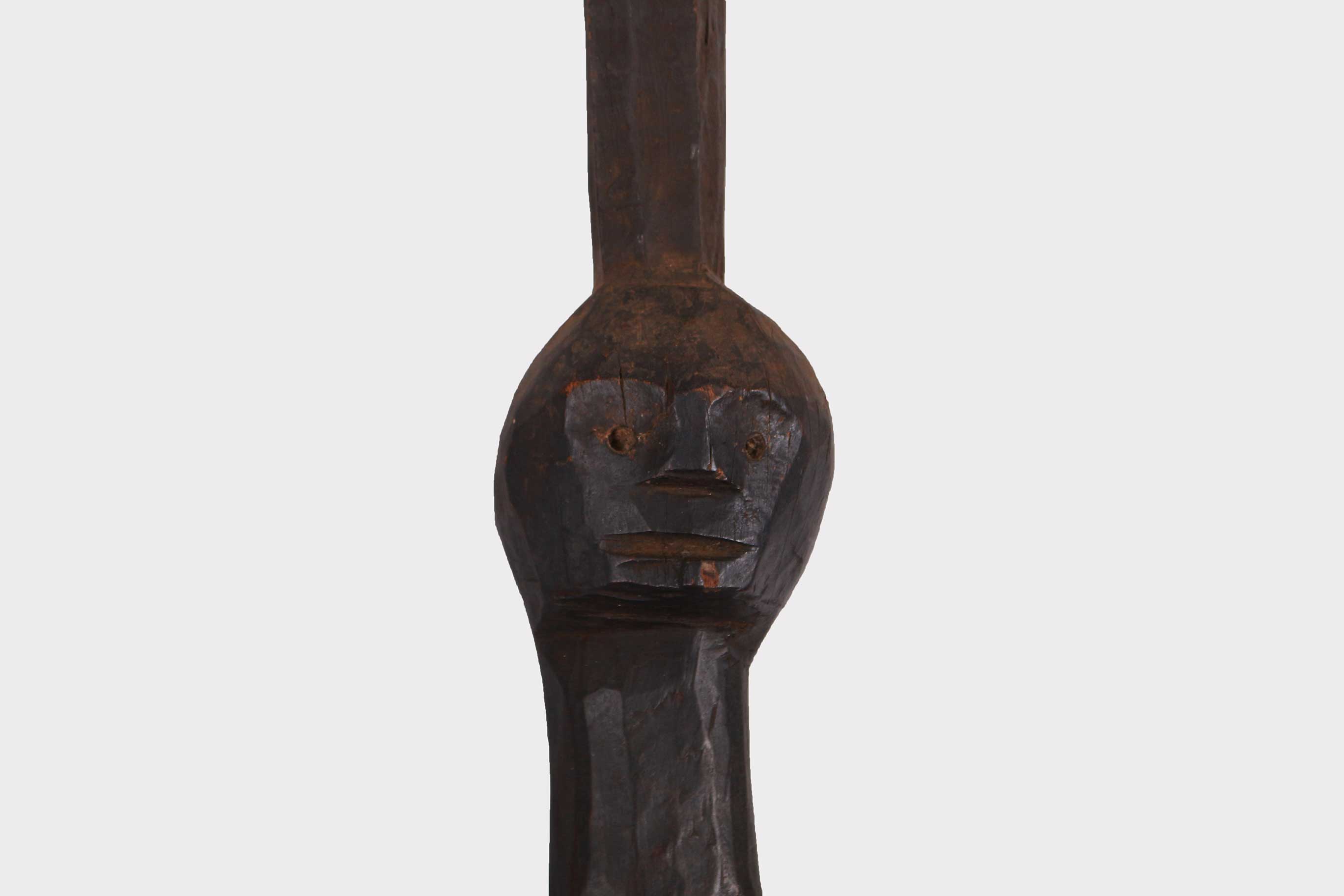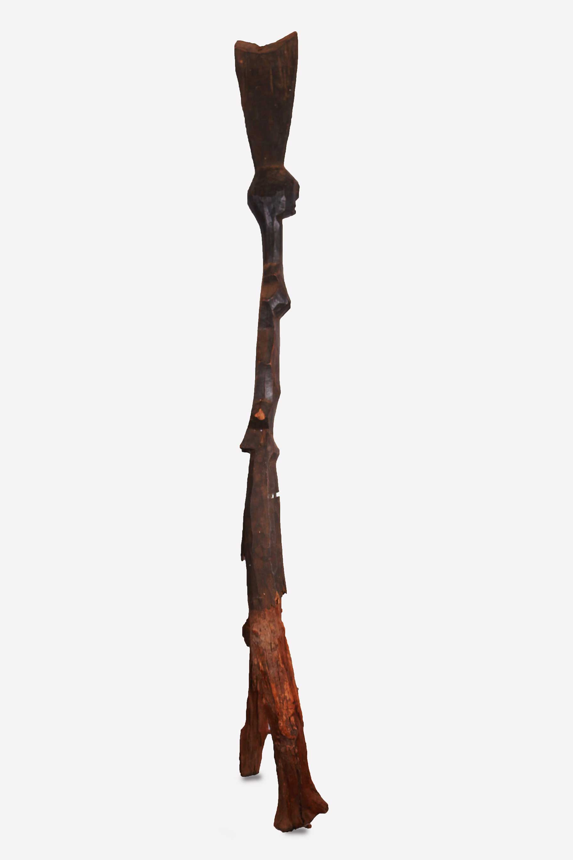 The Luguru are a Bantu cluster found in both east and central Tanzania. Very little is known about the Luguru art but the following sculptures were often placed inside people’s houses/huts. We could not substantiate what the following posts were used for but they have clear signs of age and good usage. This is a tribal art piece carved out of heavy dense wood with a dark patina.