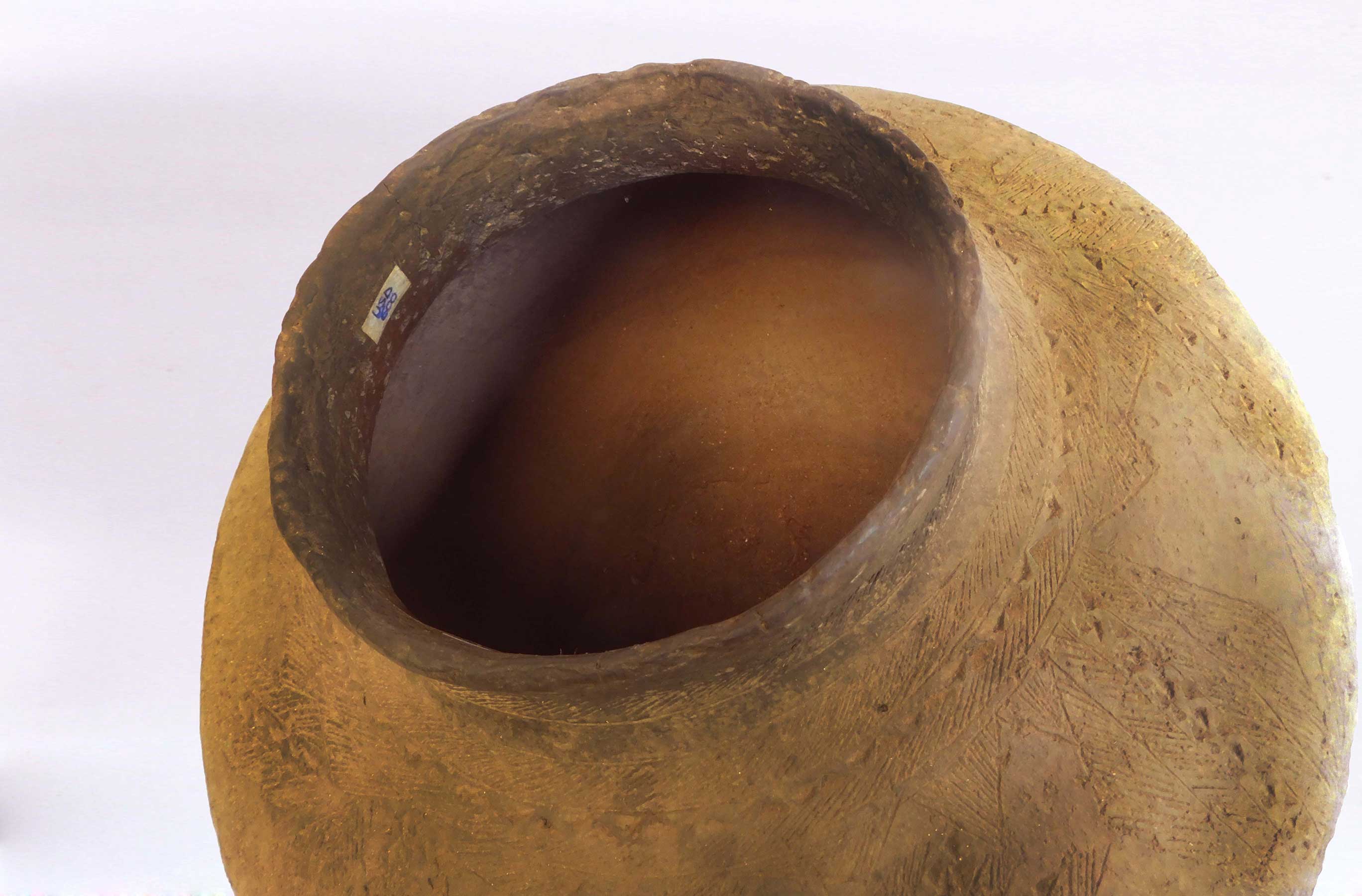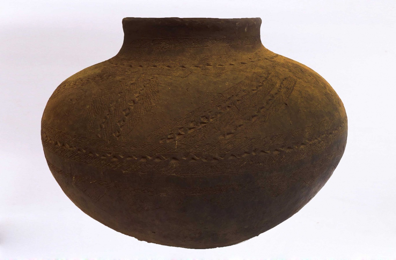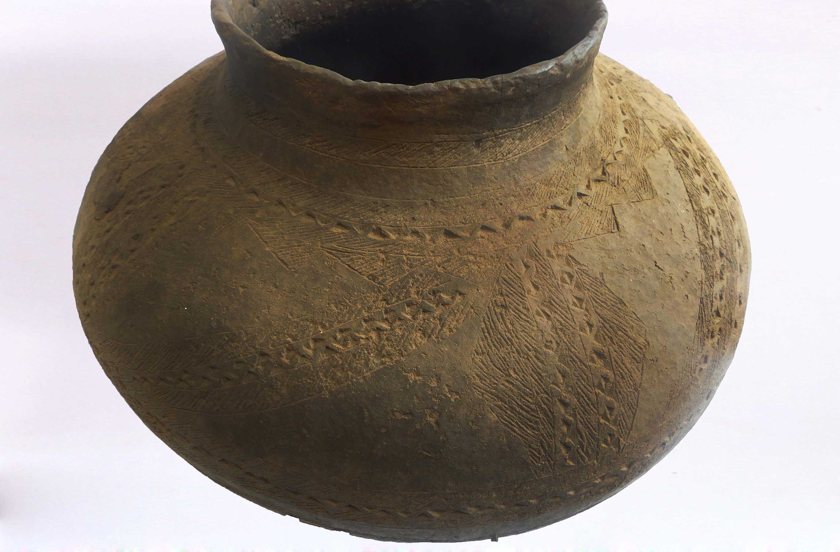 This beautiful Makonde pots from Mozambique possess an elegant style of clay molding. This Makonde vessel is unusual in its simplicity and elegance of form. The slight bulge of the shoulder makes the pot seem inflated. The clay body contains a significant amount of mica, which causes the surface to slight sparkle.