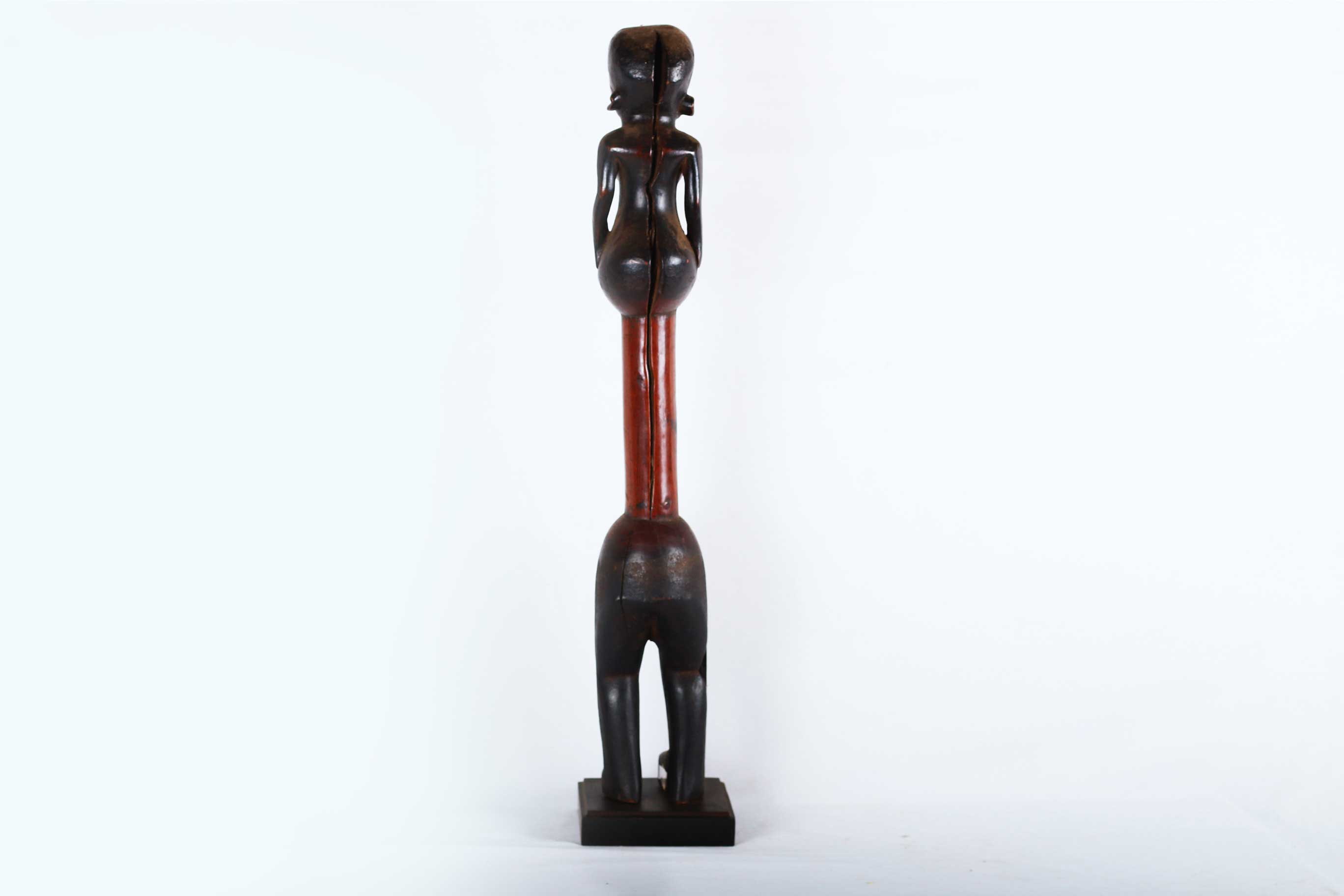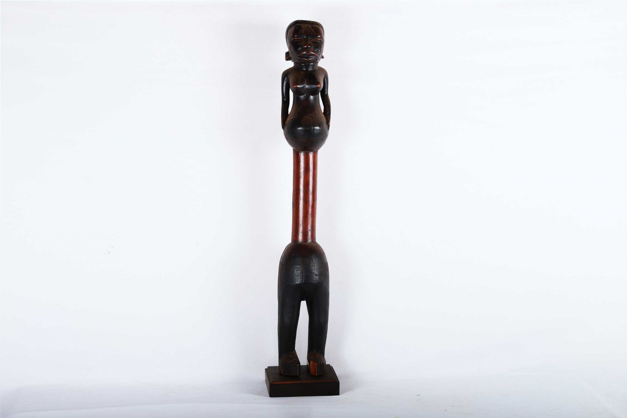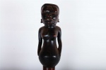 The Makonde of Tanzania and Mozambique are separated by the Rovuma River and are culturally distinct. The Makonde are known as master carvers throughout East Africa, Makonde sculptures were used as objects of worship. The following Makonde statue has a dark brownish shiny patina and is made out of hardwood, it looks visibly old.