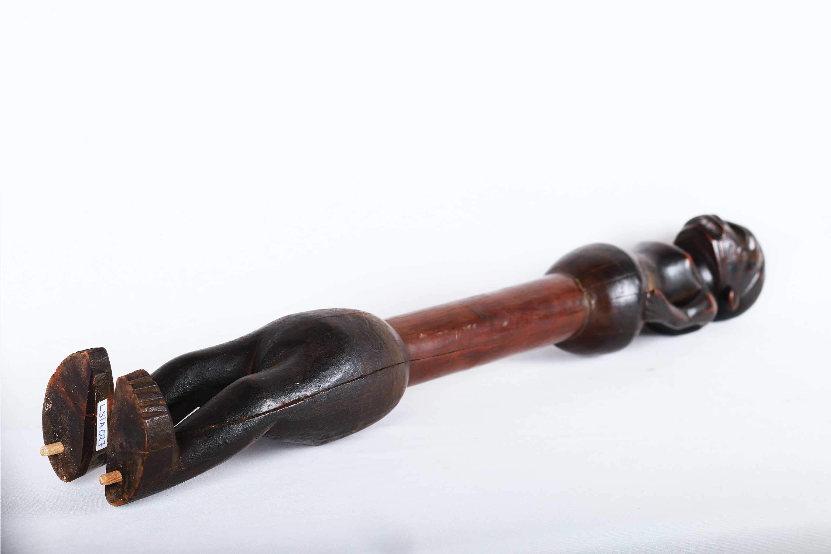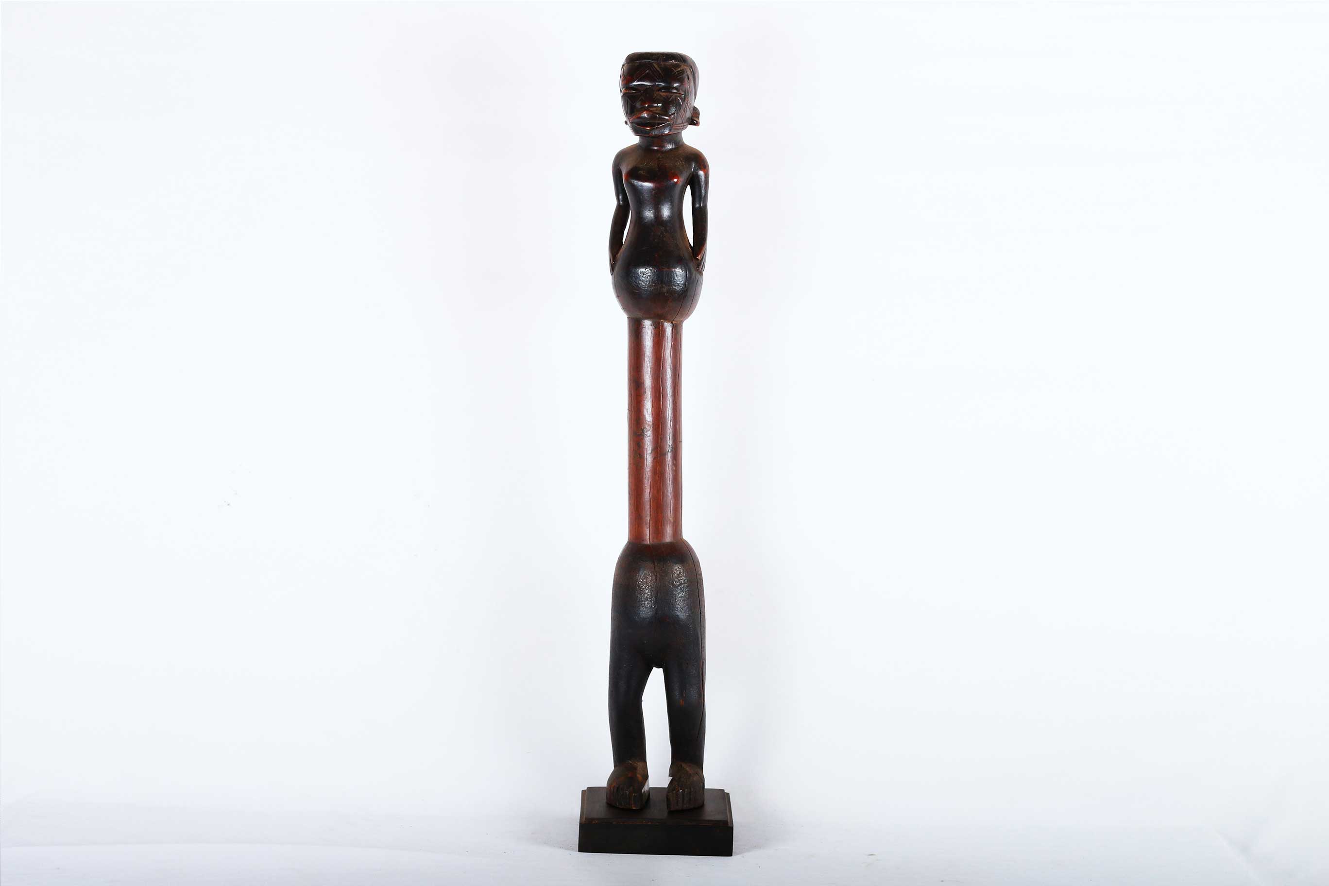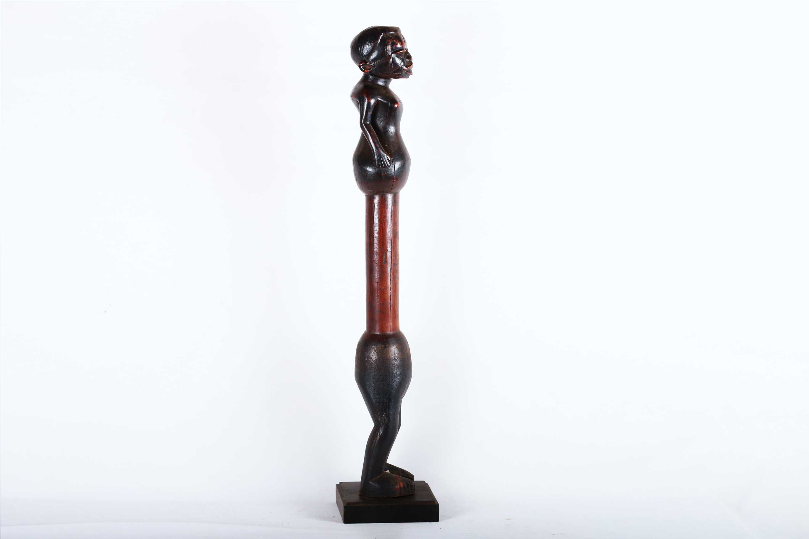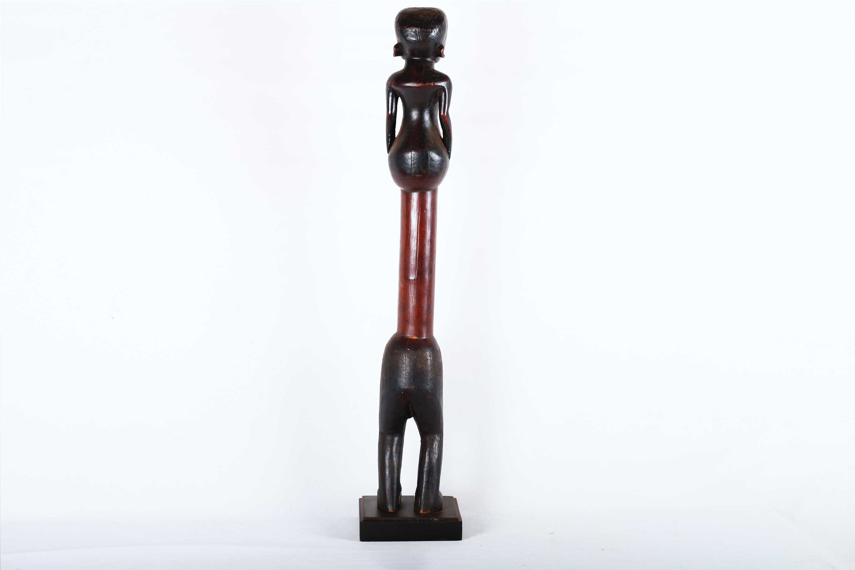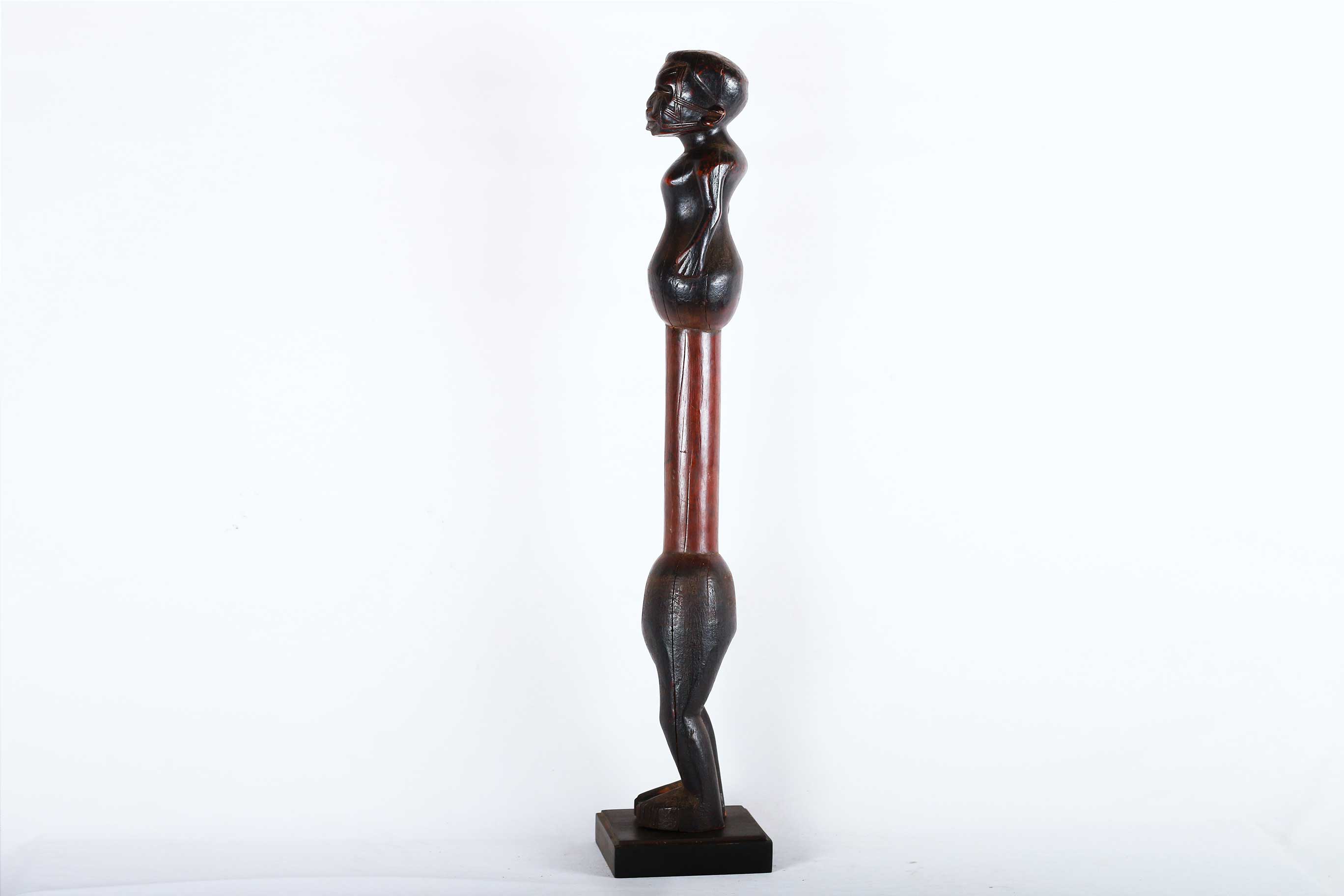 The Makonde of Tanzania and Mozambique are separated by the Rovuma River and are culturally distinct. The Makonde are known as master carvers throughout East Africa, Makonde sculptures were used as objects of worship. The following Makonde statue has a dark brownish shiny patina and is made out of hardwood, it looks visibly old.