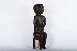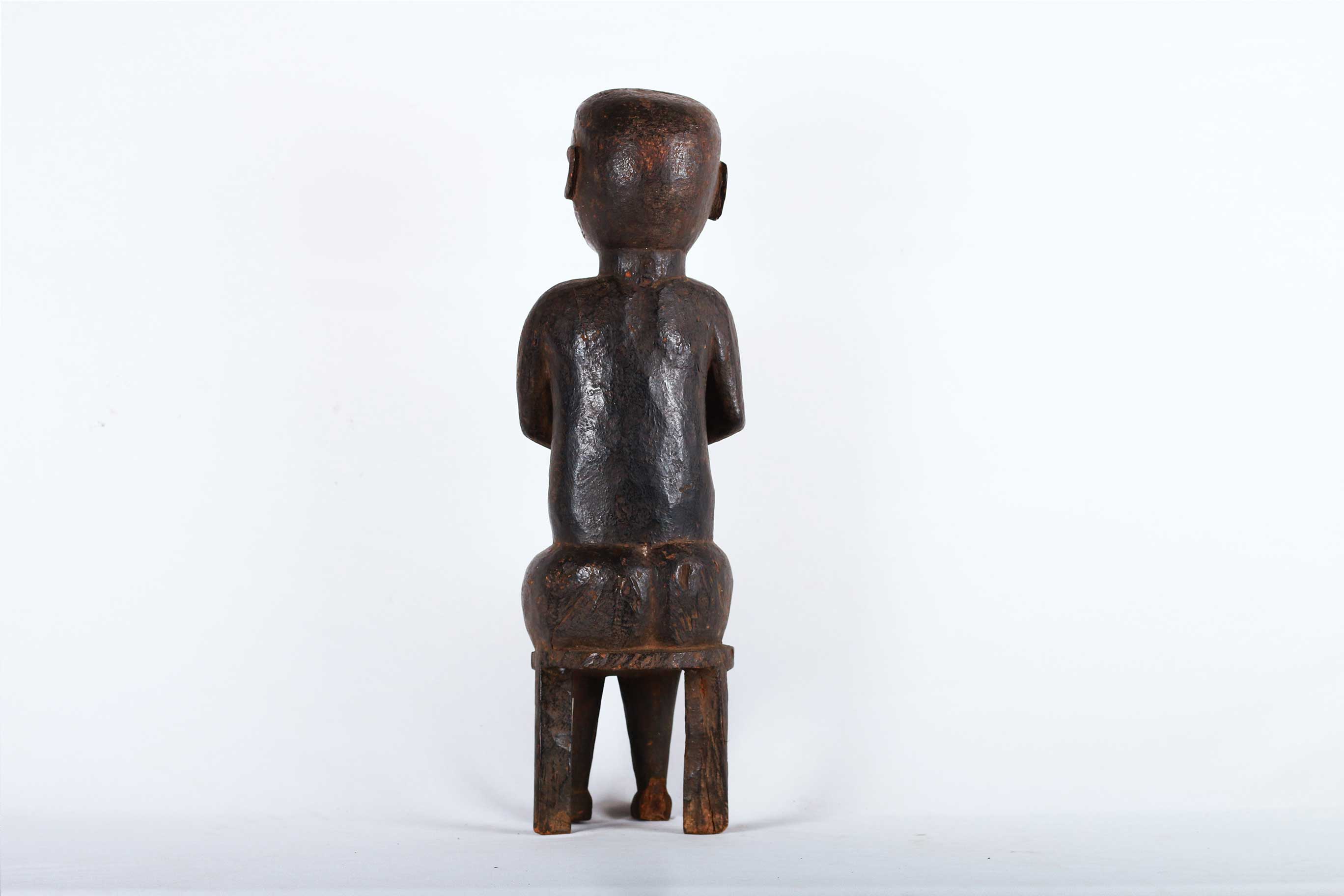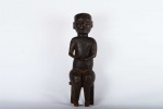 The Makonde of Tanzania and Mozambique are separated by the Rovuma River and are culturally distinct. The Makonde are known as master carvers throughout East Africa, Makonde sculptures were used as objects of worship. The following Makonde statue has a dark brownish shiny patina and is made out of hardwood, it looks visibly old.