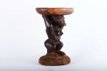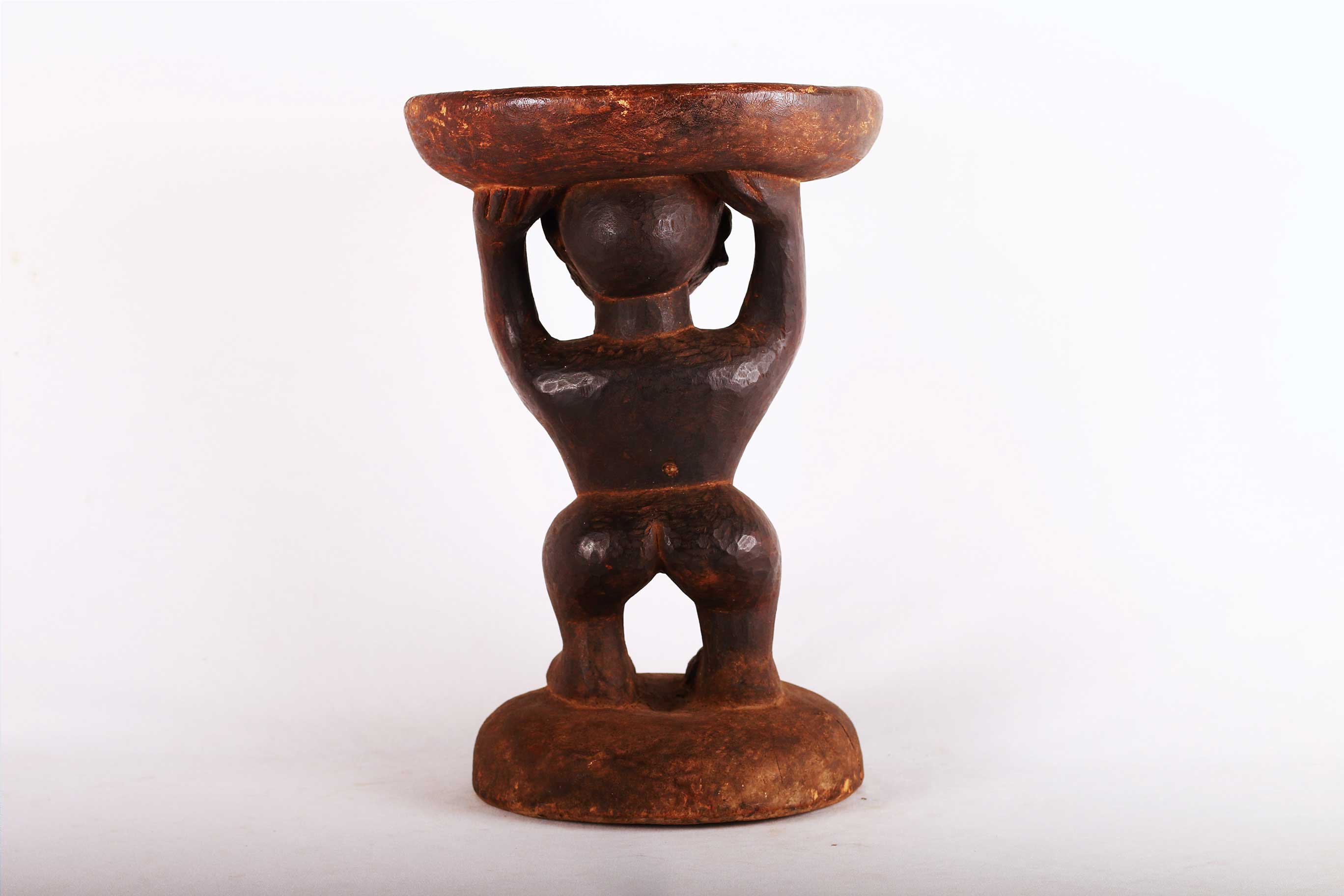 The Makonde are an ethnic group found in both Tanzania and Mozambique are separated by the Rovuma River. While everyday stools are regarded as quite ordinary objects in Tanzania, the chiefs of certain peoples have specially carved seats of the most various forms, including those with high backs. These stools were part of family treasures, which would be passed down from generation to and were used for ceremonies and rituals. They were also are token of leadership and, as it was not permitted to lay sacred objects on the ground, they were always placed on stool. The following Makonde stool is carved in hardwood and has a dark shiny patina and, it looks visibly old.