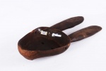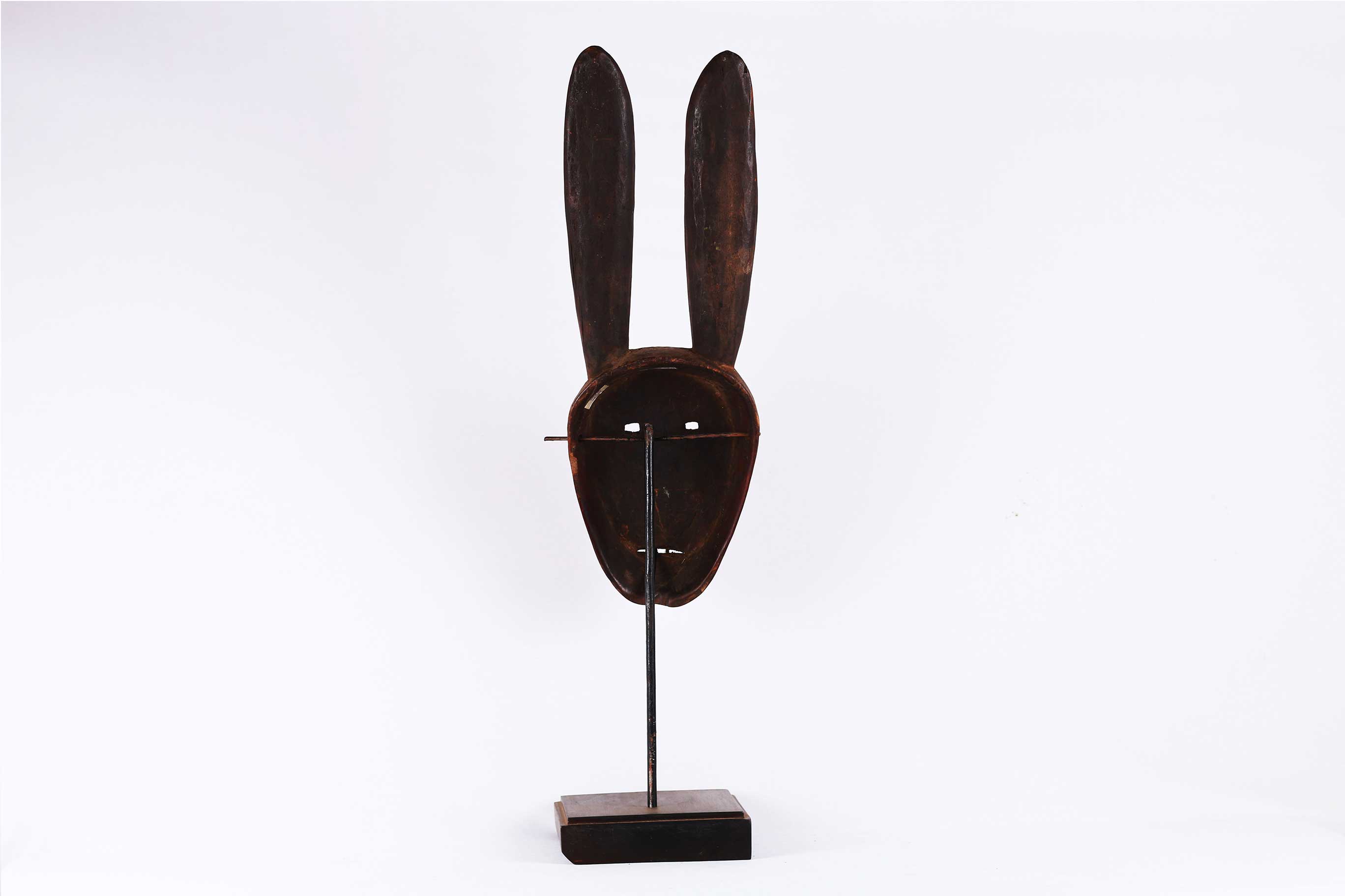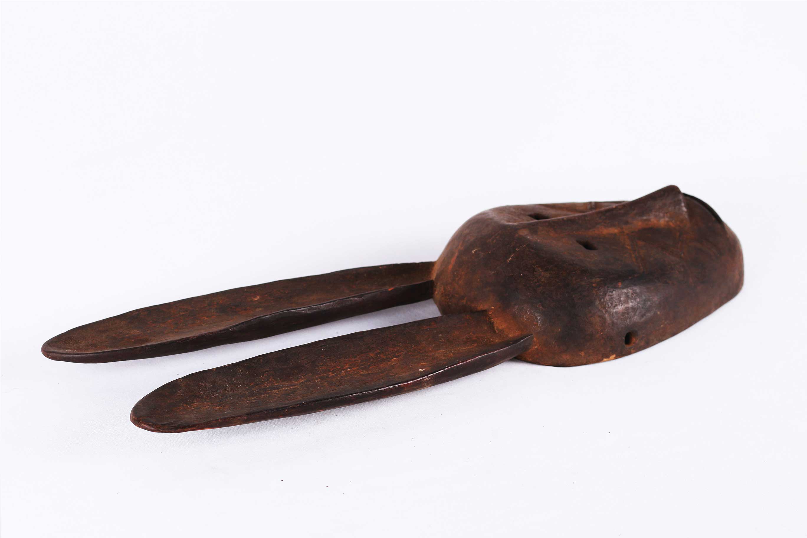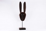The Makua people, also known as Makhuwa, are located in northern Mozambique and southern border provinces of Tanzania. This is a small mask with a flat nose which is a typical Makua style art form, small mouth, and eye openings which enables you to see out when dancing, long ears which make it unique. Such masks were used to hide a dancer’s head while dancing at ceremonies. It is carved out of hardwood with a brown and shows signs of old age due to usage.