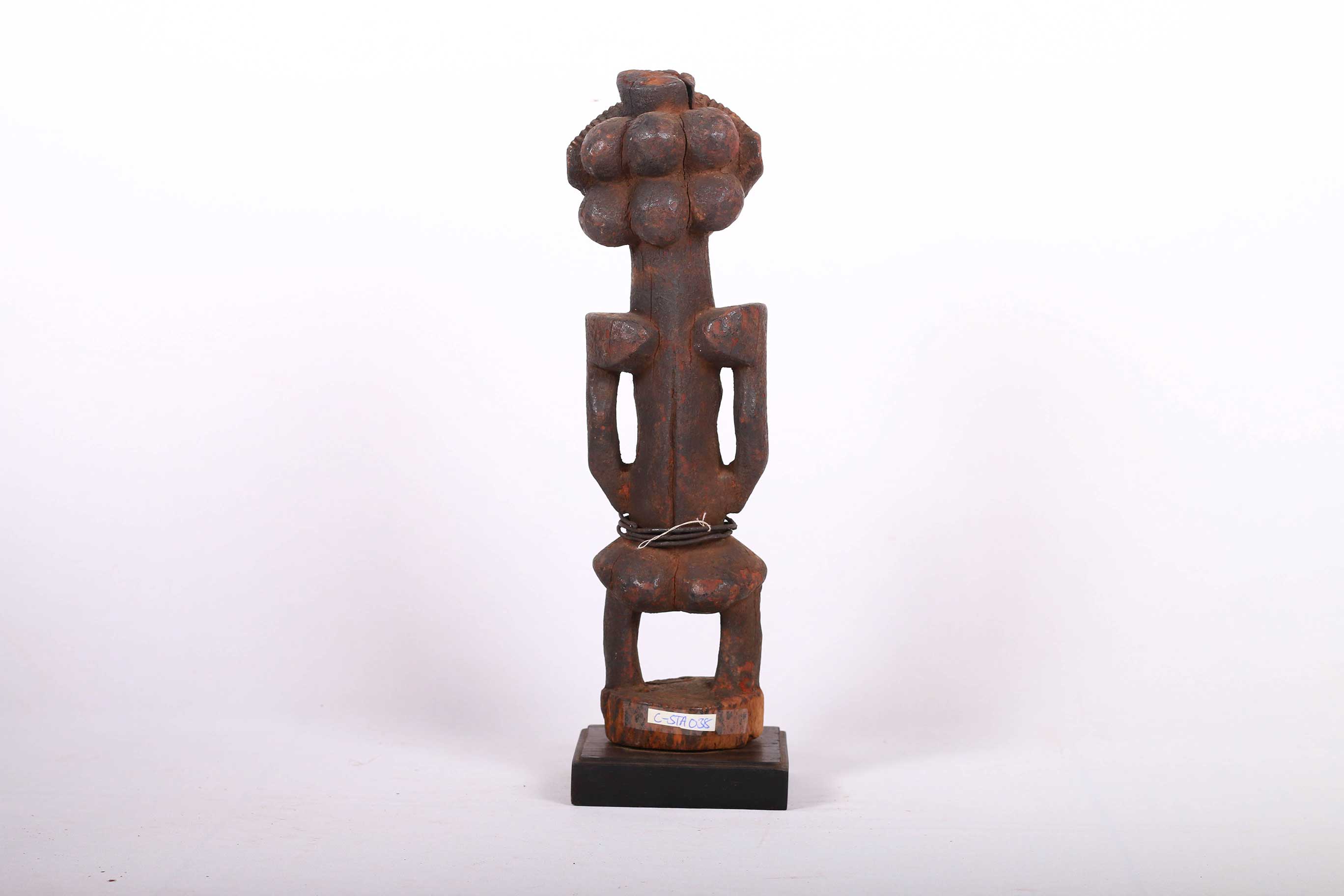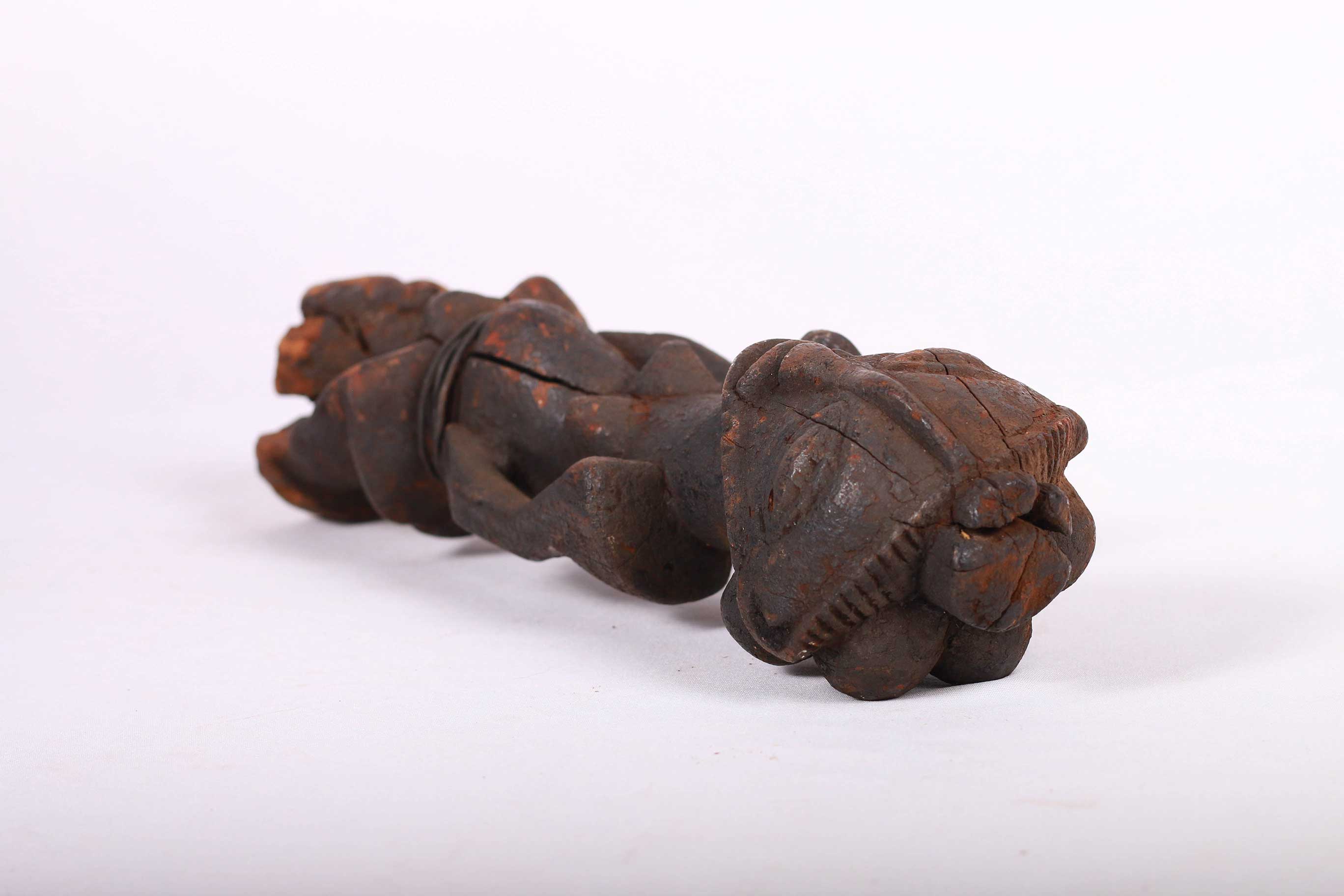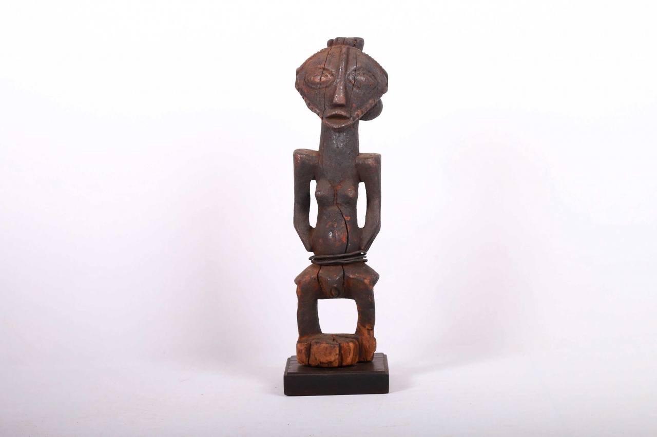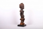 This ancient sculpture originates from the Mbuyu tribe. The Mbuyu are native in the northwest forests of the Democratic Republic of the Congo. Mbuyu carvings were symbolic and also representatives of various spirits. Such sculptures were important objects in ceremonial activities and some were owned by the Chiefs representing their rank in society.