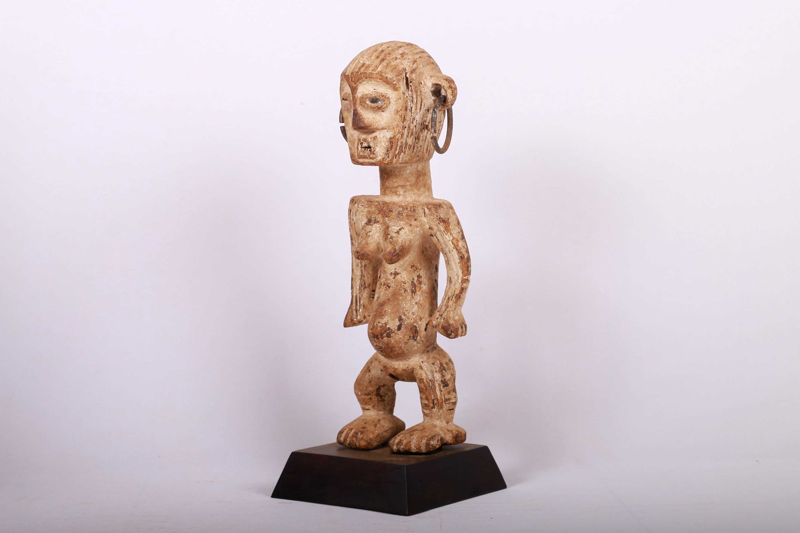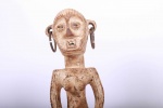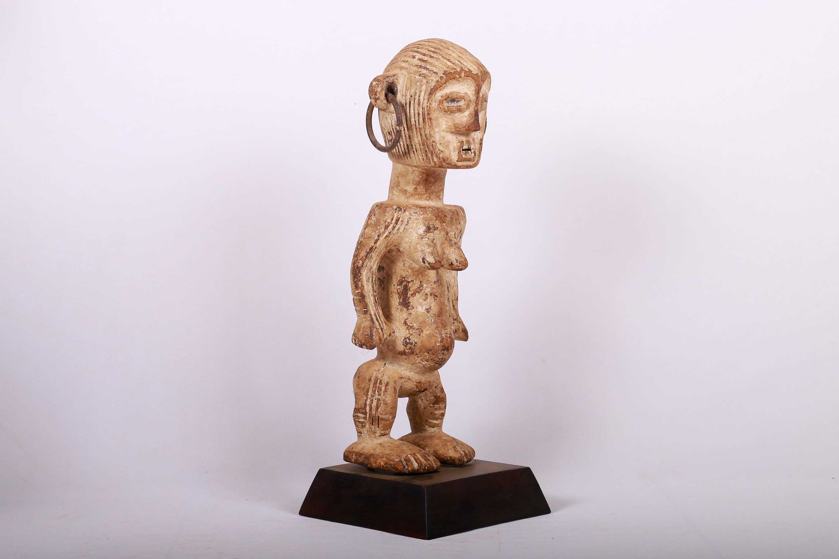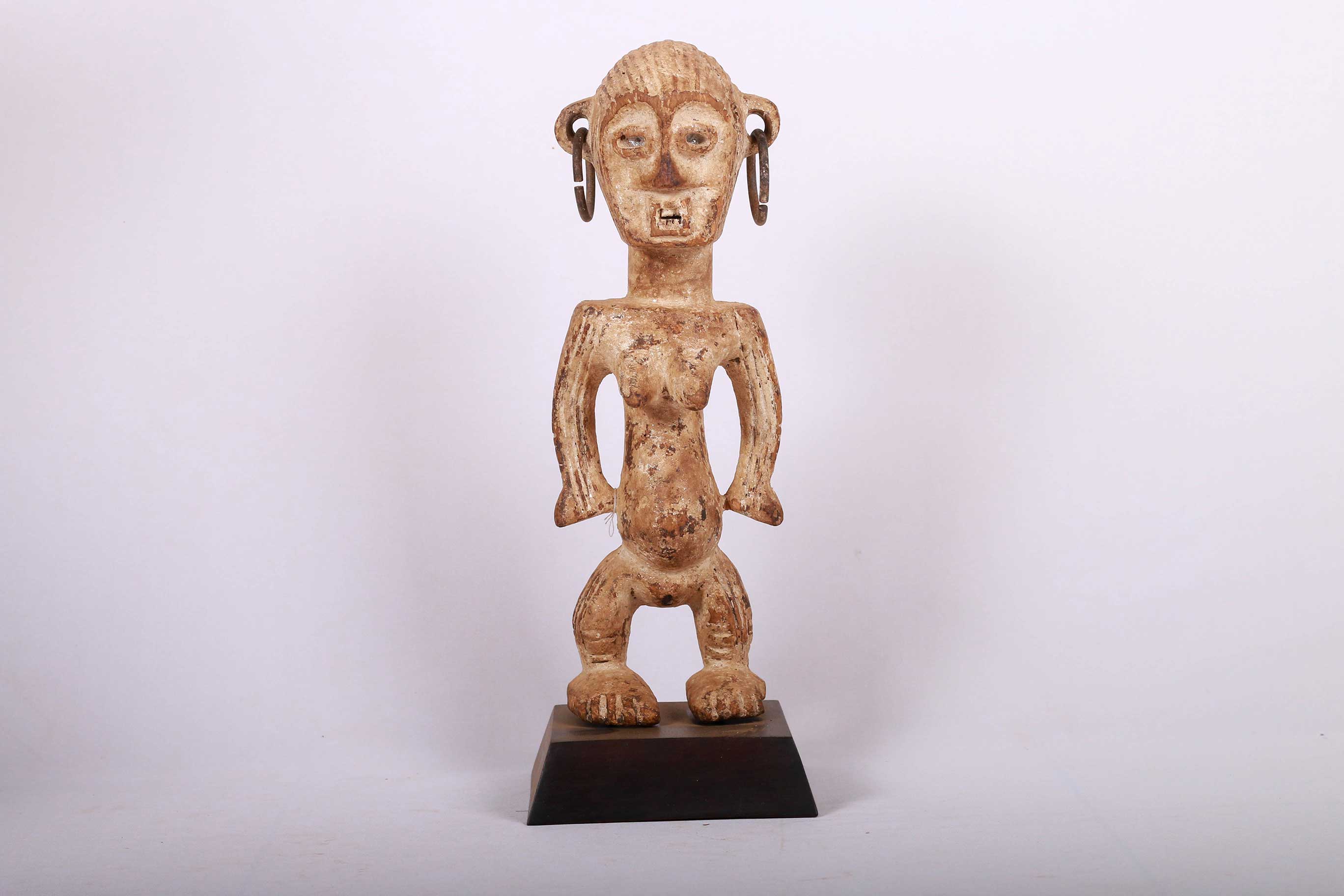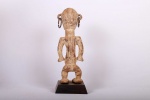 The Lega tribe is found in eastern DRC, the Lega live alongside Luba people who are their neighbors. All Lega art is used within the context of the Bwami society for the production of most Lega sculptures were individually owned by the highest-ranking society members and are the most coveted of all initiation objects. The following sculpture has a dark brown patina and looks visibly old.