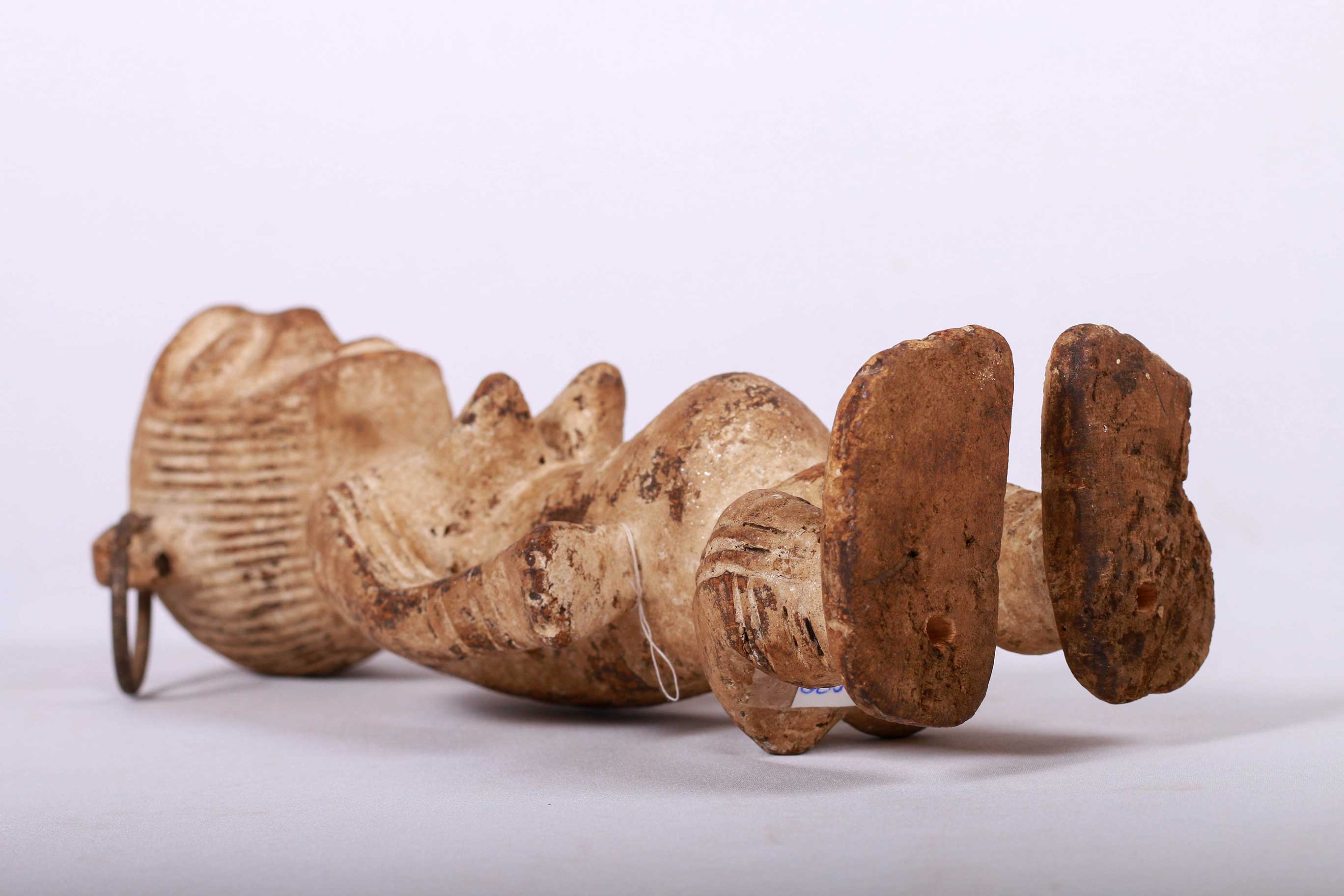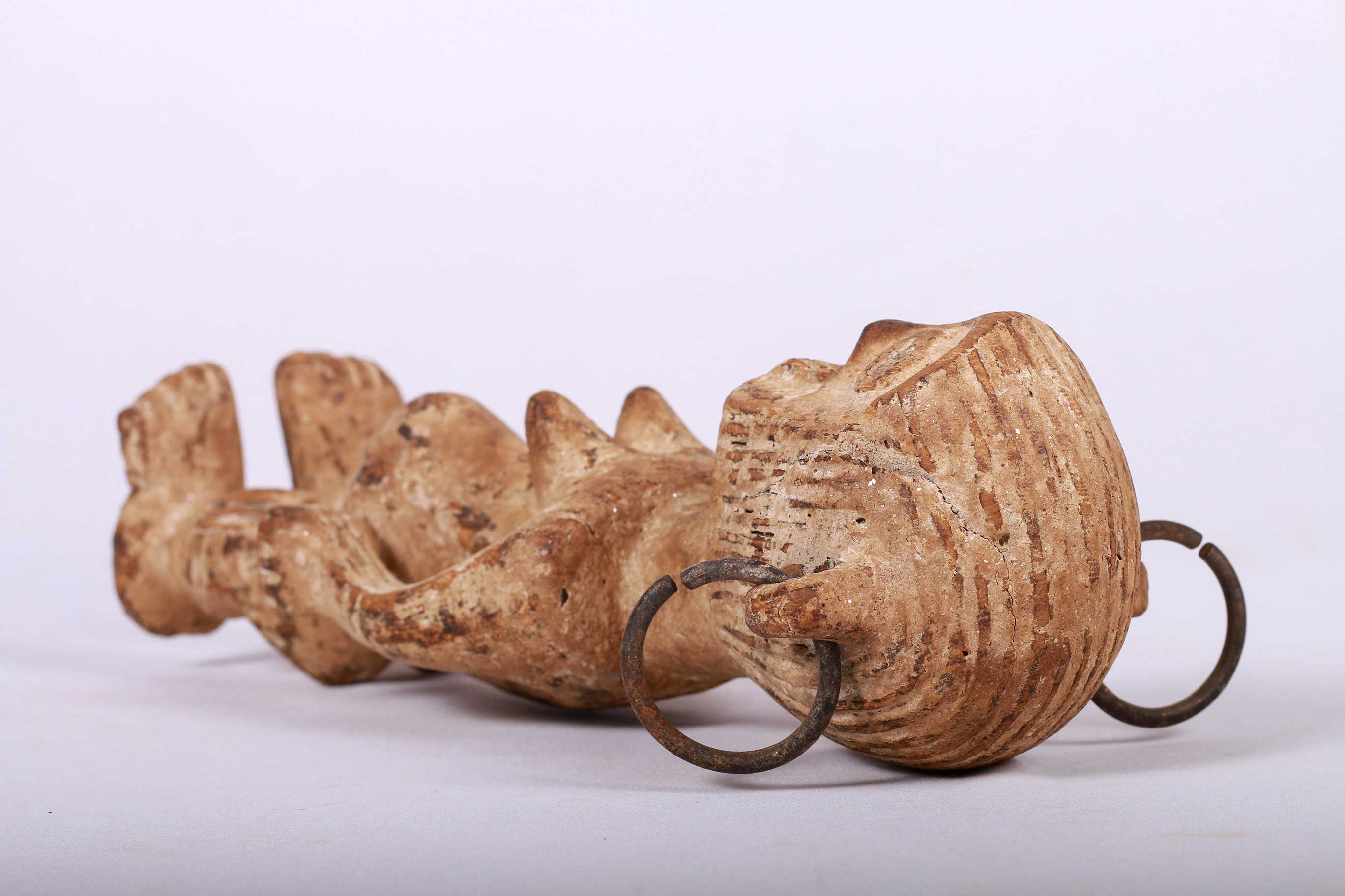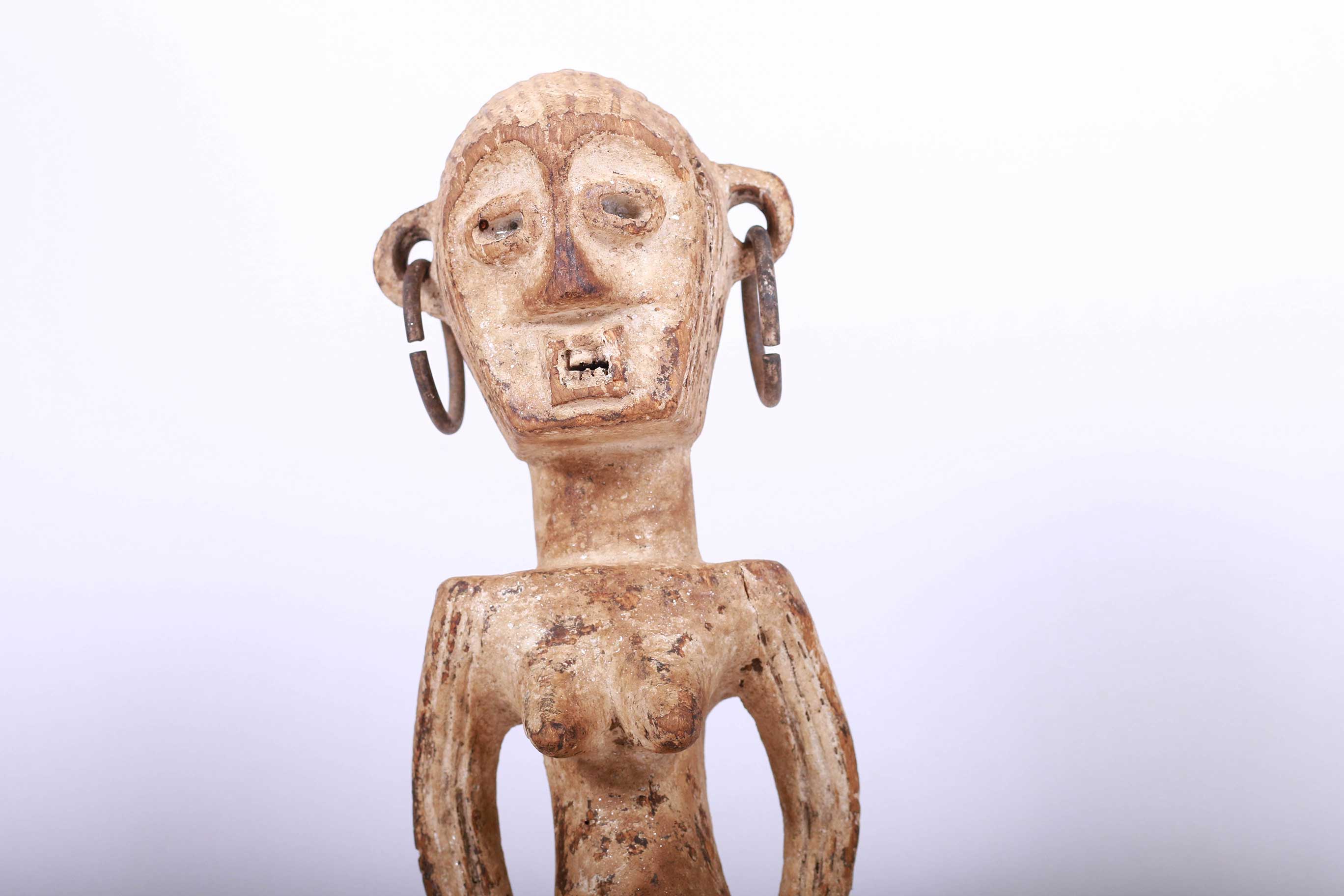 The Lega tribe is found in eastern DRC, the Lega live alongside Luba people who are their neighbors. All Lega art is used within the context of the Bwami society for the production of most Lega sculptures were individually owned by the highest-ranking society members and are the most coveted of all initiation objects. The following sculpture has a dark brown patina and looks visibly old.