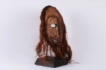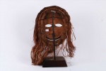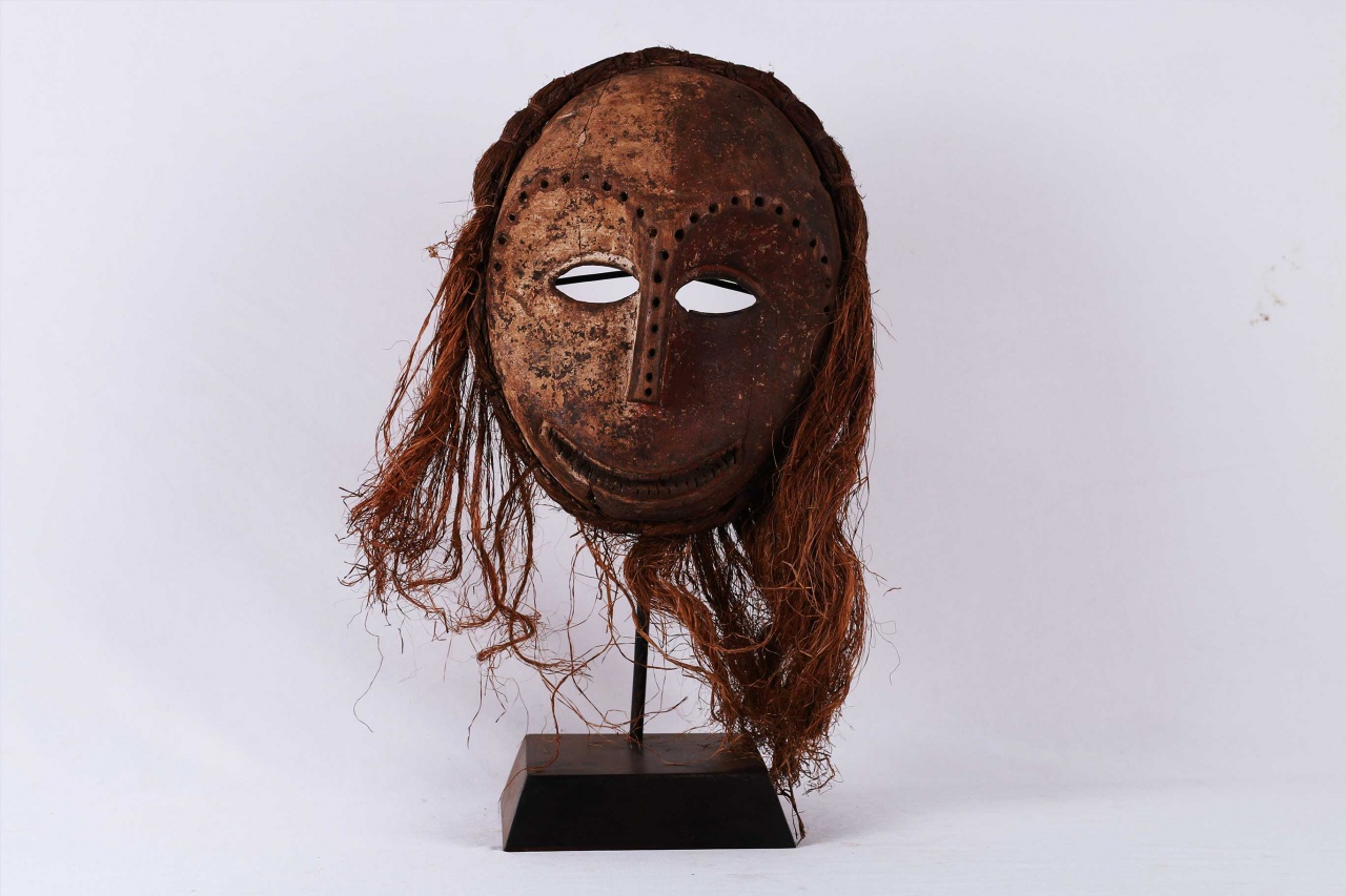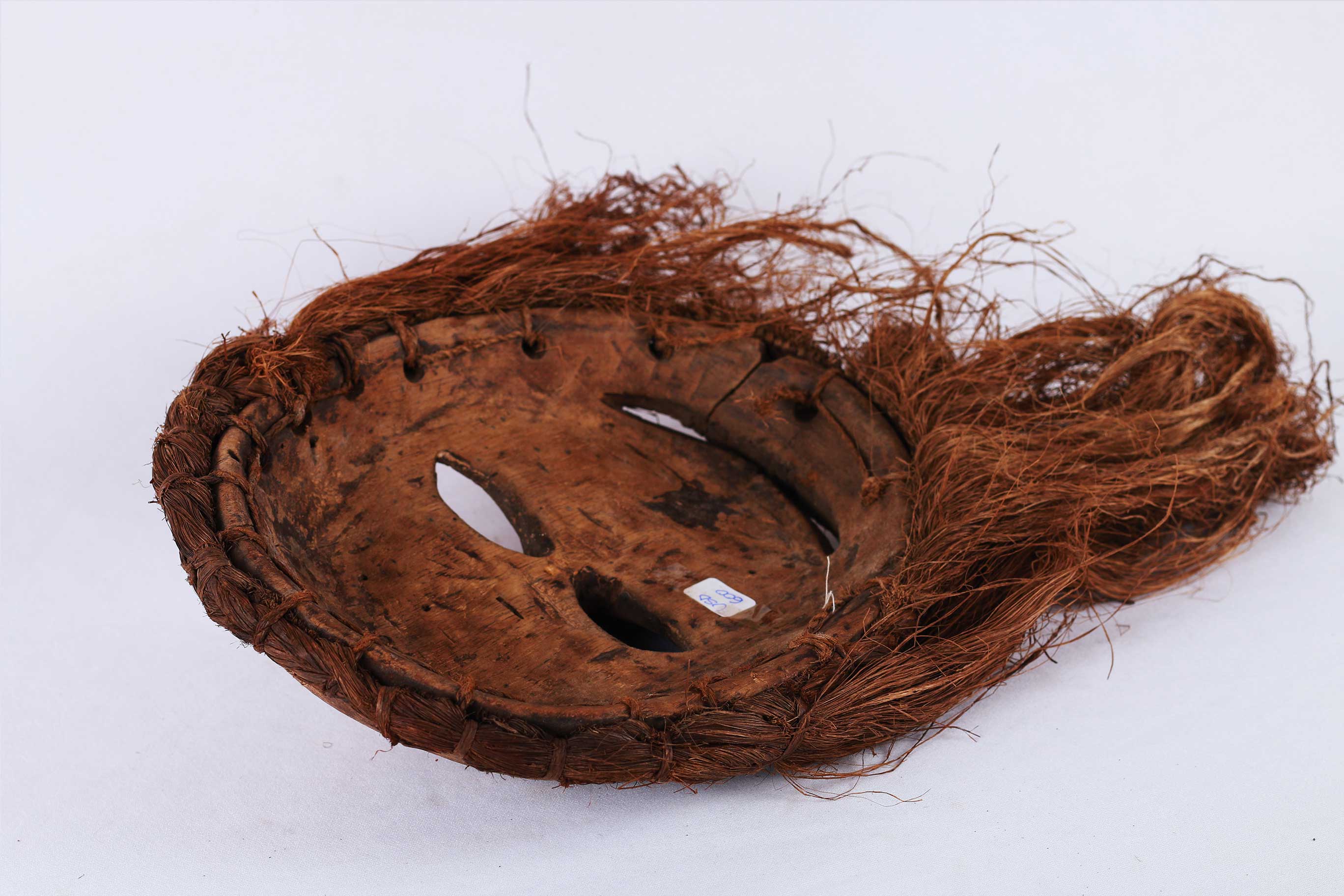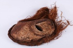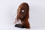 The following mask is identified with both the Ngbandi and Ngbaka from the Northwestern part of the Democratic Republic of the Congo. Masks of this area are known by the line of incisions or heavy bridge of scarification reaching from the hairline across the forehead ending more than half-way down the nose, as seen on this mask. Though both groups use masks they are less numerous among the Ngbandi than among the Ngbaka where masks are known as Dagara and are used during initiation ceremonies known as Ganza or Gaza for young men and when boys are circumcised. Their masks are also used for agricultural ceremonies. The following mask is made from light wood and looks visibly old.