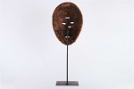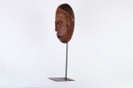 The following mask is identified with both the Ngbandi and Ngbaka from the Northwestern part of the Democratic Republic of the Congo. Masks of this area are known by the line of incisions or heavy bridge of scarification reaching from the hairline across the forehead ending more than half-way down the nose, as seen on this mask. Though both groups use masks they are less numerous among the Ngbandi than among the Ngbaka where masks are known as Dagara and are used during initiation ceremonies known as Ganza or Gaza for young men and when boys are circumcised. Their masks are also used for agricultural ceremonies. The following mask is made from light wood and looks visibly old.