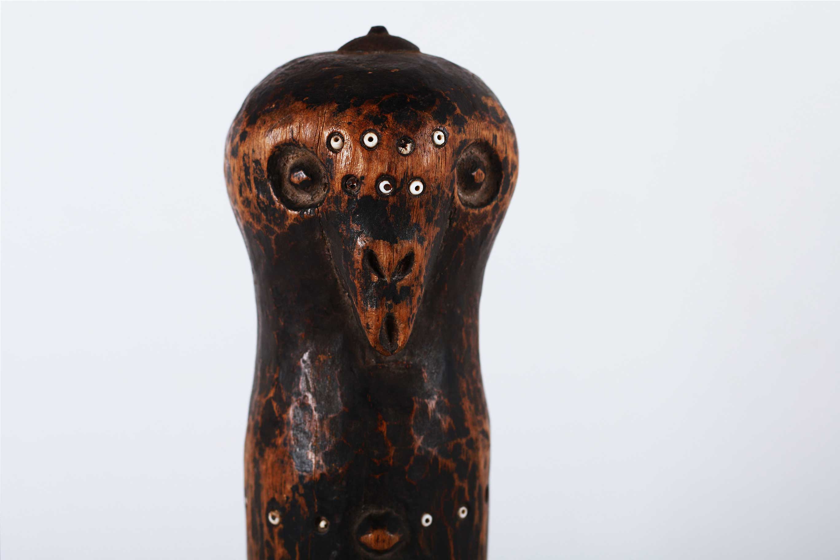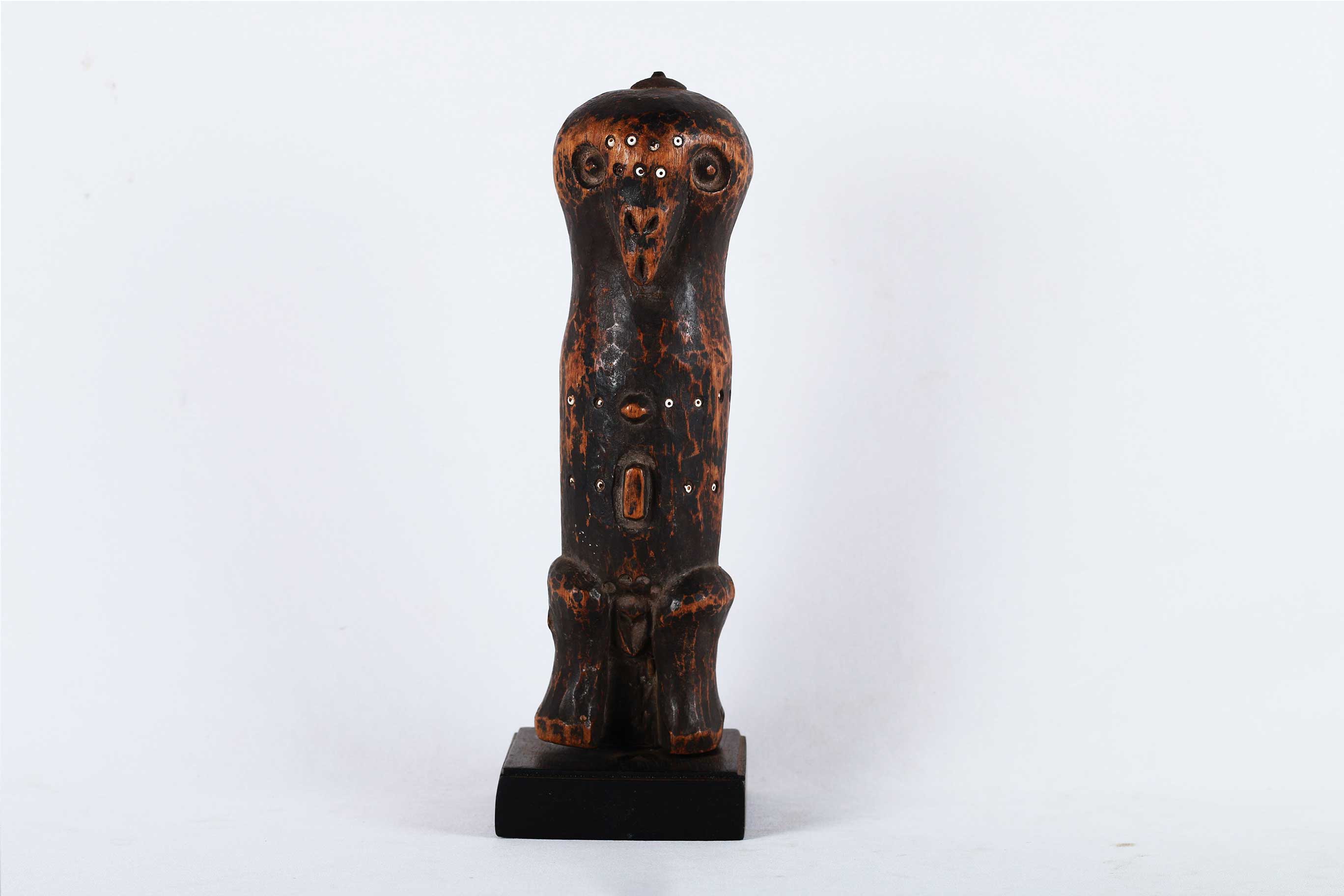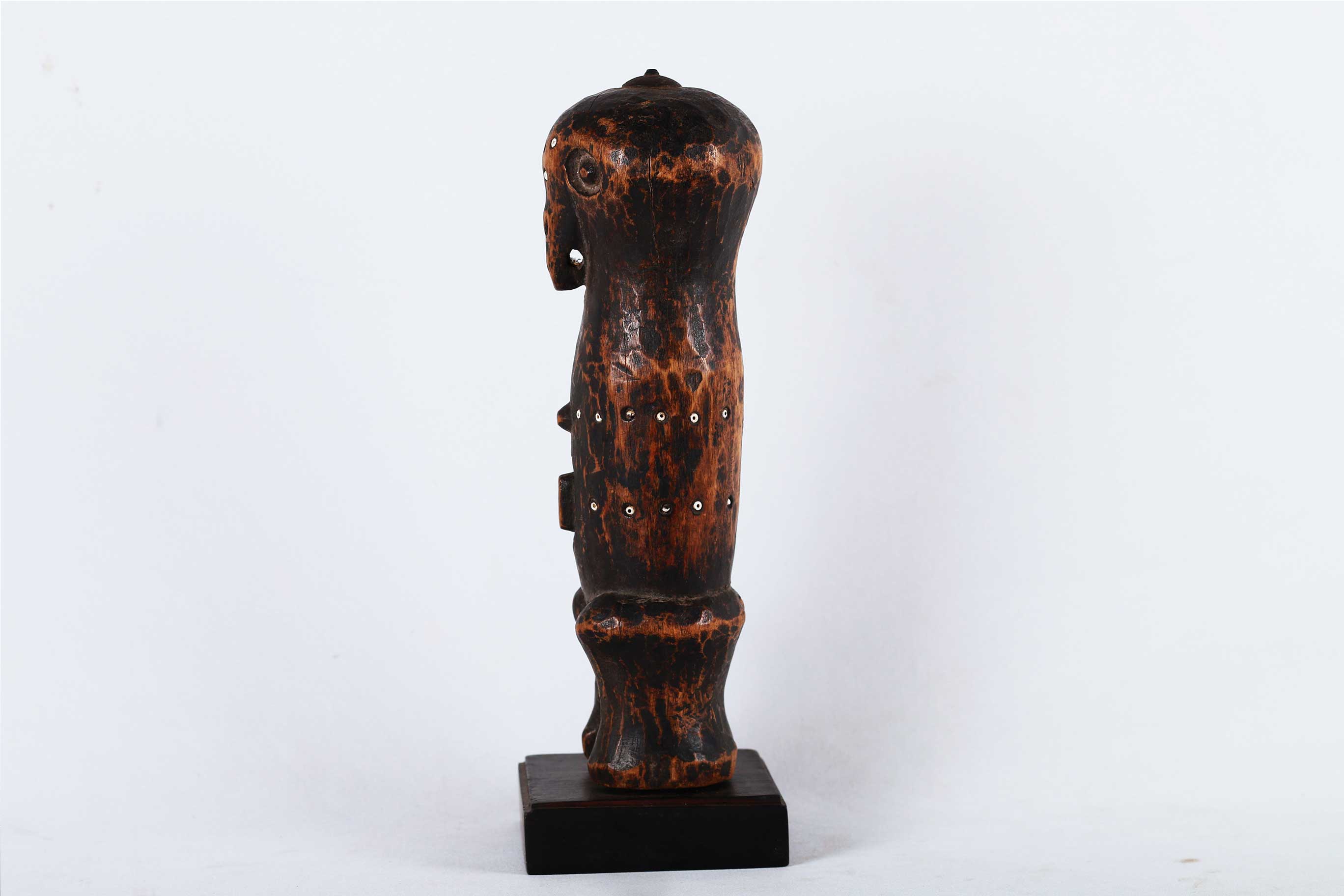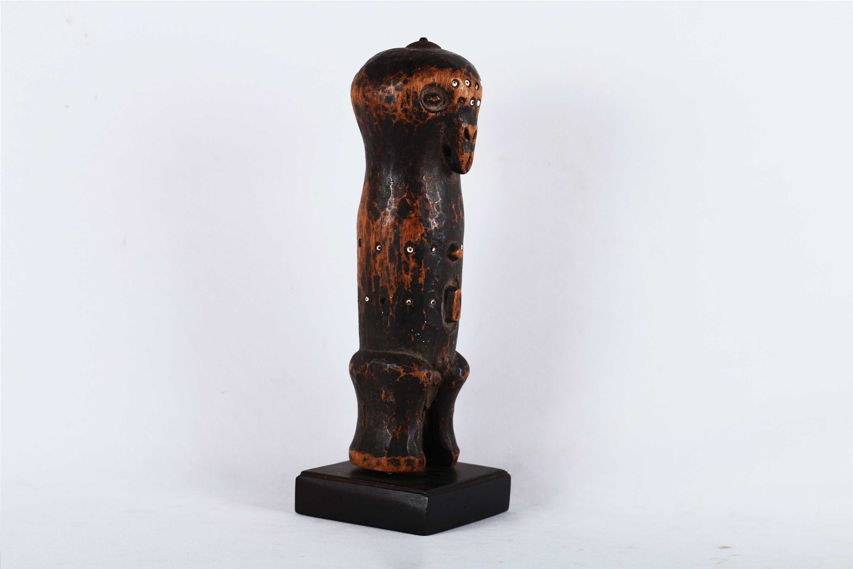 The Ngbaka are mostly found near the Gemena plateau are closely related to Babembe tribe on the northern corridor, of DRC Congo. Ngbaka figures are often found in pairs and are believed to represent their two primordial ancestors and are placed on altars in houses where they fulfil a protective role. Some of the Ngbaka sculptures are believed to bring good fortune.