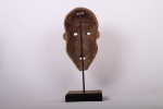 Nyanga masks were mostly used at circumcision ceremonies and at initiation ceremonies and so is believed to be this mask. The Nyanga also called (Banianga, Banyanga, Kinyanga, Nianga or Nyangas) are a Bantu ethnic group living in the Kivu region of the Democratic Republic of the Congo. We are yet to find the exact use of this mask in the Nyanga society but this is an old light wooden mask with a white patina and shows perfect age wear and tear.