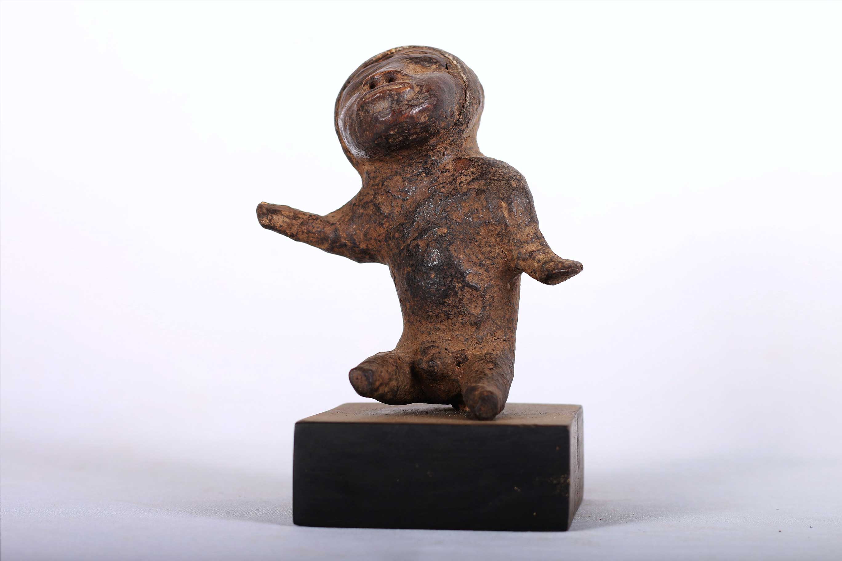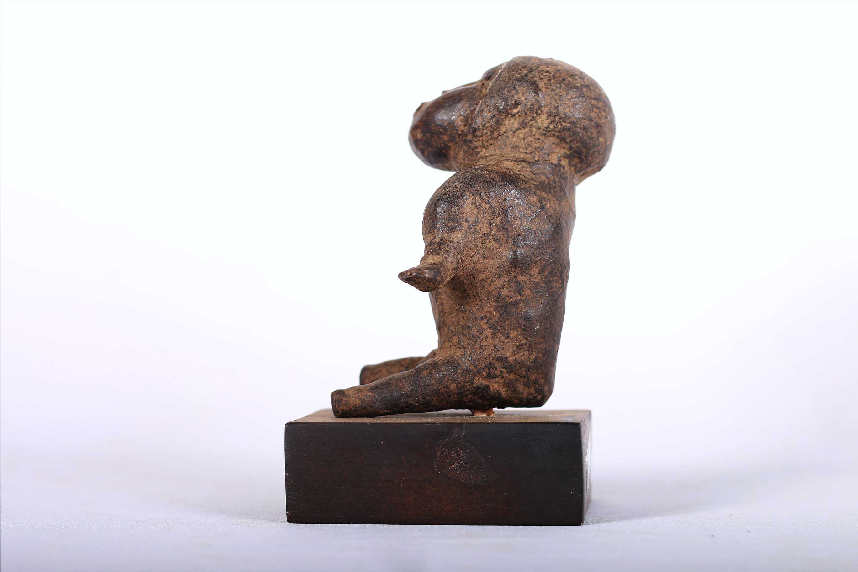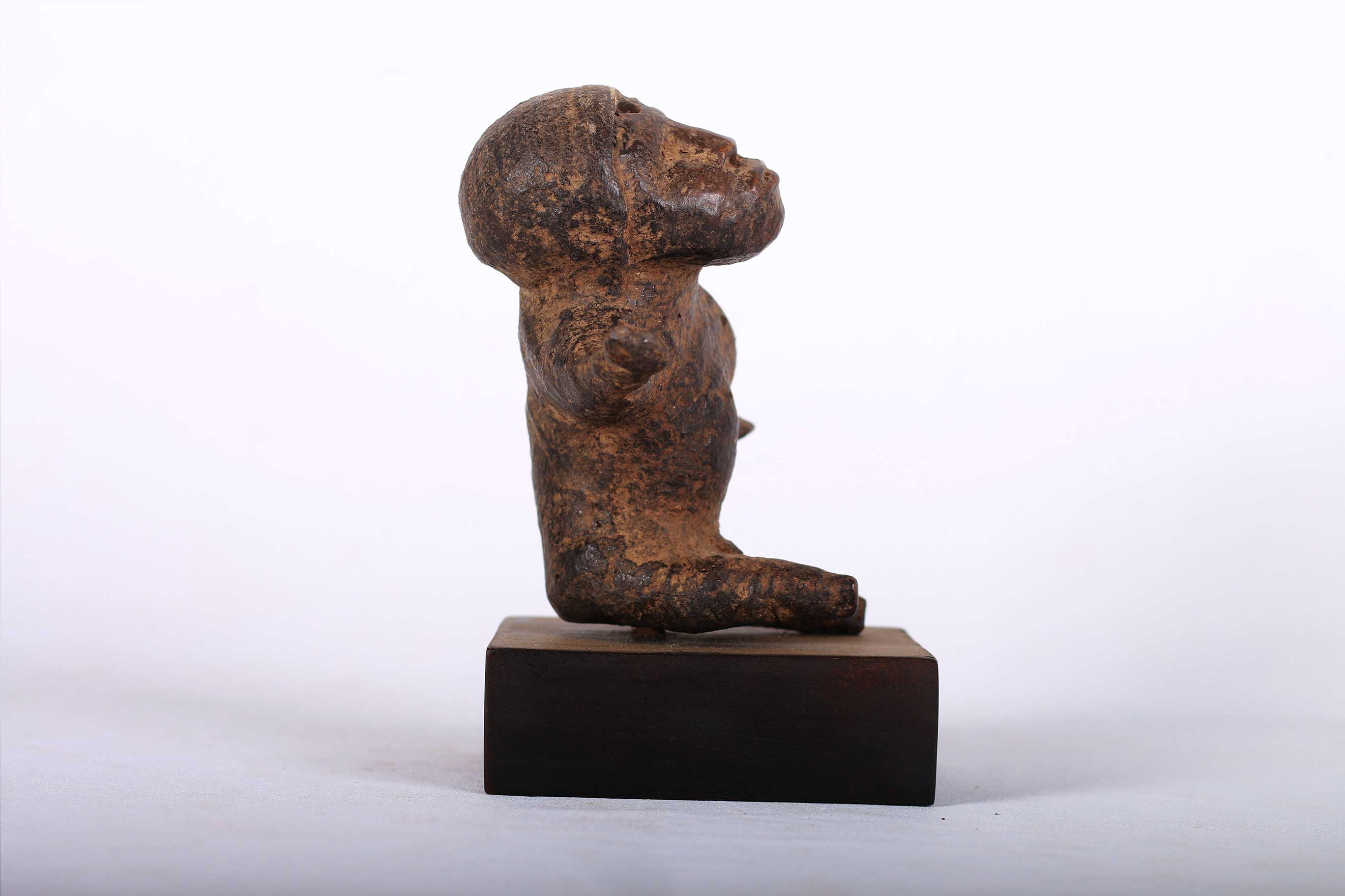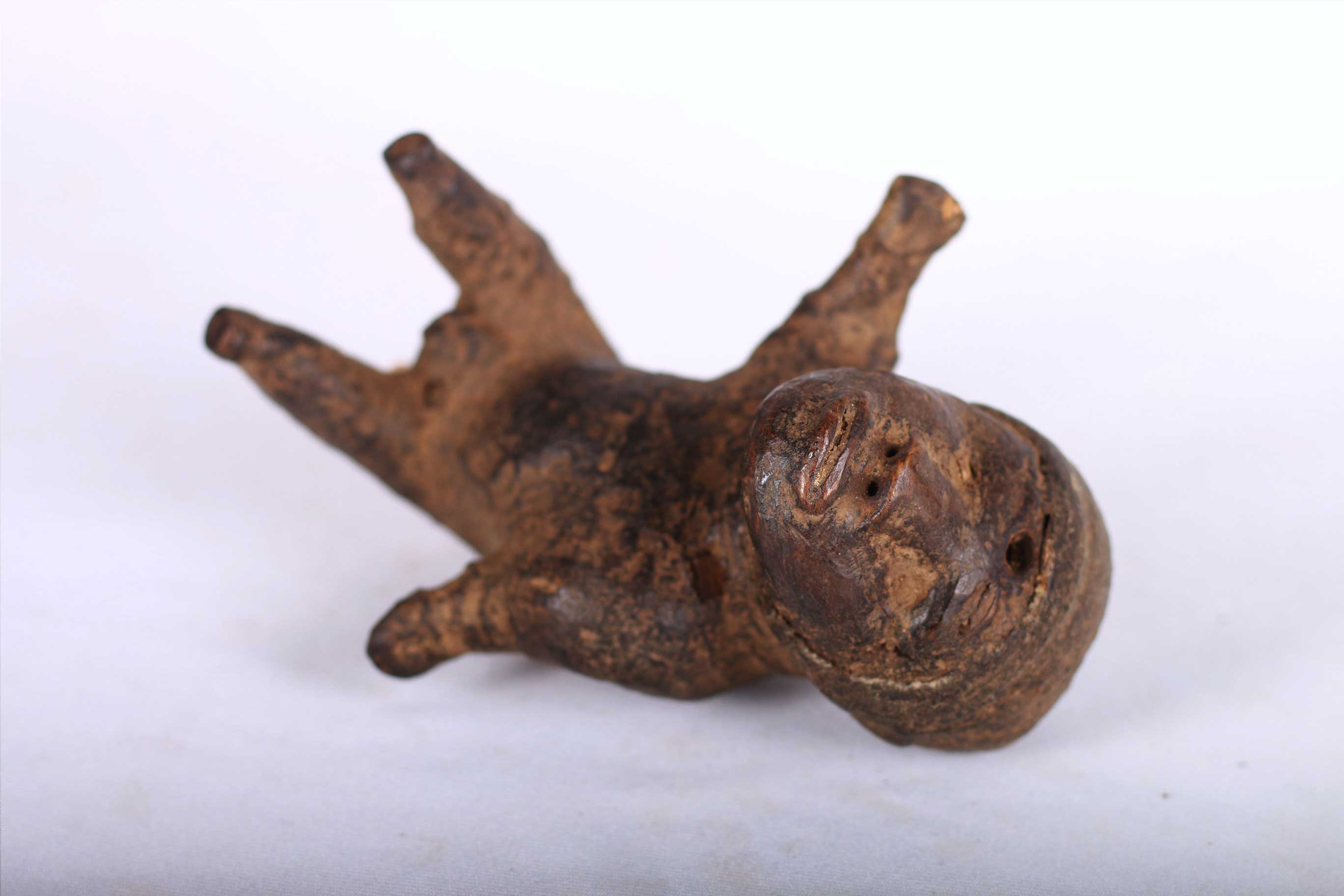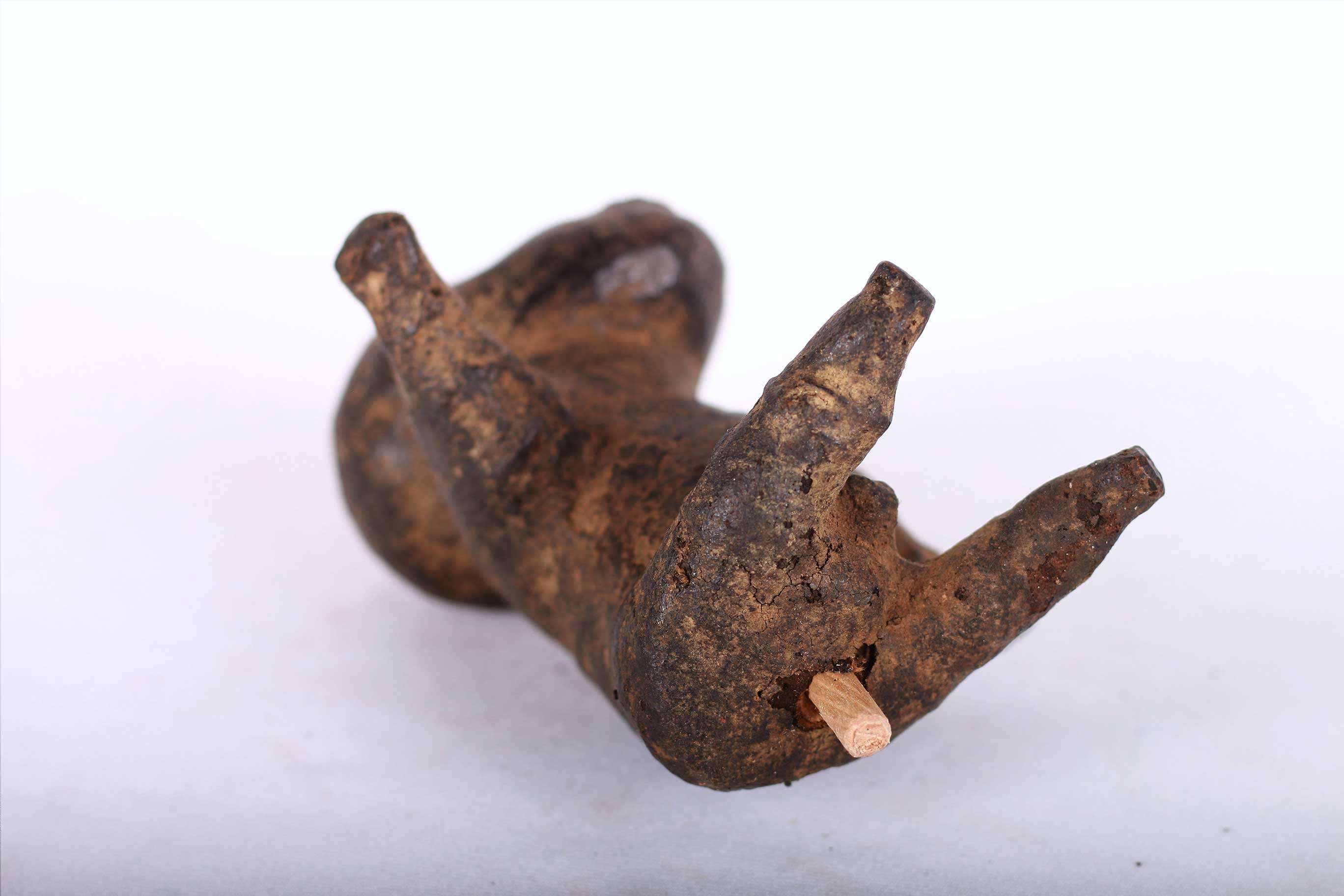 The Pare people are an ethnic group living in the Pare Mountains of the northern part of Tanzania in the Kilimanjaro Region and some traces in Kenya. The Pare is divided into two sub-areas based on ethnolinguistic differences, Gweno and the Chasu. These spiritually powerful figures were often wrapped in cloth or leather. This is a unique sculpture amazingly sculpted, it is believed to portray ancestors or spirits and was used by diviners, healers and sorcerers for special rituals. This small sculpture with a unique poster has a brown patina, signs of wear and tear which reflects old age and extensive usage.