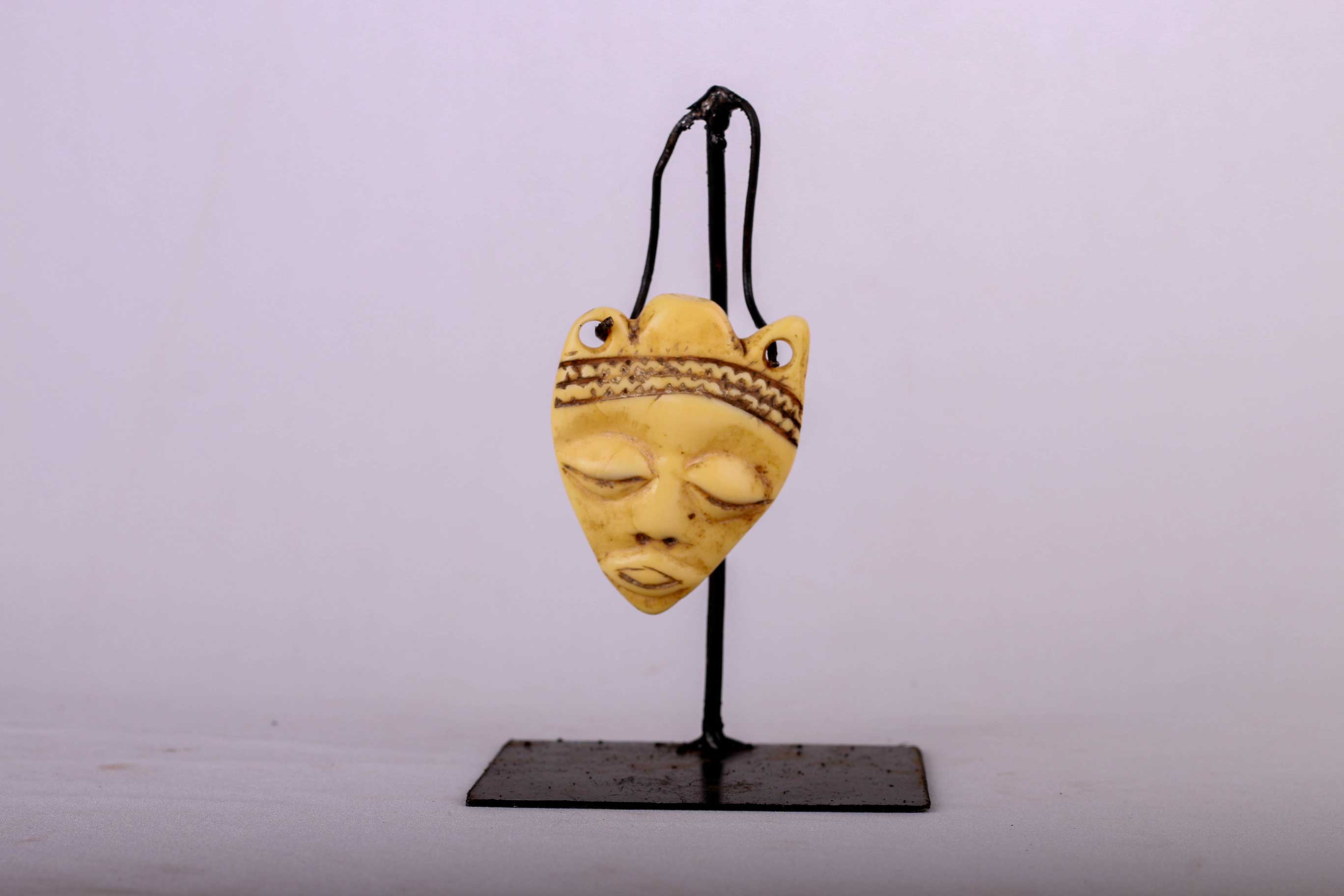 The Pende people settled in the region near the Loango and Kasai Rivers. The following maskette is crafted out of ivory and could have possibly been worn around the neck, the Pende used such masks as protective amulets. It bares a cream patina and shows good signs of age.
