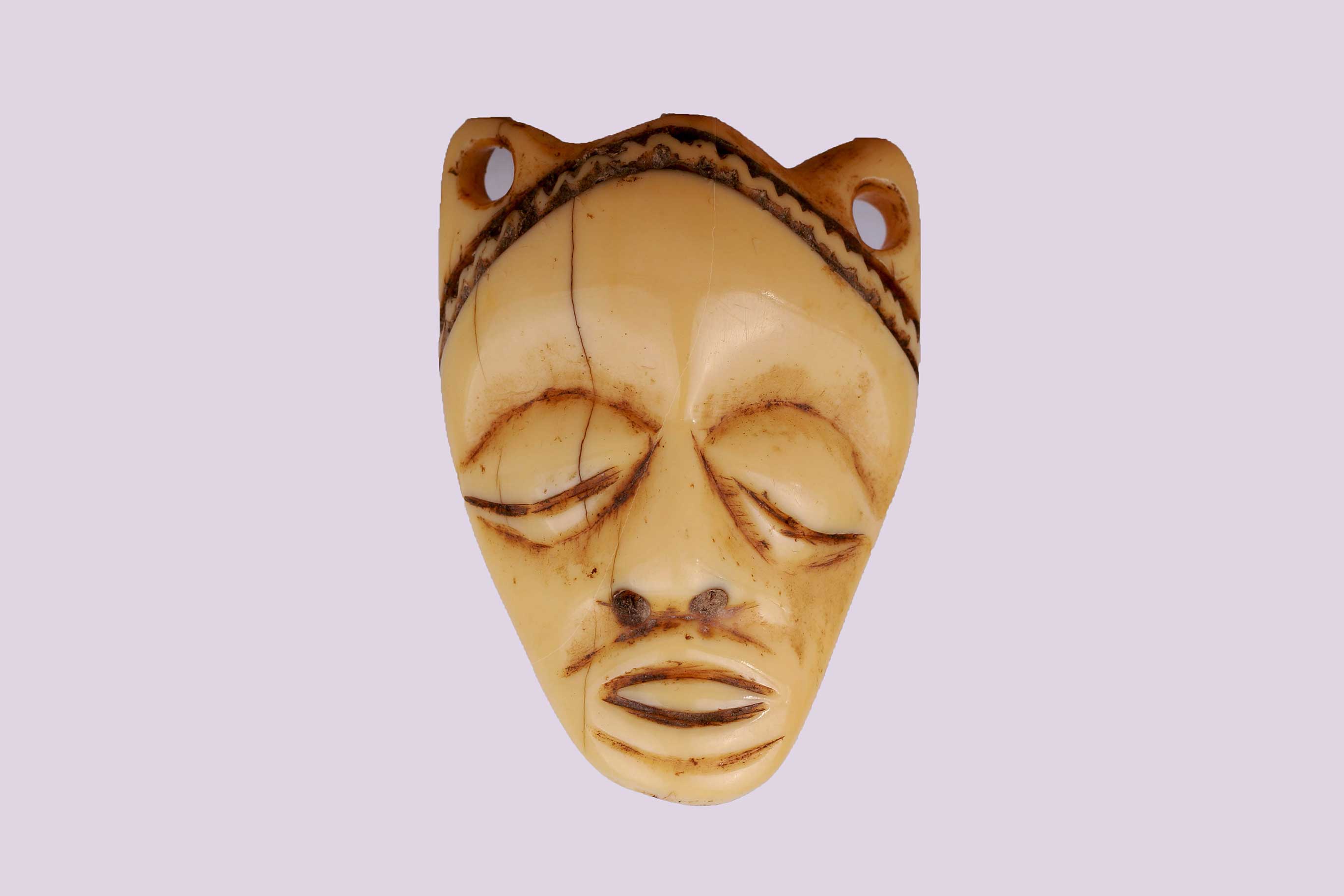 The Pende people settled in the region near the Loango and Kasai Rivers. They crafted such a mask out of ivory and could have possibly been worn around the neck, the masks were protective amulets. It bares a ceramic patina and shows good signs of age.