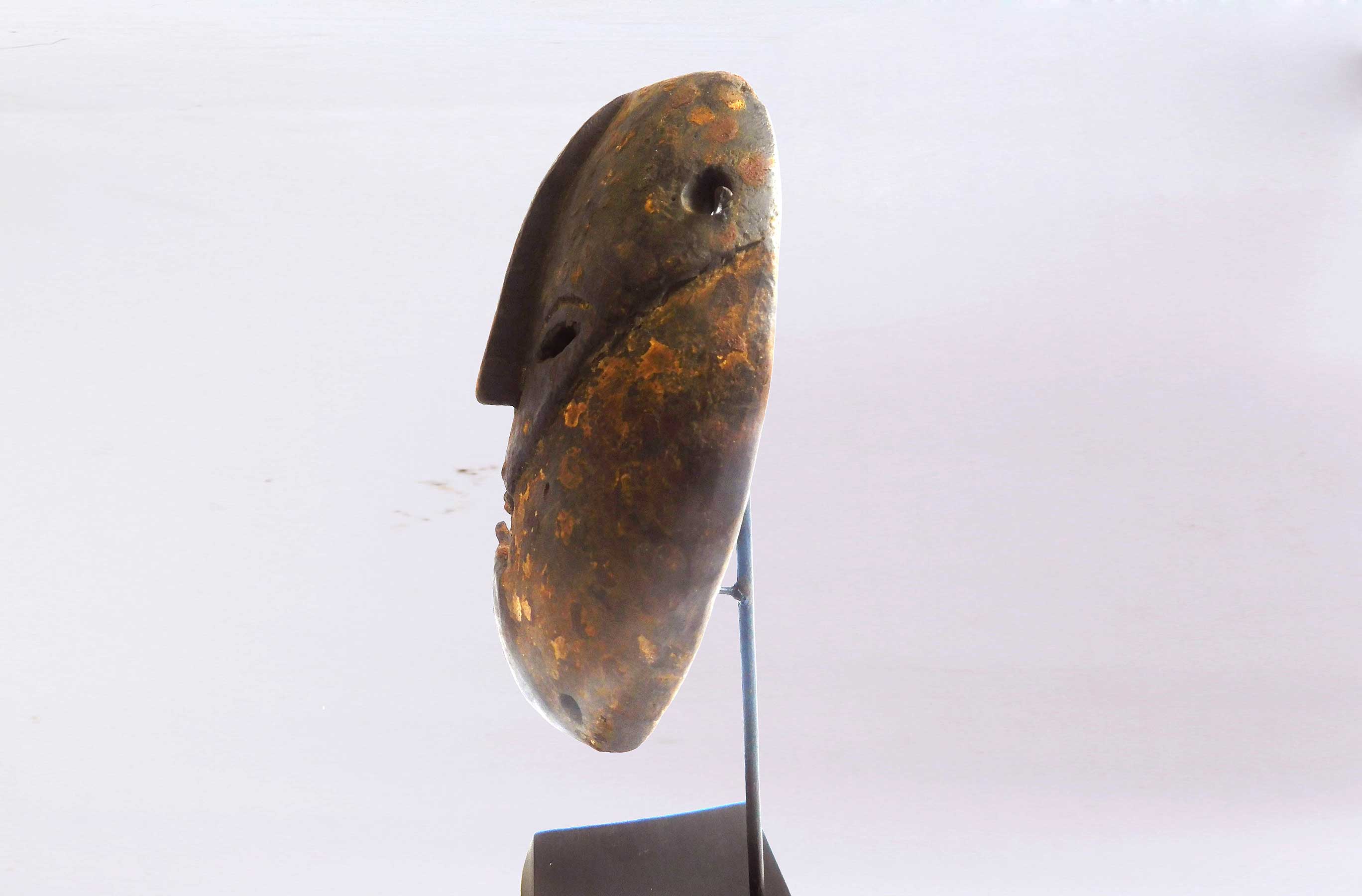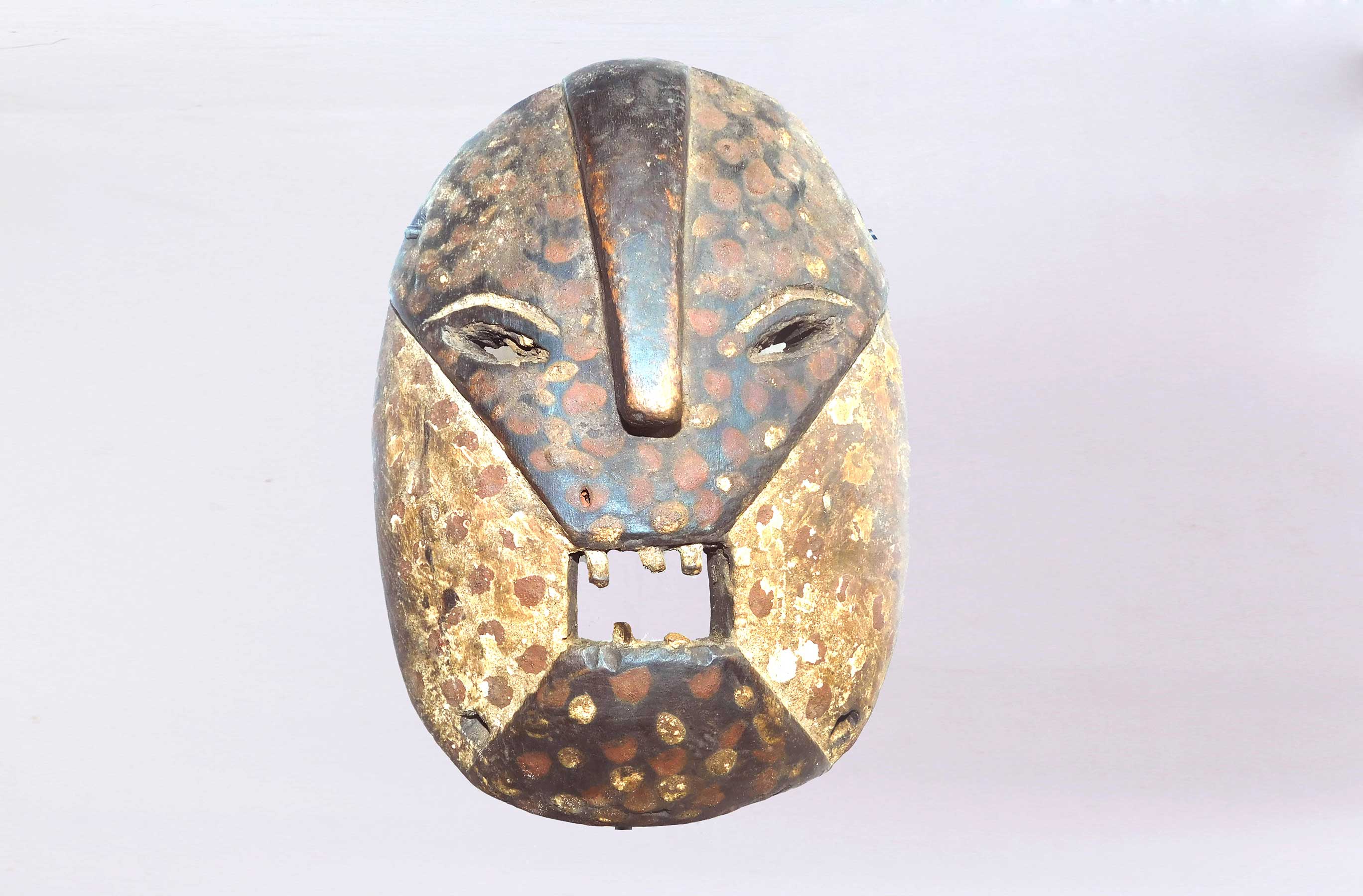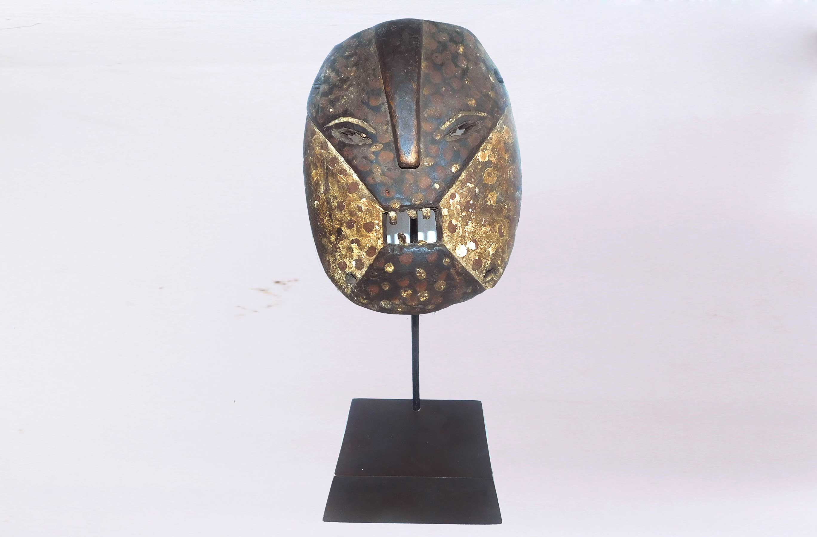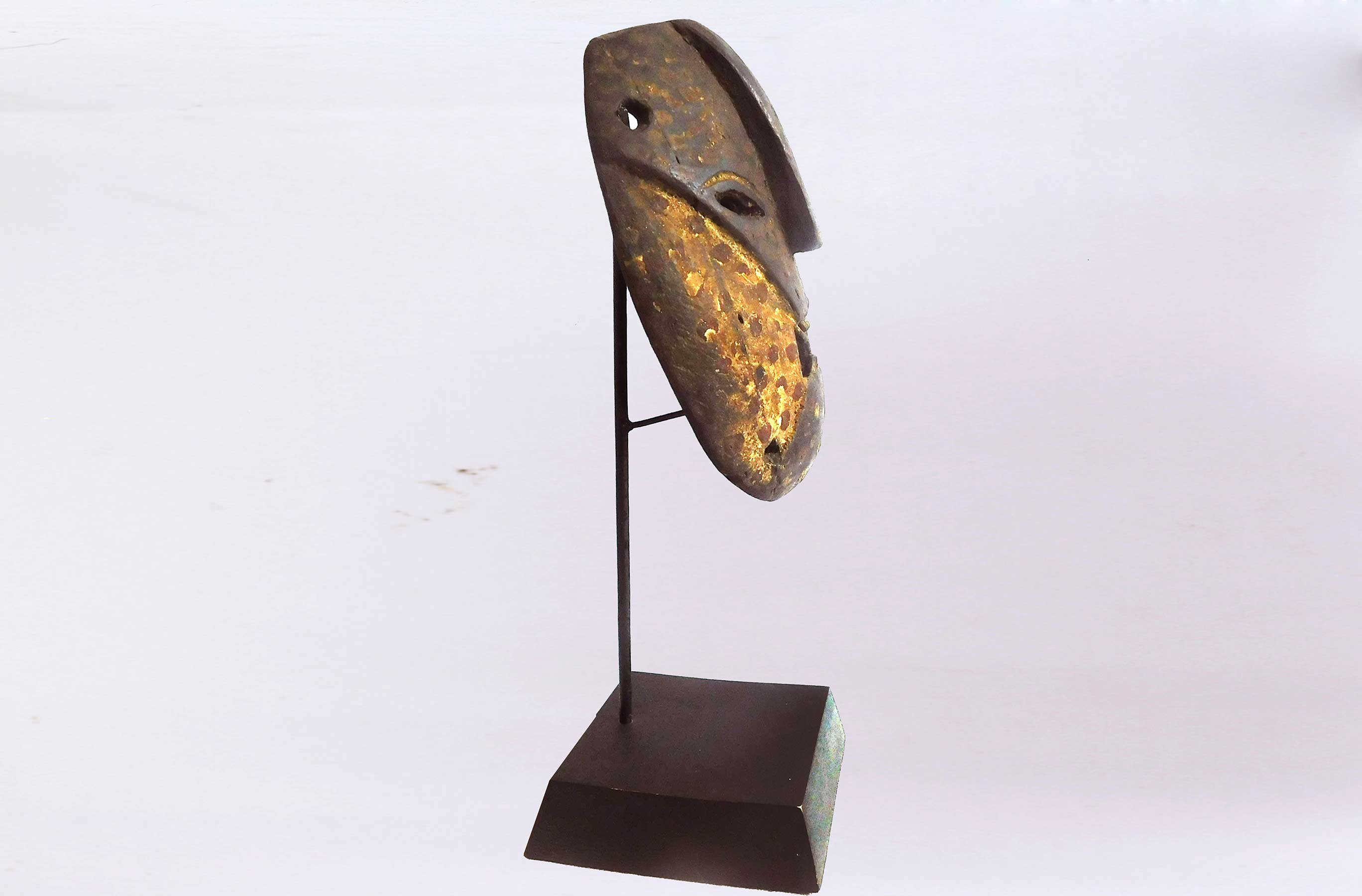 The Congo pygmies are found mainly in the Ituri forest, These peoples traditionally live in bands and are traditionally nomadic, moving to new parts of the forest several times during the year and carrying all their possessions on their backs. The Pygmy masks usually have elaborate features and are usually painted. People, including the Mbuti and Ndaka, of the Ituri rain forest use masks representing ancestor spirits in elaborate initiation ceremonies.