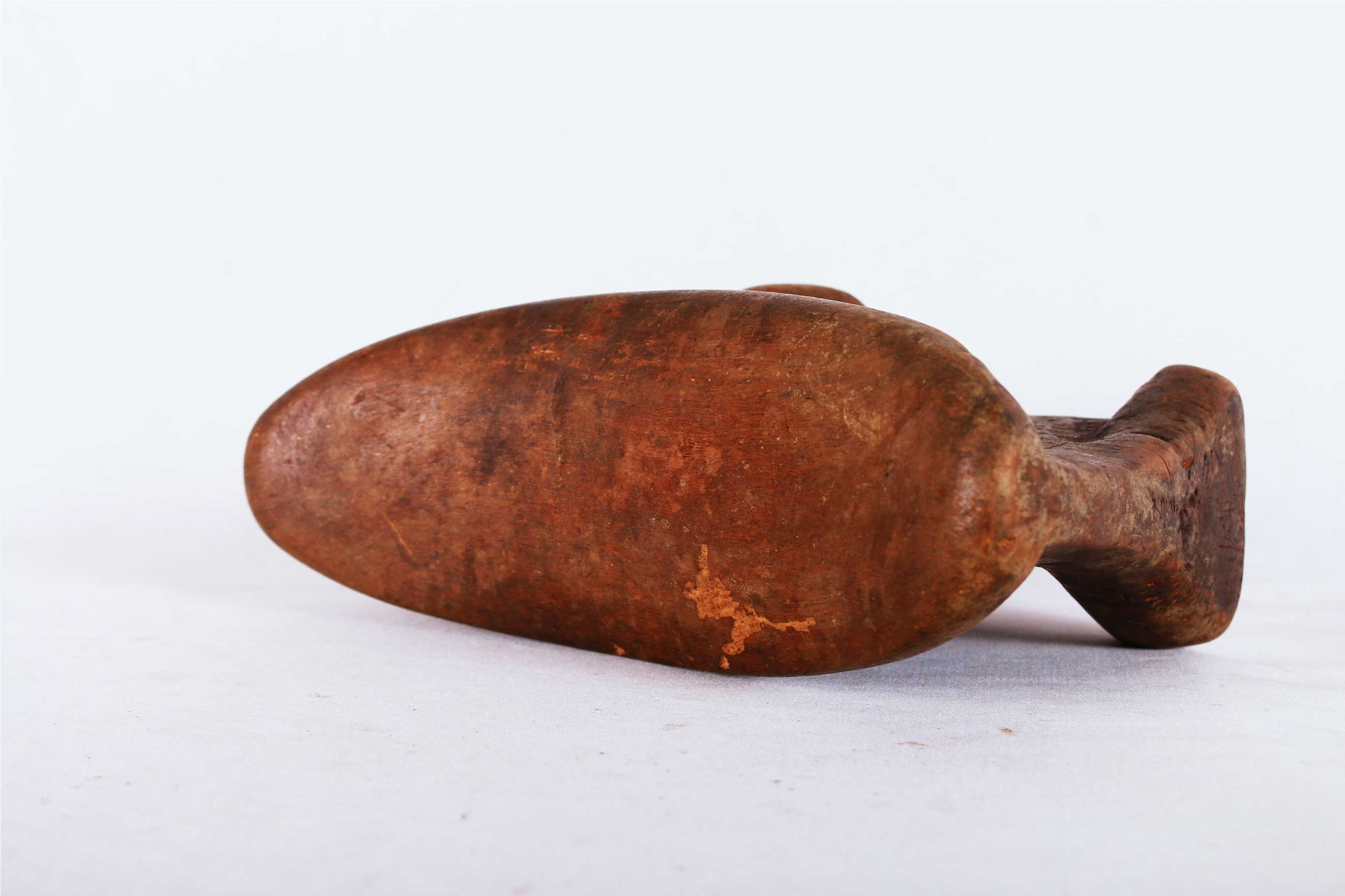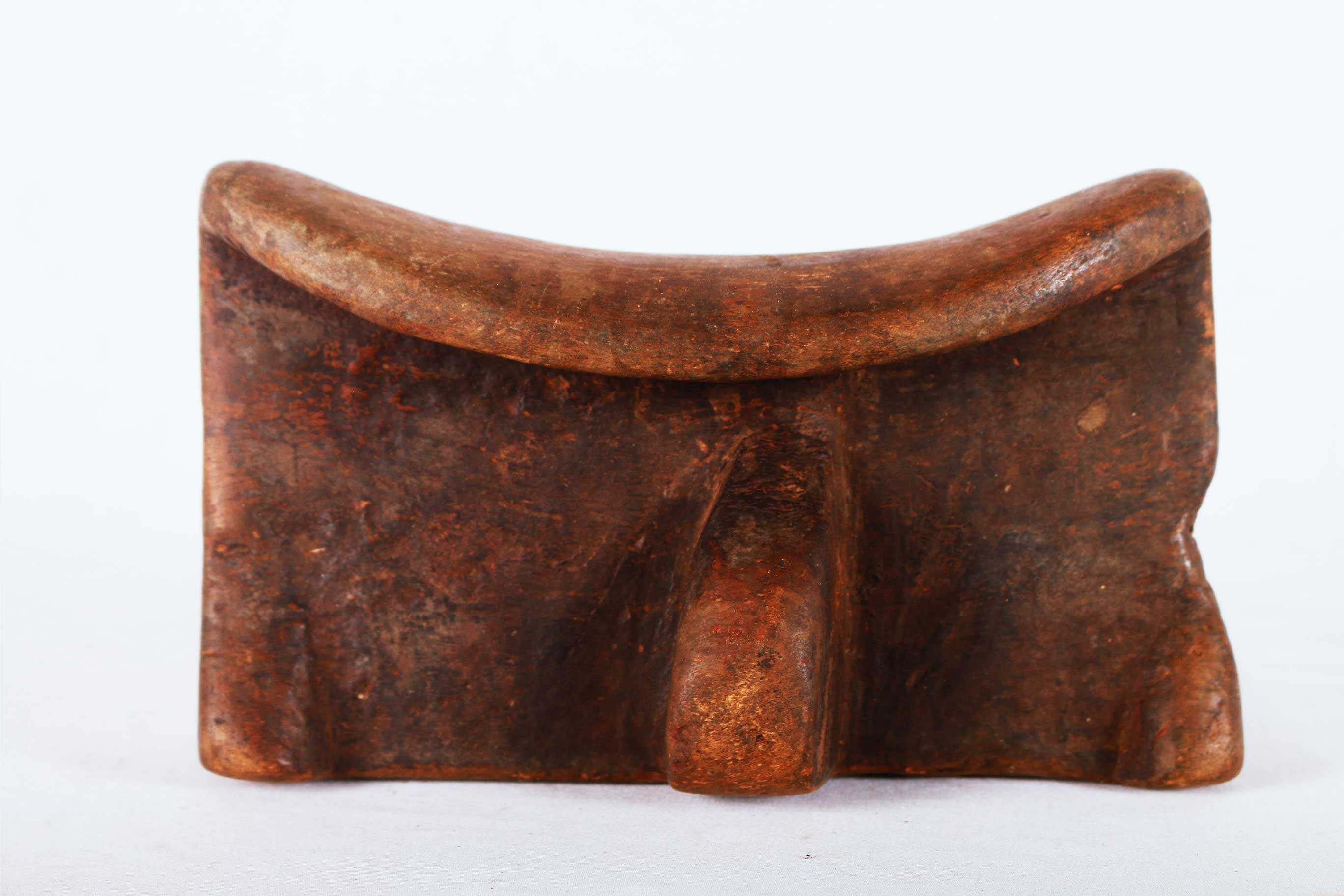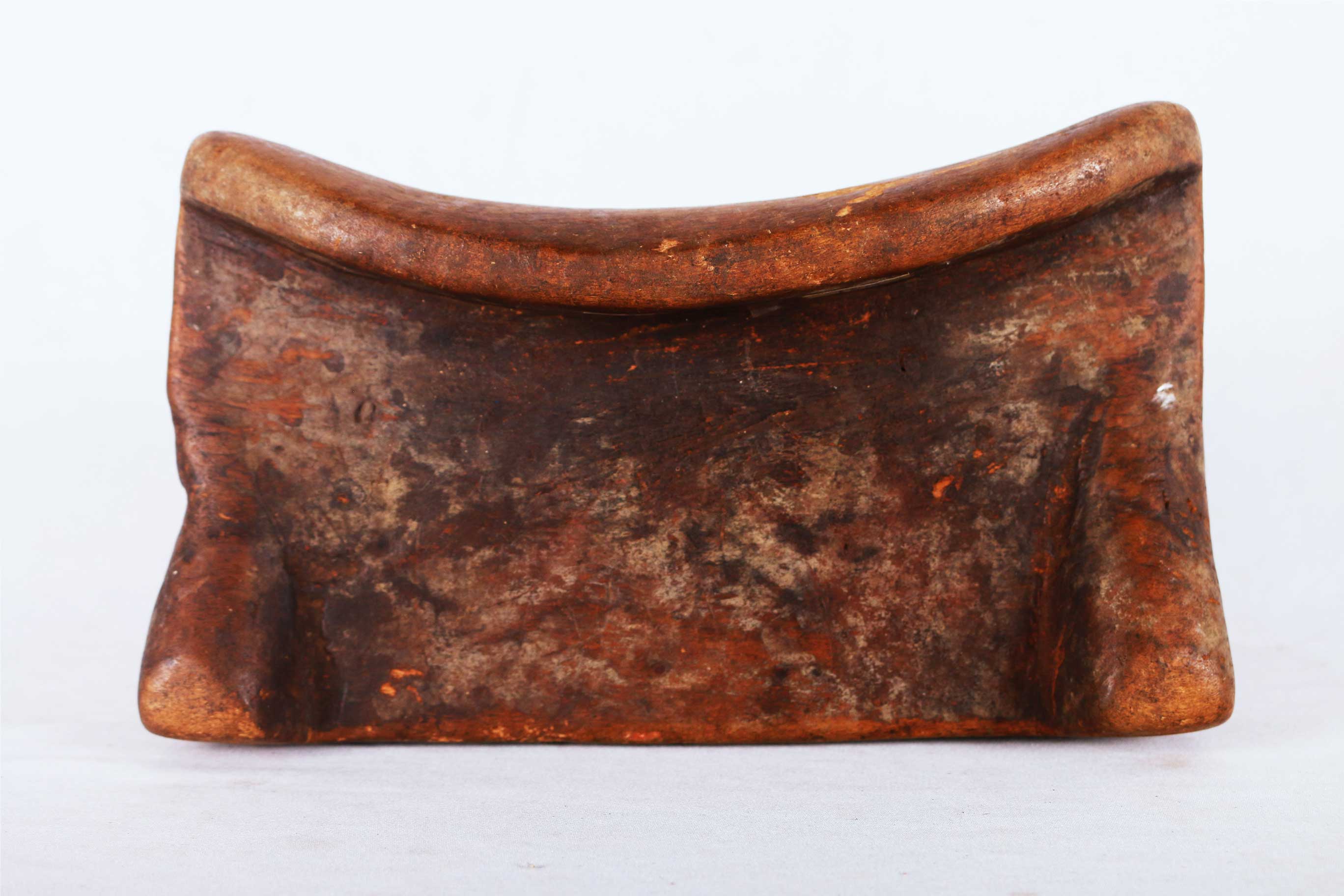 The following old block headrest has a deep reddish patina, bush collected with signs of frequent usage, wear due to old age. It is in perfect condition with no cracks or chips.