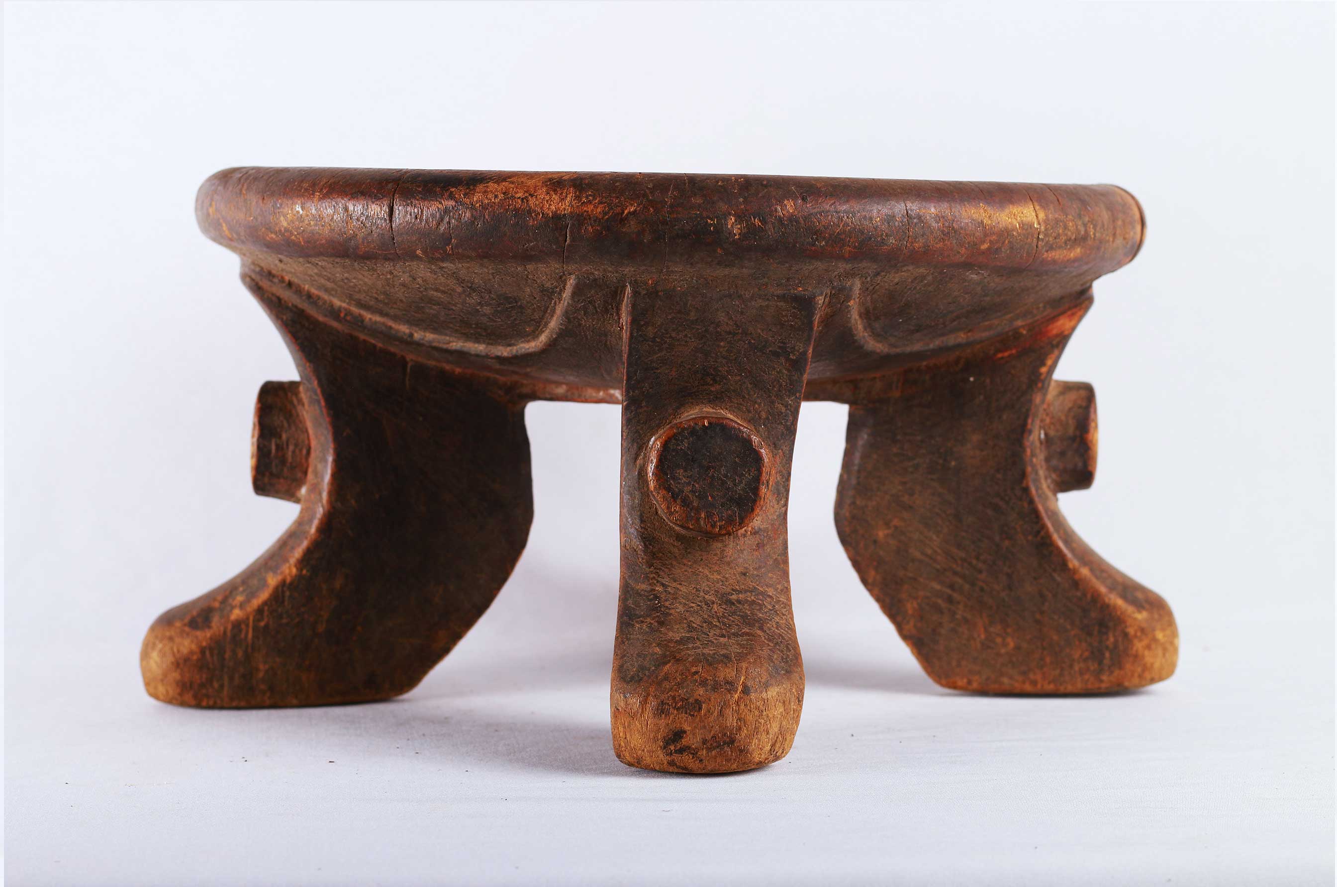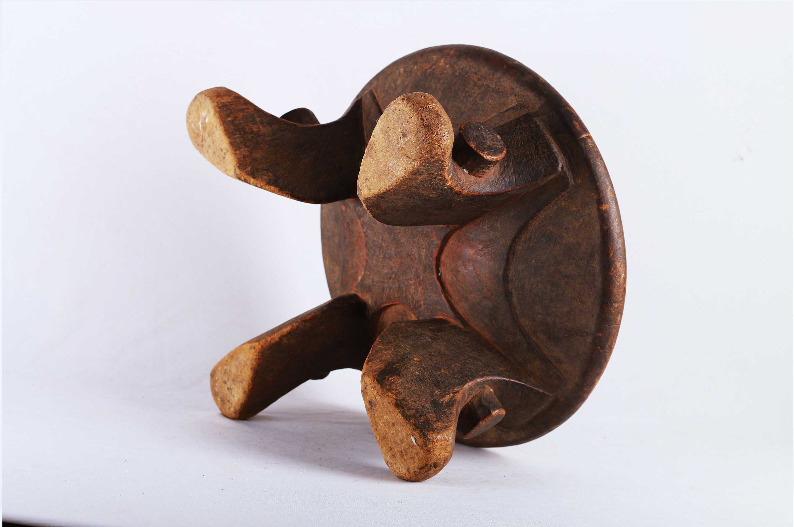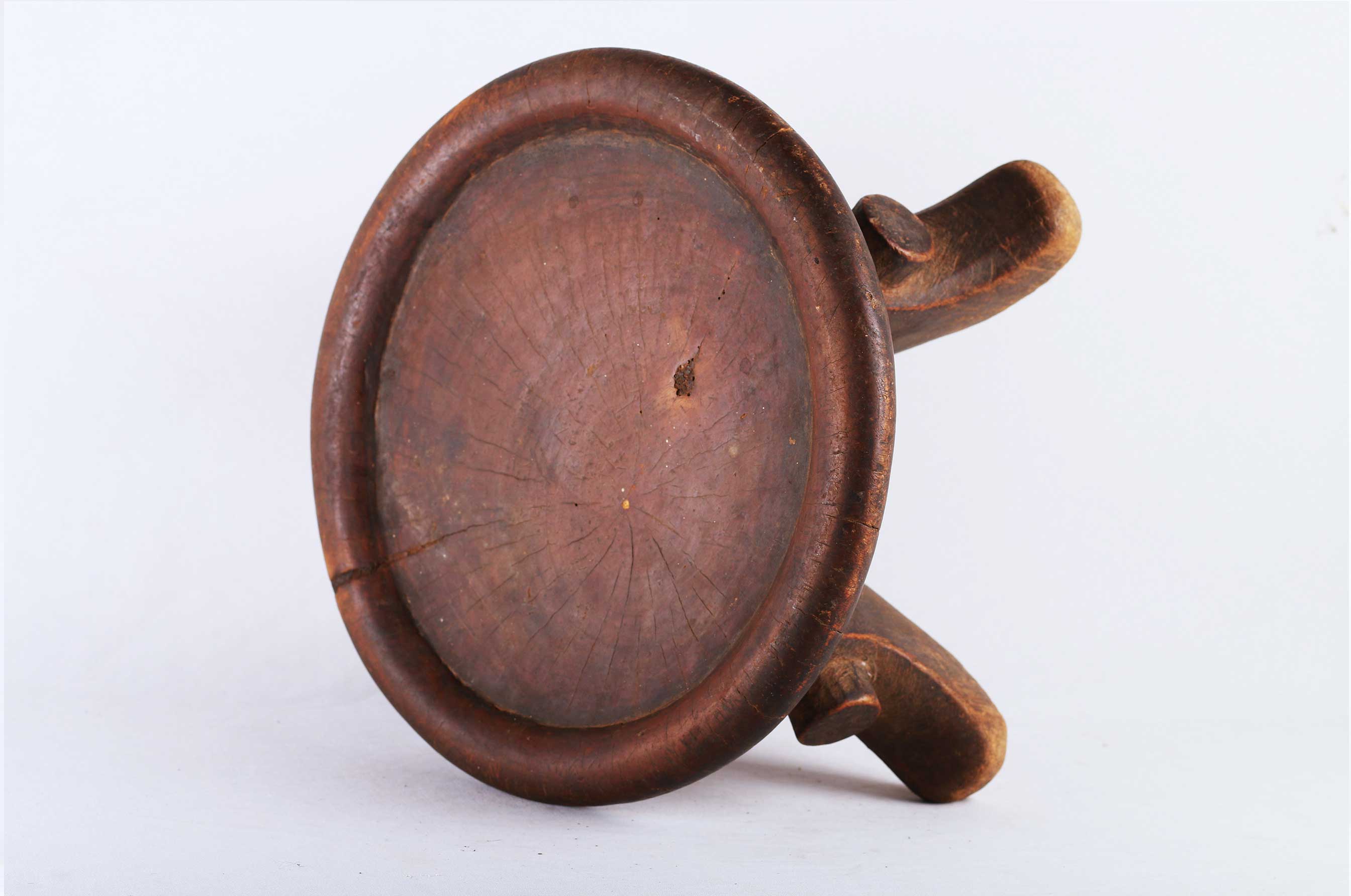 The Samburu tribe are a Nilotic tribe.on the north-central corridor of Kenya, mainly cow herders of sheep, cattle, and camels, they speak a dialect that is close to the Maasai tribe, and also created quite varied forms of utilitarian objects, and headrests as well. These are utilitarian pieces that were made mostly by the Samburu and Dorobo men for family use, they acted as perfect seats to them. This stool is in good condition, though worn with age, and has evidence overall of old worm wear to the surfaces.