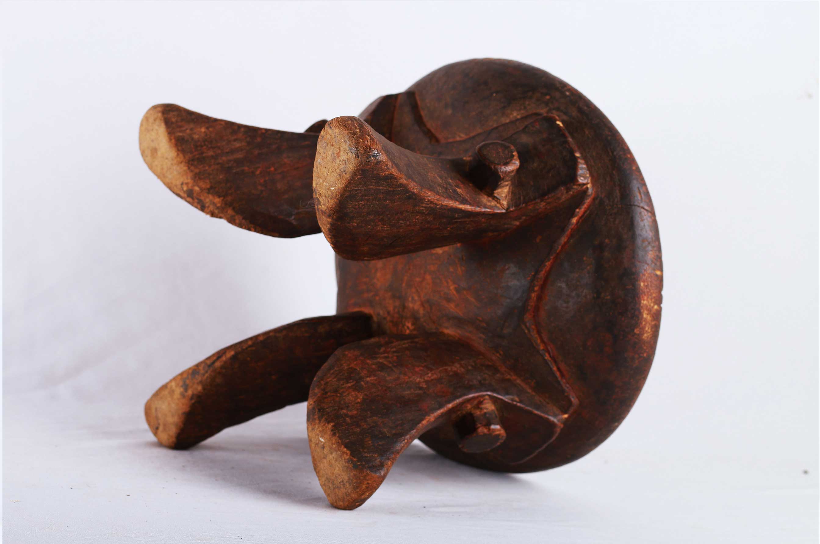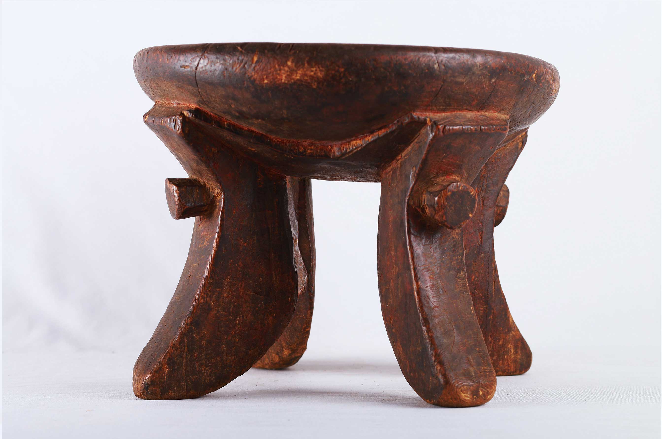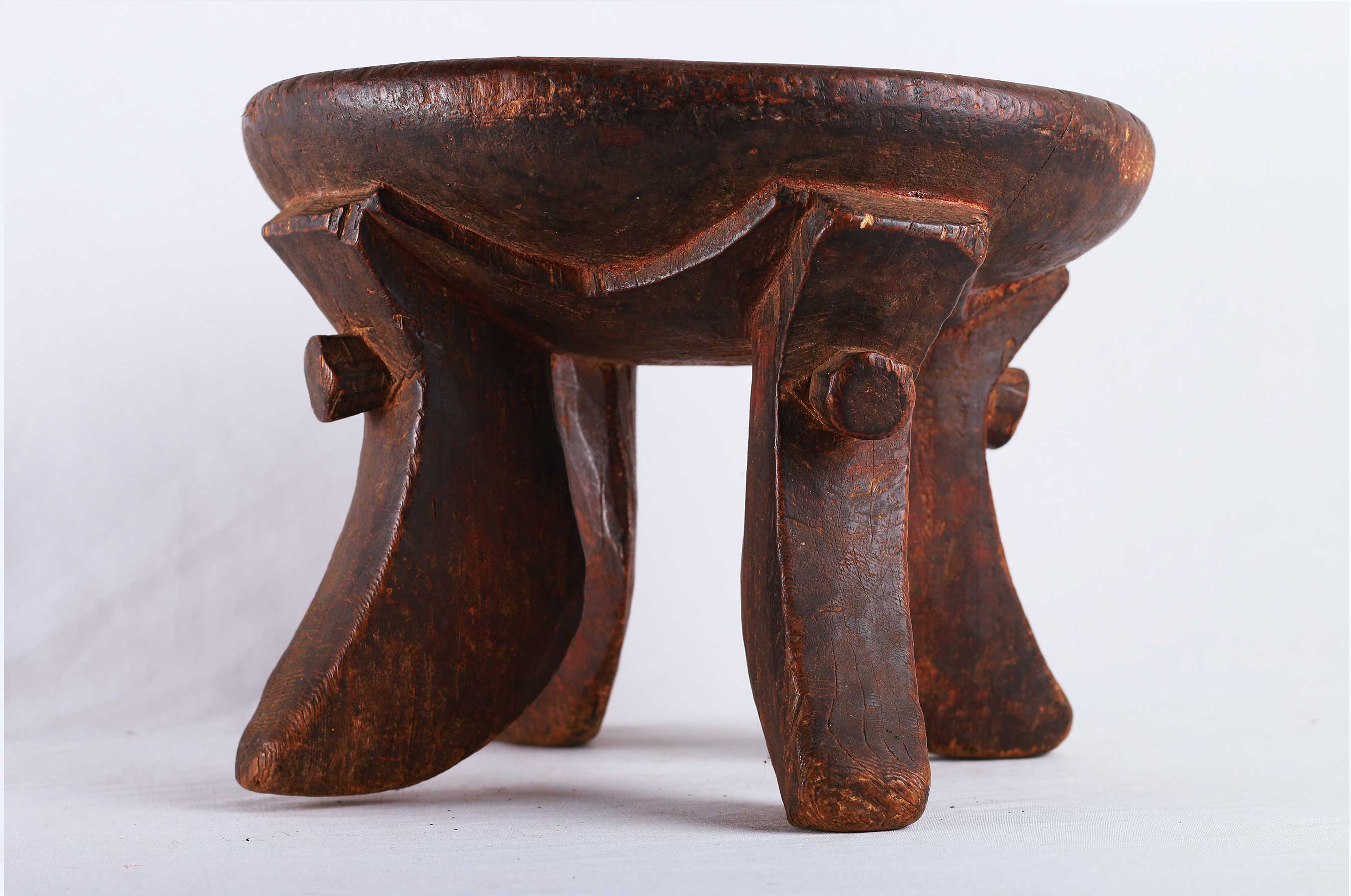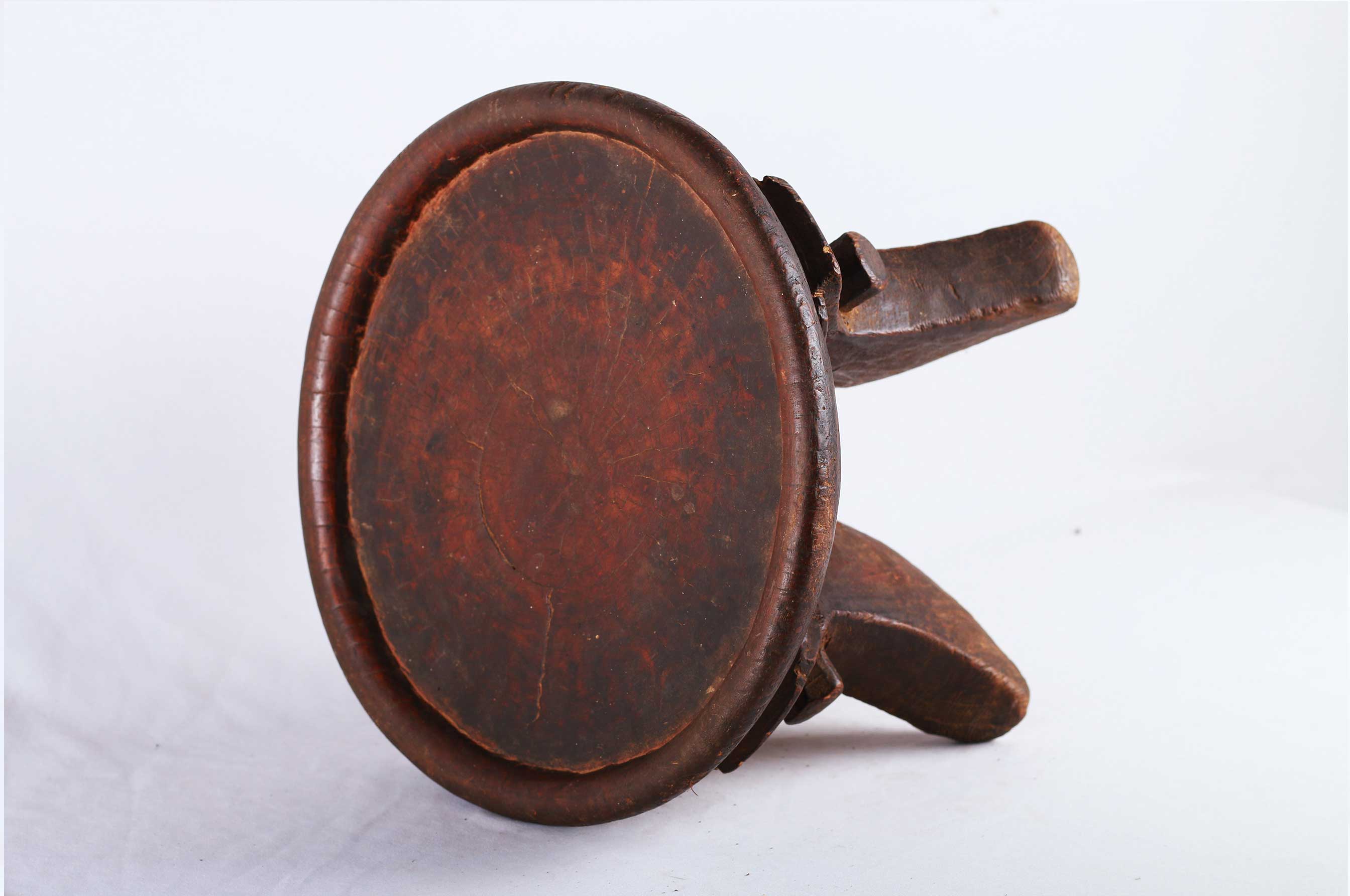 The Samburu tribe are a Nilotic tribe.on the north-central corridor of Kenya, mainly cow herders of sheep, cattle, and camels, they speak a dialect that is close to the Maasai tribe, and also created quite varied forms of utilitarian objects, and headrests as well. These are utilitarian pieces that were made mostly by the Samburu and Dorobo men for family use, they acted as perfect seats to them. This stool is in good condition, though worn with age, and has evidence overall of old worm wear to the surfaces.