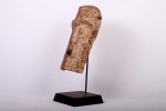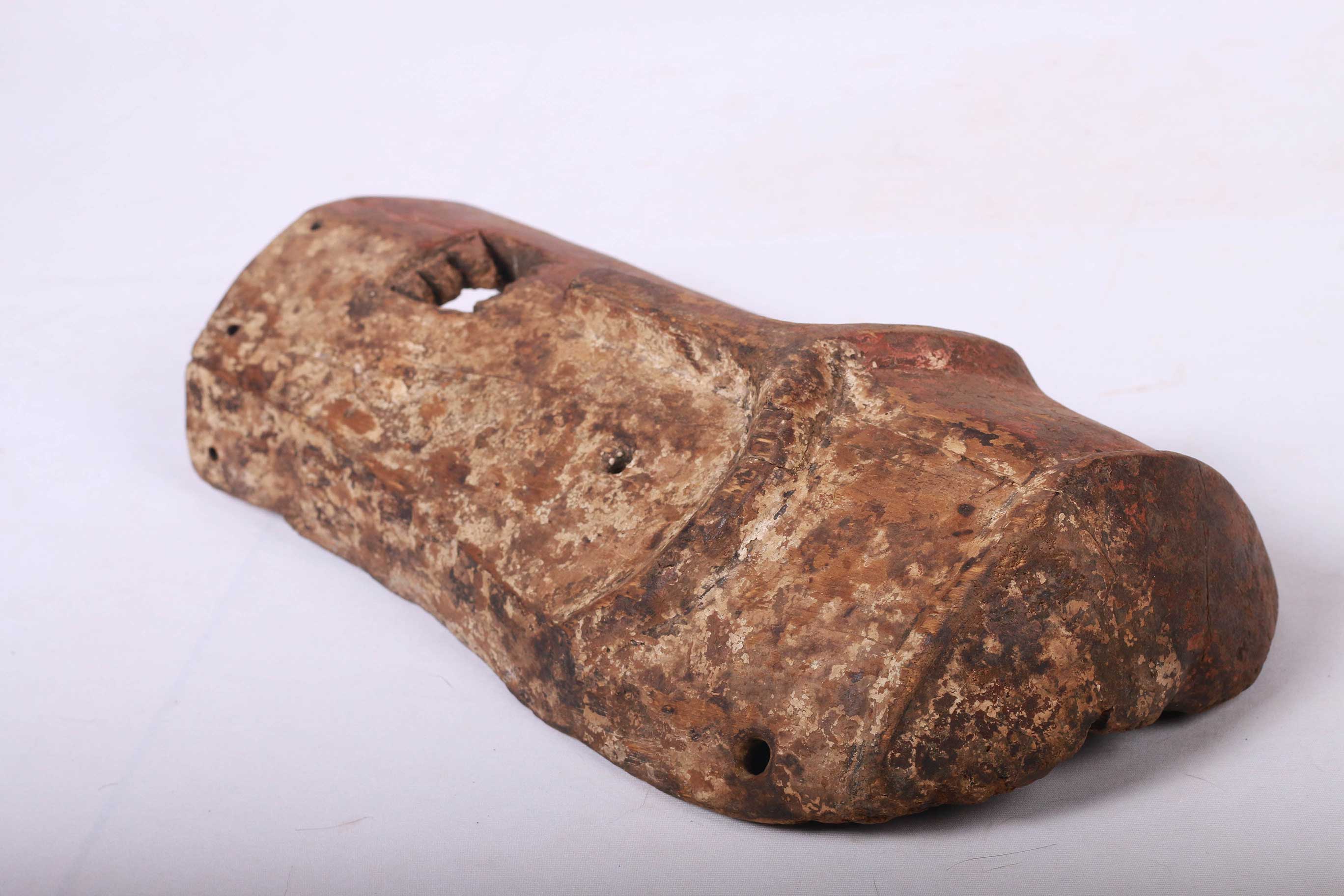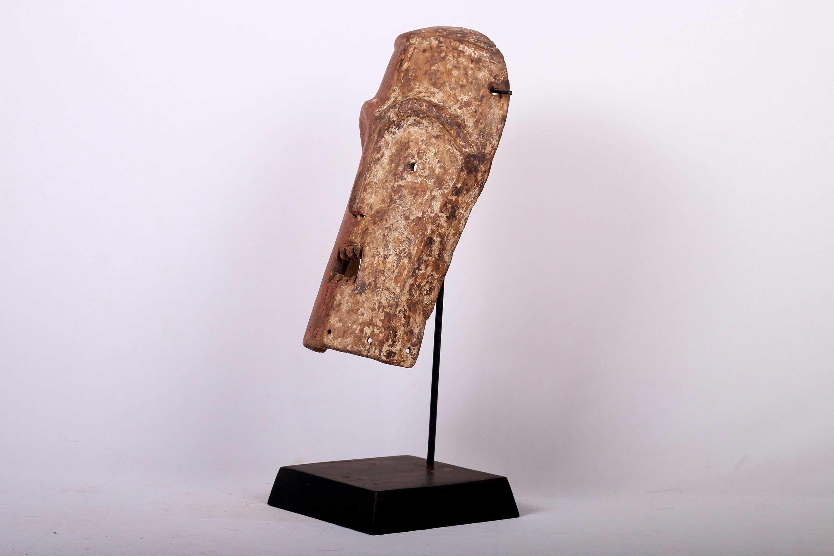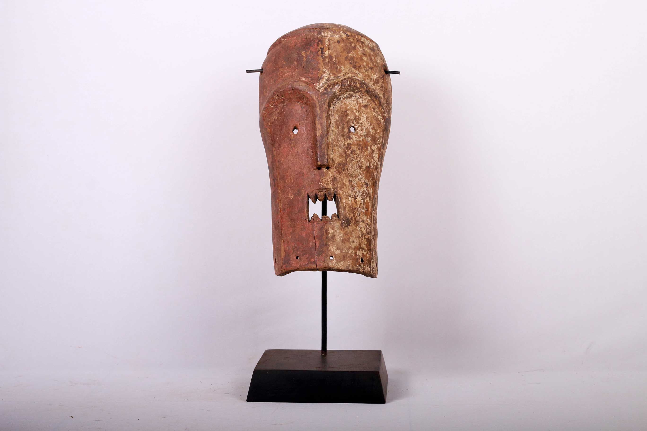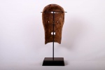 Songola masks and sculptures are very rare. They represent recently deceased ancestors. The Songola are the northwestern and western neighbors of the Lega in the Democratic Republic of Congo. Such masks were securely kept in houses. The mask combines the features of the Lega tribal masks. The following mask is made from light wood and shows visible signs of age.