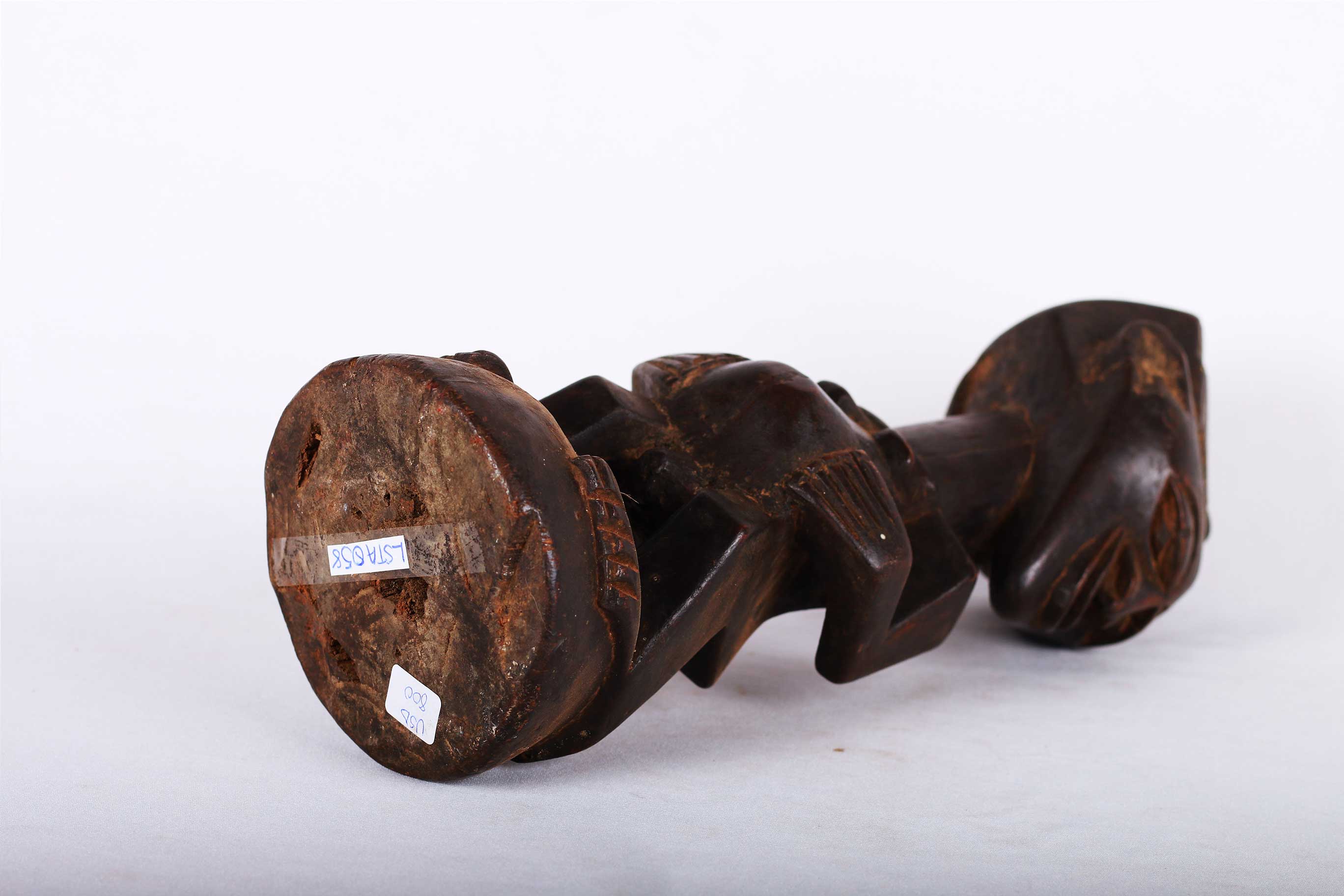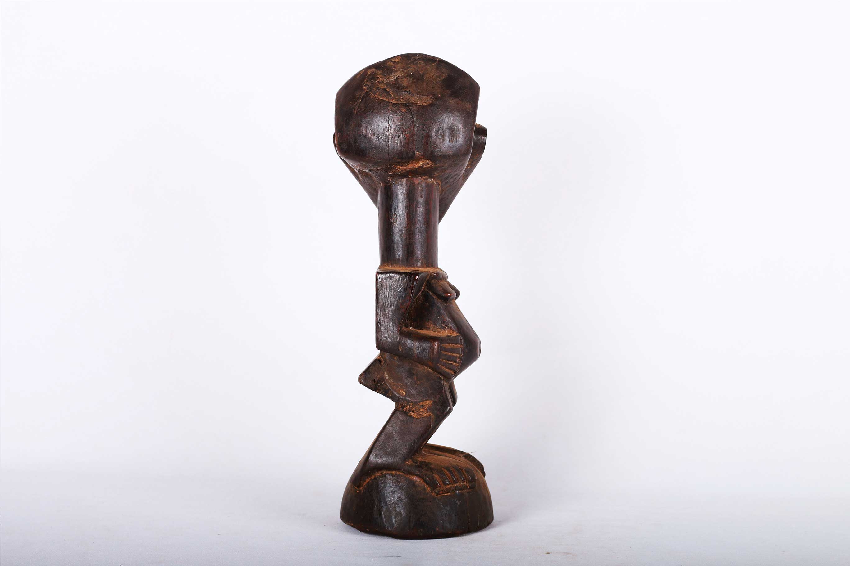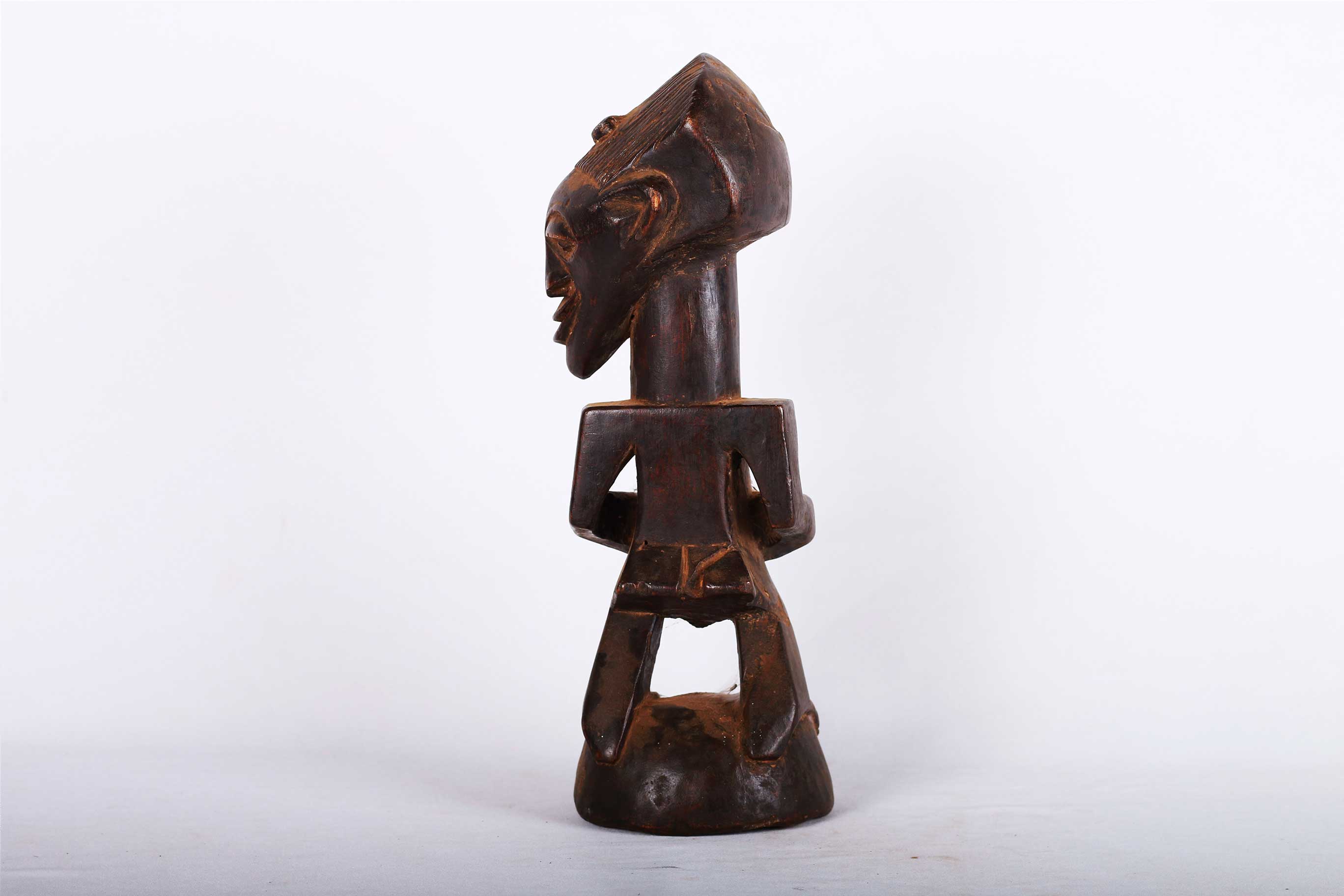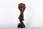 The Songye are found in the Democratic Republic Of Congo, the Songye made power figures known as Nkisi that were used to combat witchcraft and sorcery. They were also believed to bring promote fertility and success, vanquish enemies and protect one from evil. Large ones were owned by and served the community; small ones were for individual families. The following sculpture is crafted from hardwood with a dark patina.