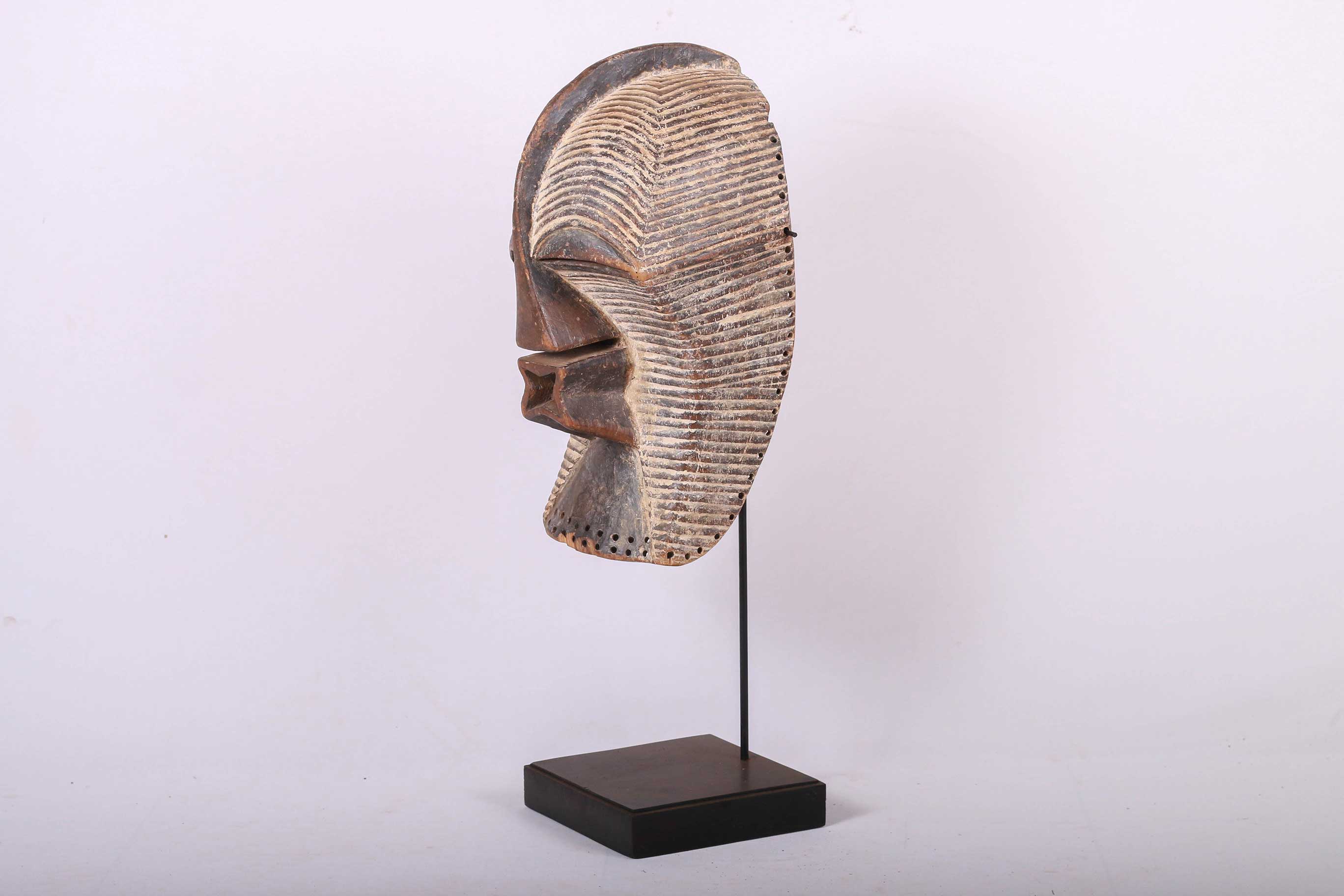 Kifwebe masks were made for the Kifwebe association, a type of society that provided a means of controlling social behavior and neutralizing disruptive elements within the group. These masks appeared at the installation and death of a chief, and at the initiation rites of young men as well as a whole range of occasions that included punishments, warfare, and public works. There is great variety and symbolism within the various Kifwebe masks. More than thirty different mask names have been recorded. Several have animal names while other masks have names of illnesses like leprosy or names denoting natural phenomena.