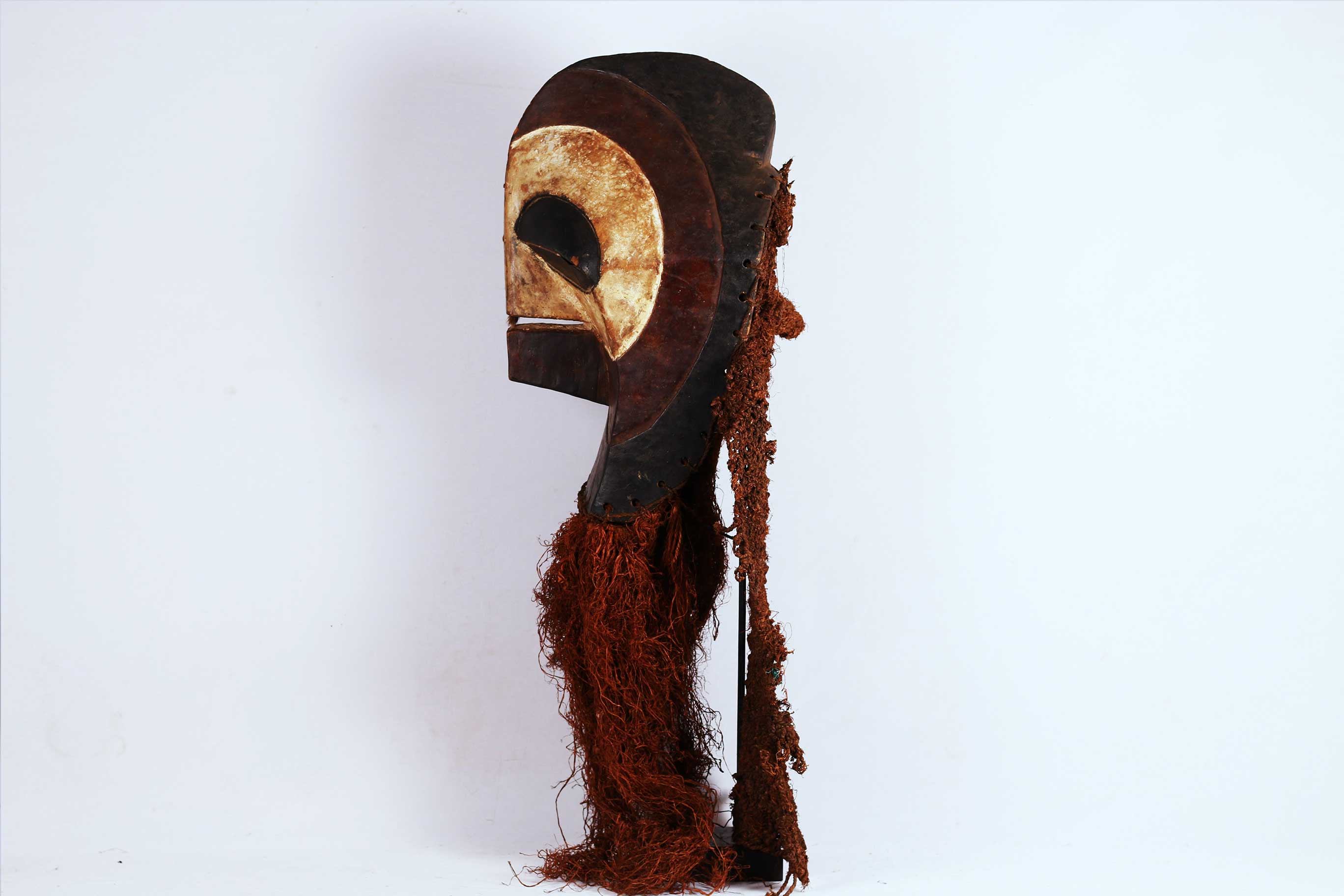 Kifwebe masks were made for the Kifwebe association, a type of society that provided a means of controlling social behavior and neutralizing disruptive elements within the group. These masks appeared at the installation and death of a chief, and at the initiation rites of young men as well as a whole range of occasions that included punishments, warfare, and public works. There are great variety and symbolism within the various Kifwebe masks. More than thirty different mask names have been recorded. Several have animal names while other masks have names of illnesses like leprosy or names denoting natural phenomena. For the most part, Kifwebe masks no longer function to maintain social control among the Songye except in the southeastern regions bordering on Luba territory. Female masks, in direct relation to the physical world and procreation, move calmly; their task is to invoke benevolent spirits that will influence the future generation. Female masks are associated with the moon and are worn for moon rituals as well as during funerals and initiation rites.