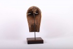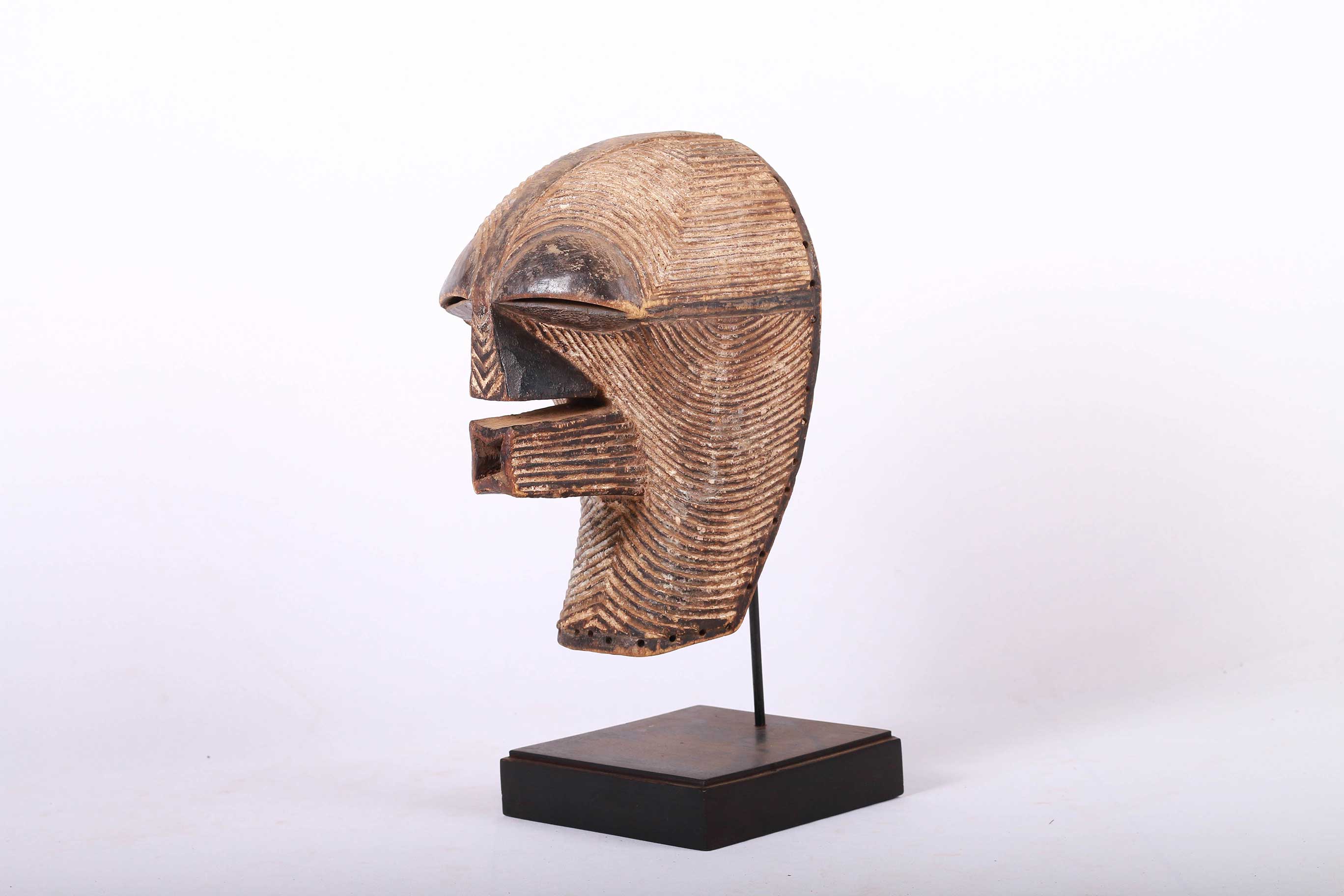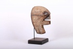 For the most part, Kifwebe masks no longer function to maintain social control among the Songye except in the southeastern regions bordering on Luba territory. Female masks, in direct relation to the physical world and procreation, move calmly; their task is to invoke benevolent spirits that will influence the future generation. Female masks are associated with the moon and are worn for moon rituals as well as during funerals and initiation rites. The following mask shows age and good usage. The following Songye mask shows signs of good age usage.