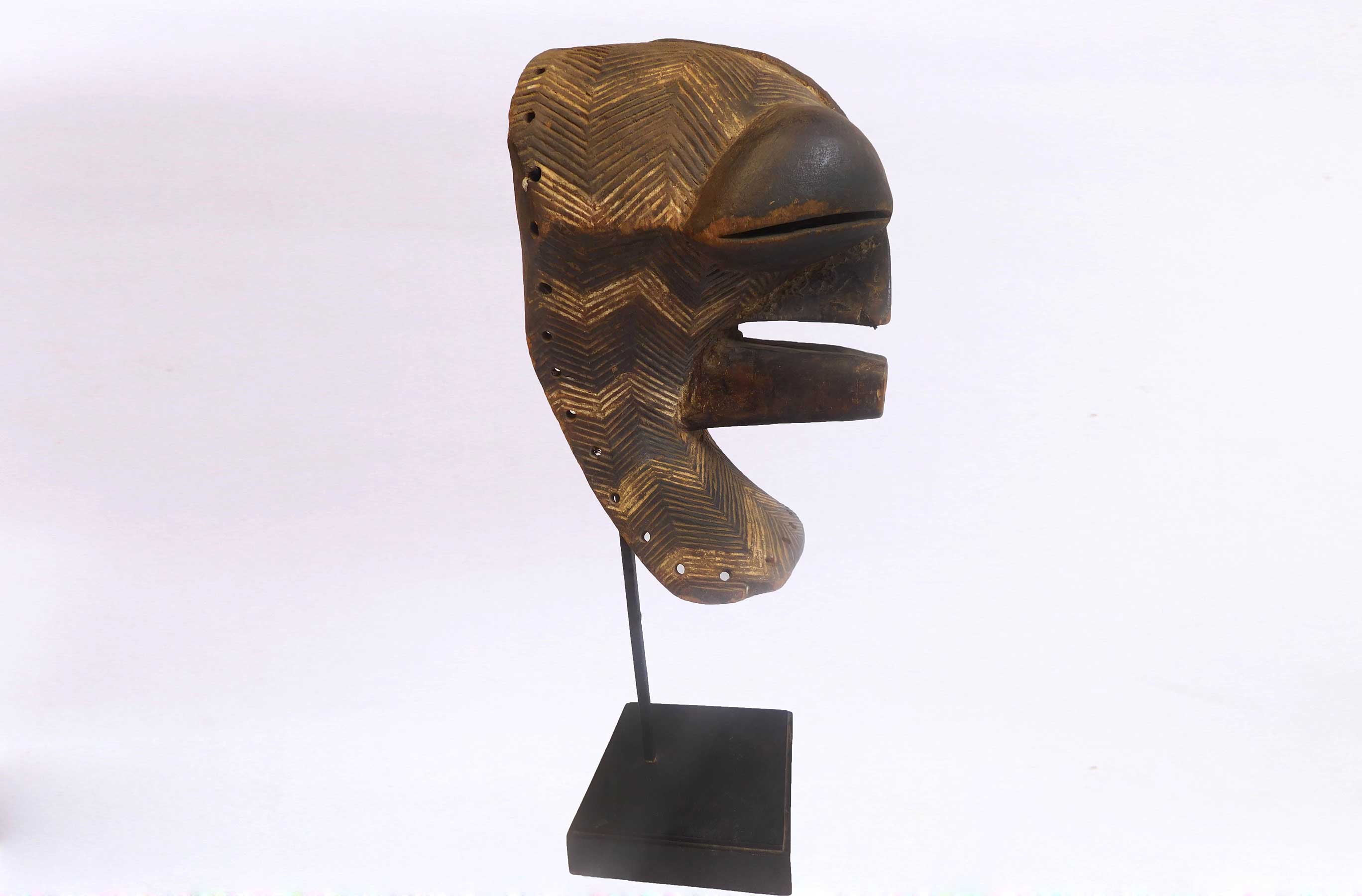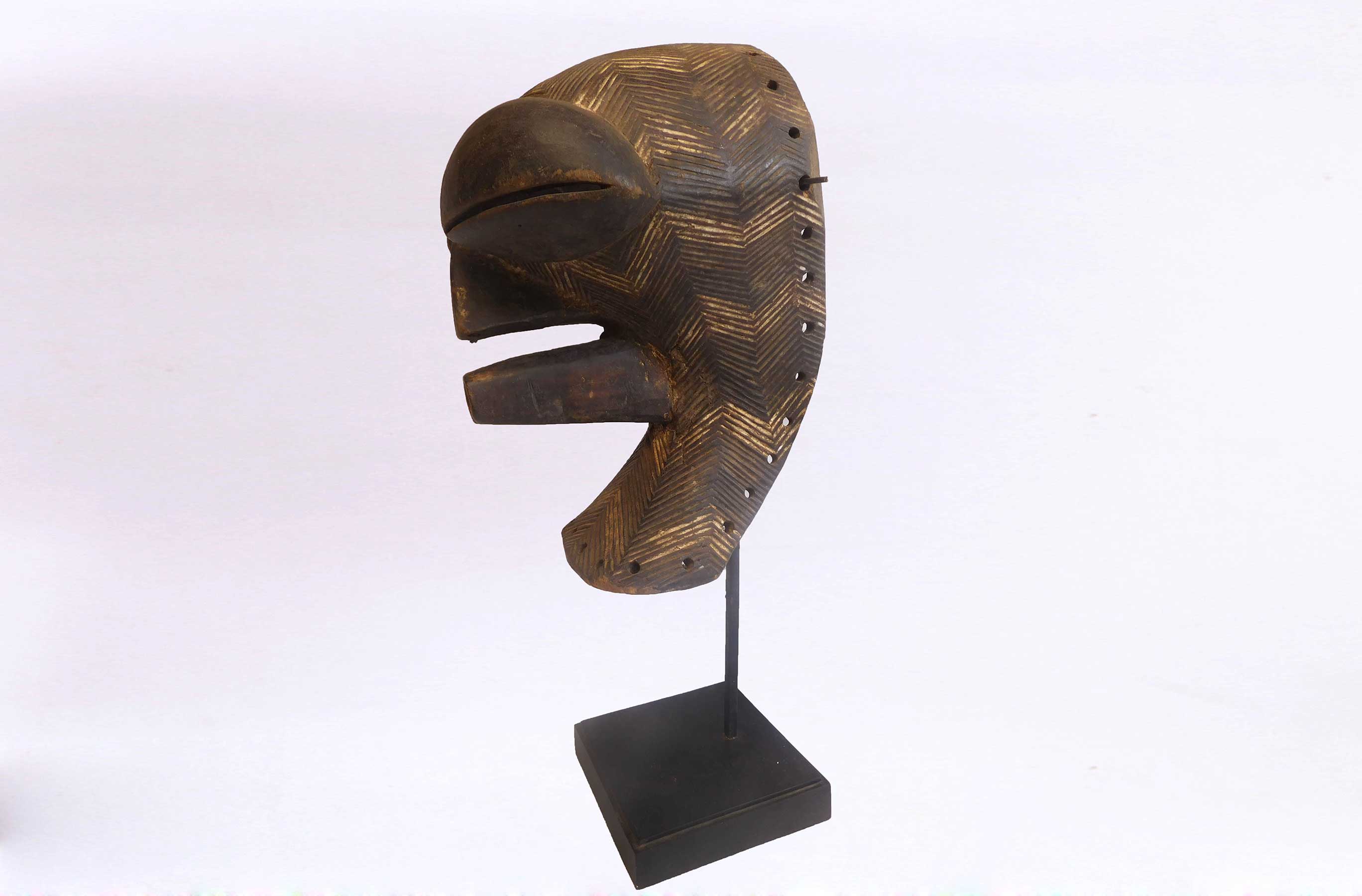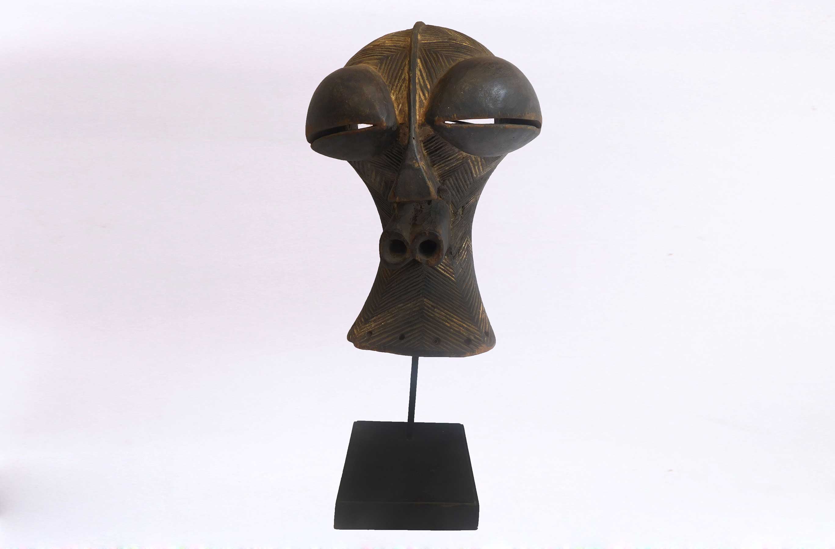 Kifwebe masks were made for the Kifwebe association, a type of society that provided a means of controlling social behavior and neutralizing disruptive elements within the group. These masks appeared at the installation and death of a chief, and at the initiation rites of young men as well as a whole range of occasions that included punishments, warfare, and public works. There is great variety and symbolism within the various Kifwebe masks. More than thirty different mask names have been recorded. Several have animal names while other masks have names of illnesses like leprosy or names denoting natural phenomena. For the most part, Kifwebe masks no longer function to maintain social control among the Songye except in the southeastern regions bordering on Luba territory. Female masks, in direct relation to the physical world and procreation, move calmly; their task is to invoke benevolent spirits that will influence the future generation. Female masks are associated with the moon and are worn for moon rituals as well as during funerals and initiation rites.