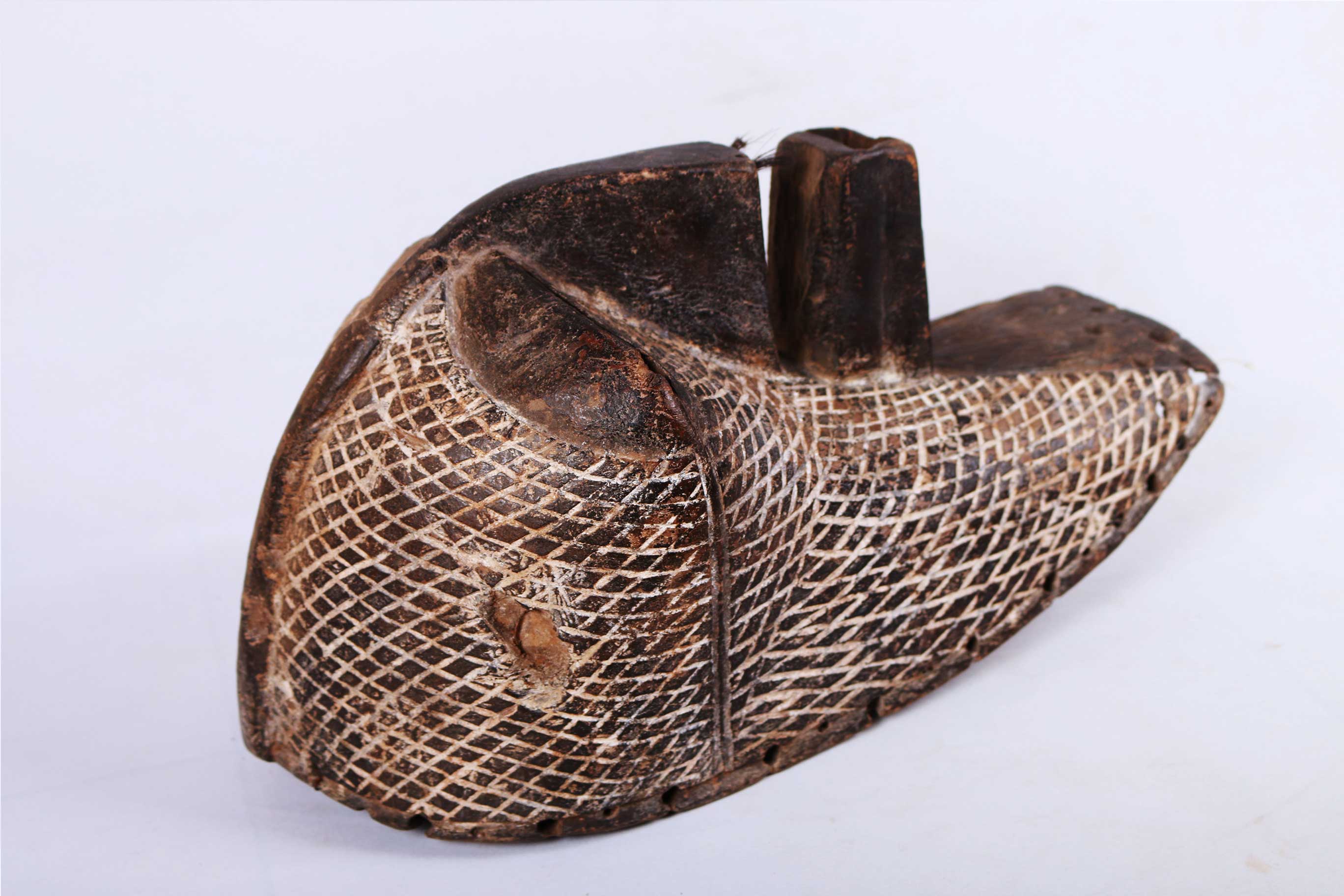 Kifwebe masks were made for the BwadiBwaKifwebe association, a type of policing society that provided a means of controlling social behaviour and neutralizing disruptive elements within the group. These masks appeared at the installation and death of a chief, and at the initiation rites of young men as well as a whole range of occasions that included punishments, warfare and public works. There is great variety and symbolism within the various Kifwebe masks. More than thirty different mask names have been recorded. Several have animal names while other masks have names of illnesses like leprosy or names denoting natural phenomena. For the most part, Kifwebe masks no longer function to maintain social control among the Songye except in the southeastern regions bordering on Luba territory. Female masks, in direct relation to the physical world and procreation, move calmly; their task is to invoke benevolent spirits that will influence the future generation. Female masks are associated with the moon and are worn for moon rituals as well as during funerals and initiation rites.”Beauty and the Beasts: Kifwebe and Animal Masks of the Songye, Luba