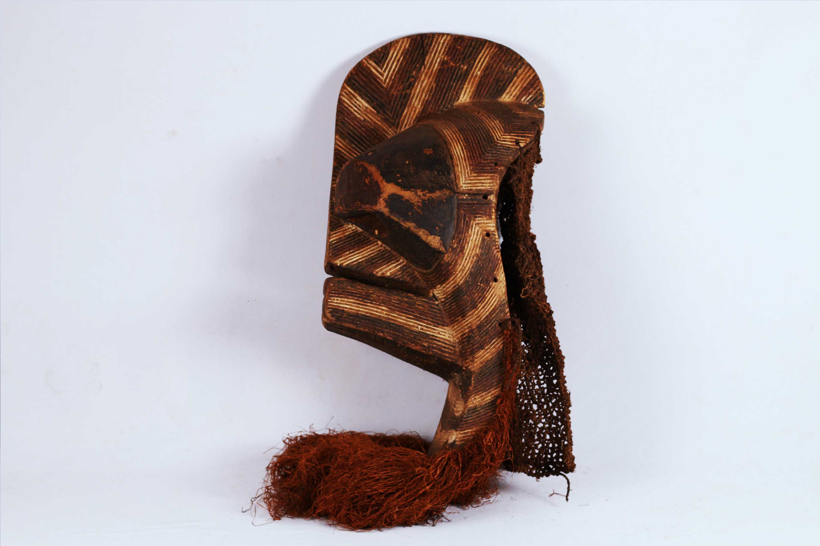 Kifwebe masks were made for the Kifwebe association, a type of society that provided a means of controlling social behavior and neutralizing disruptive elements within the group. These masks appeared at the installation and death of a chief, and at the initiation rites of young men as well as a whole range of occasions that included punishments, warfare, and public works. There are great variety and symbolism within the various Kifwebe masks. More than thirty different mask names have been recorded. Several have animal names while other masks have names of illnesses like leprosy or names denoting natural phenomena. For the most part, Kifwebe masks no longer function to maintain social control among the Songye except in the southeastern regions bordering on Luba territory. Female masks, in direct relation to the physical world and procreation, move calmly; their task is to invoke benevolent spirits that will influence the future generation. Female masks are associated with the moon and are worn for moon rituals as well as during funerals and initiation rites.