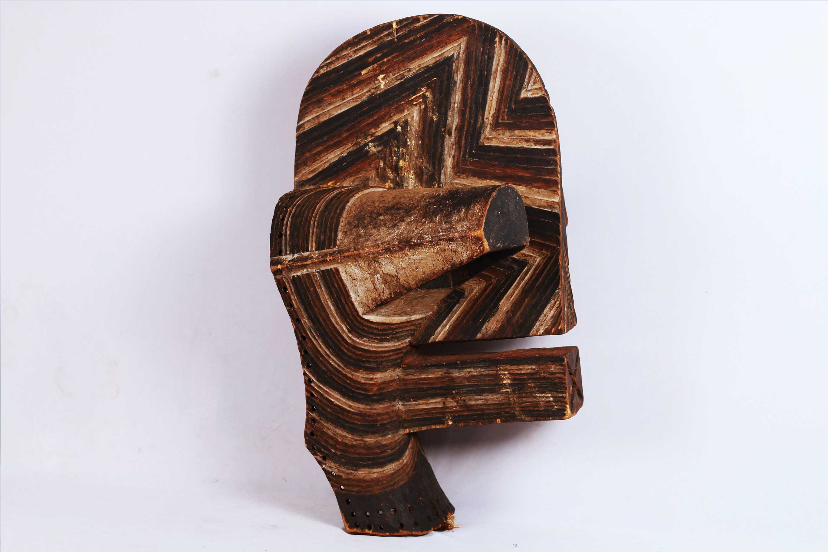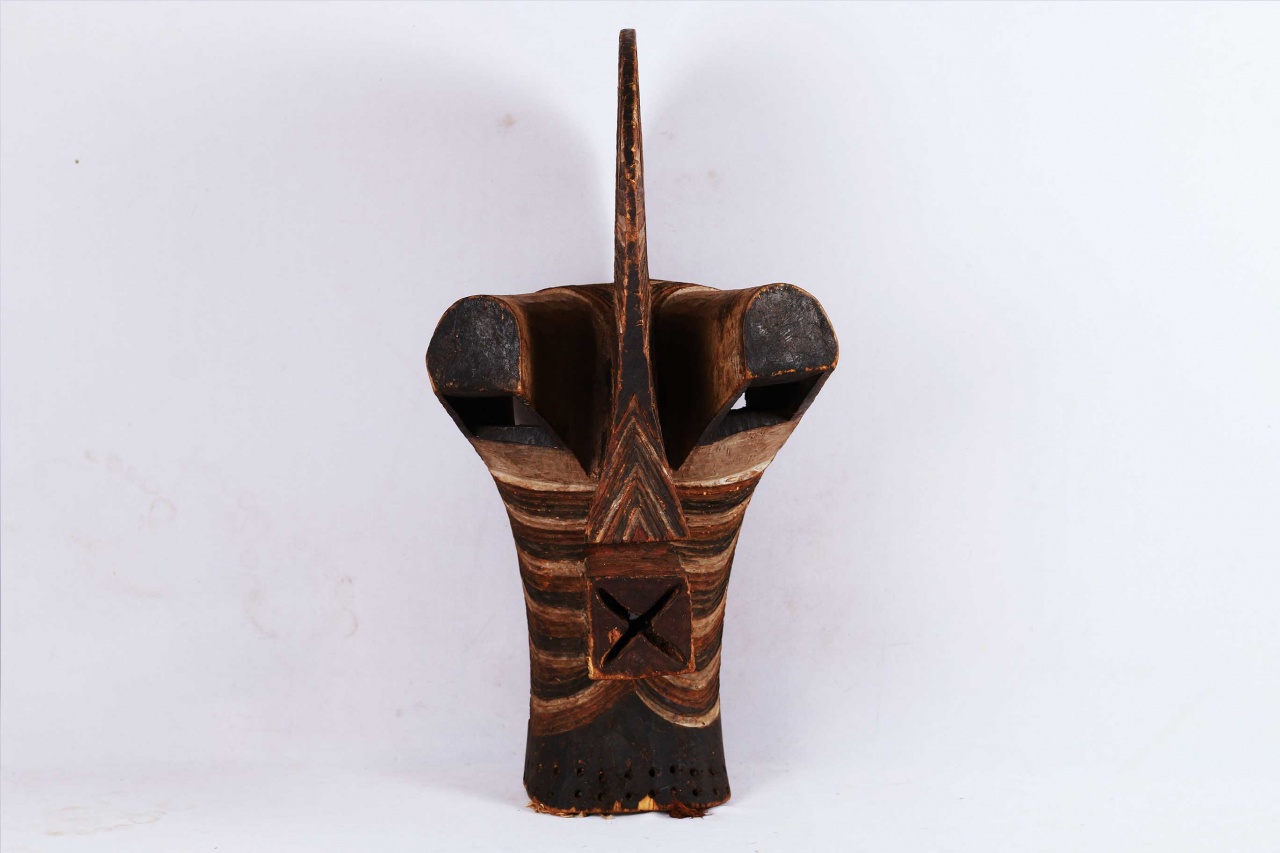 Kifwebe masks were made for the Kifwebe association, a type of society that provided a means of controlling social behavior and neutralizing disruptive elements within the group. These masks appeared at the installation and death of a chief, and at the initiation rites of young men as well as a whole range of occasions that included punishments, warfare, and public works. There are great variety and symbolism within the various Kifwebe masks. More than thirty different mask names have been recorded. Several have animal names while other masks have names of illnesses like leprosy or names denoting natural phenomena. For the most part, Kifwebe masks no longer function to maintain social control among the Songye except in the southeastern regions bordering on Luba territory. Female masks, in direct relation to the physical world and procreation, move calmly; their task is to invoke benevolent spirits that will influence the future generation. Female masks are associated with the moon and are worn for moon rituals as well as during funerals and initiation rites.