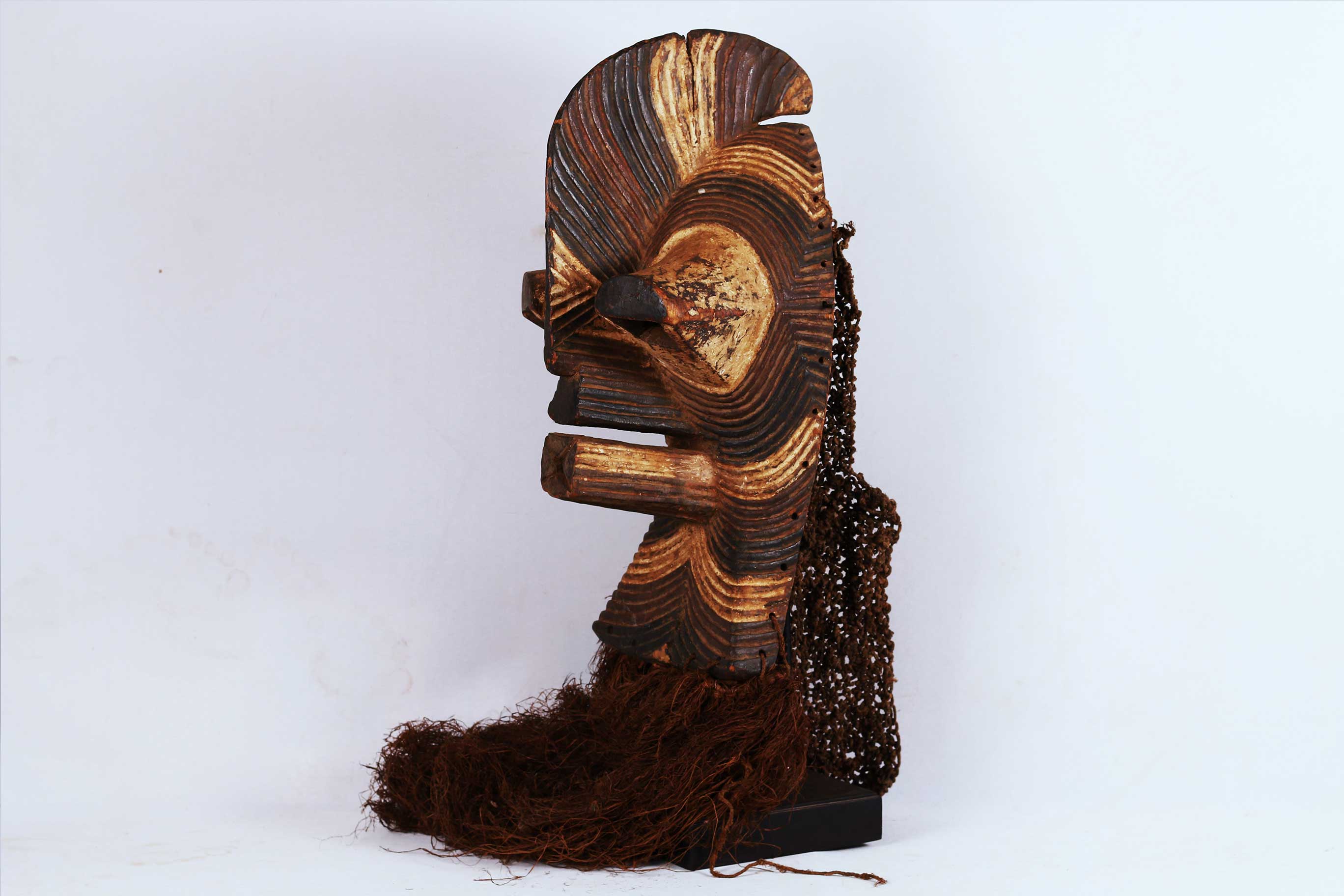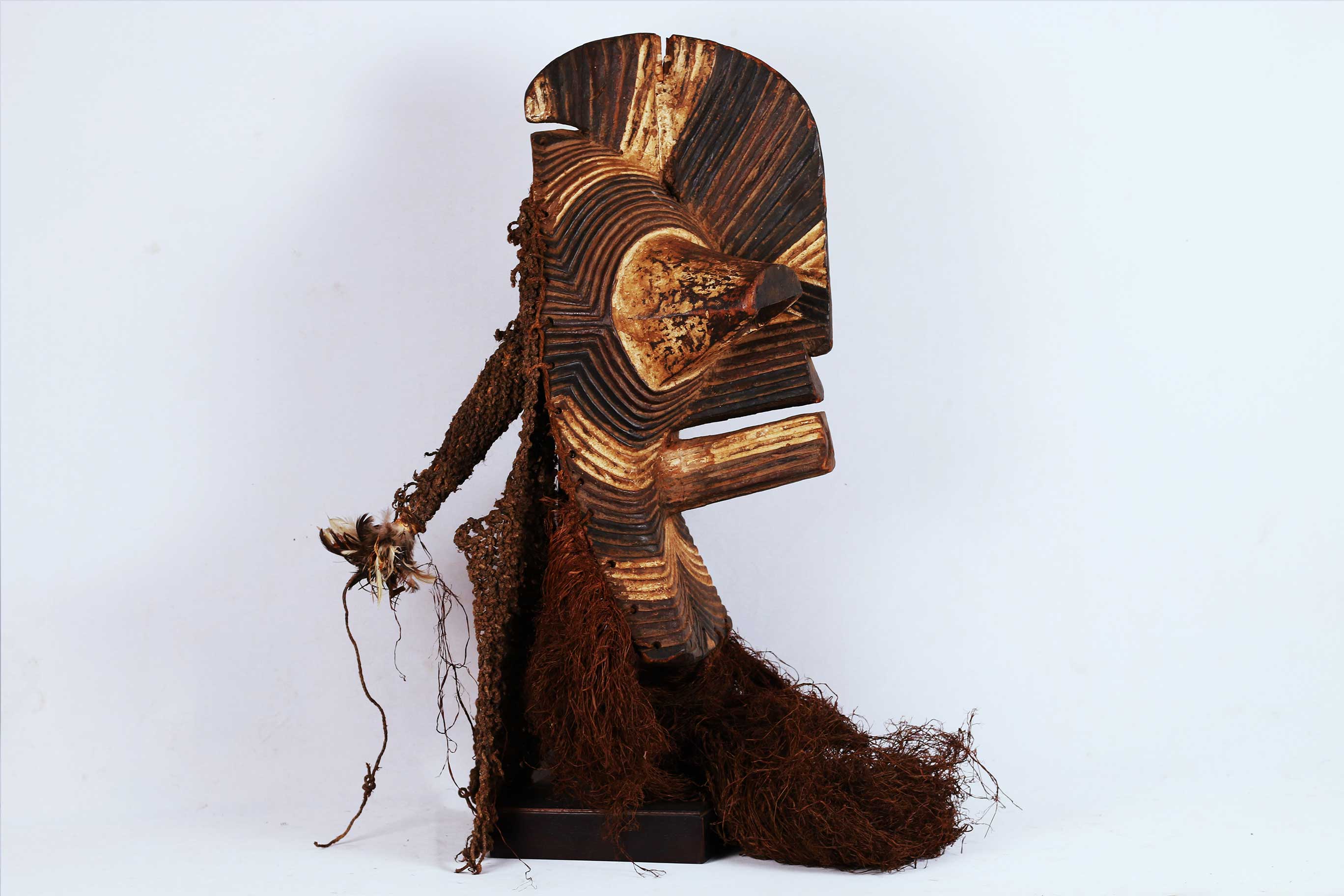 Kifwebe masks were made for the Kifwebe association, a type of society that provided a means of controlling social behavior and neutralizing disruptive elements within the group. These masks appeared at the installation and death of a chief, and at the initiation rites of young men as well as a whole range of occasions that included punishments, warfare, and public works. There are great variety and symbolism within the various Kifwebe masks. More than thirty different mask names have been recorded. Several have animal names while other masks have names of illnesses like leprosy or names denoting natural phenomena. For the most part, Kifwebe masks no longer function to maintain social control among the Songye except in the southeastern regions bordering on Luba territory. Female masks, in direct relation to the physical world and procreation, move calmly; their task is to invoke benevolent spirits that will influence the future generation. Female masks are associated with the moon and are worn for moon rituals as well as during funerals and initiation rites.