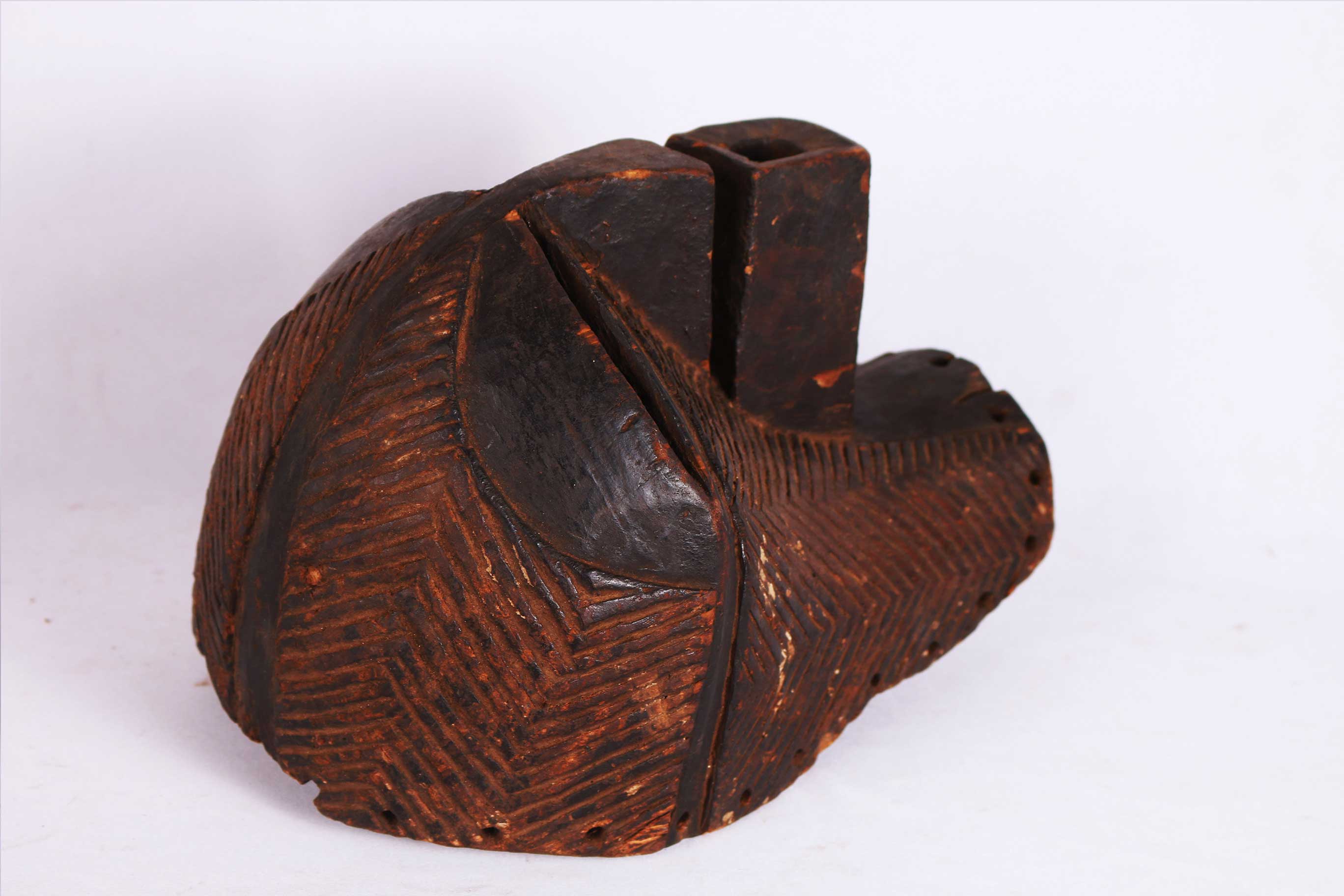 Kifwebe masks were made for the Kifwebe association, a type of society that provided a means of controlling social behavior and neutralizing disruptive elements within the group. These masks appeared at the installation and death of a chief, and at the initiation rites of young men as well as a whole range of occasions that included punishments, warfare, and public works. There are great variety and symbolism within the various Kifwebe masks. More than thirty different mask names have been recorded. Several have animal names while other masks have names of illnesses like leprosy or names denoting natural phenomena. For the most part, Kifwebe masks no longer function to maintain social control among the Songye except in the southeastern regions bordering on Luba territory. Female masks, in direct relation to the physical world and procreation, move calmly; their task is to invoke benevolent spirits that will influence the future generation. Female masks are associated with the moon and are worn for moon rituals as well as during funerals and initiation rites.