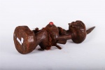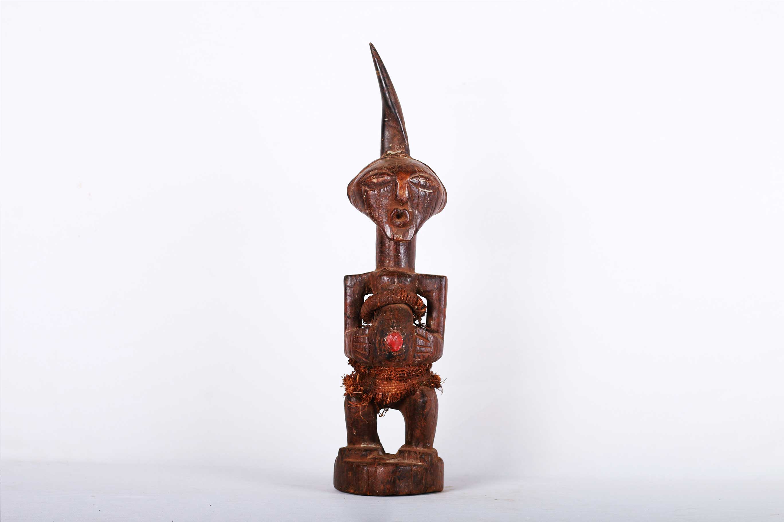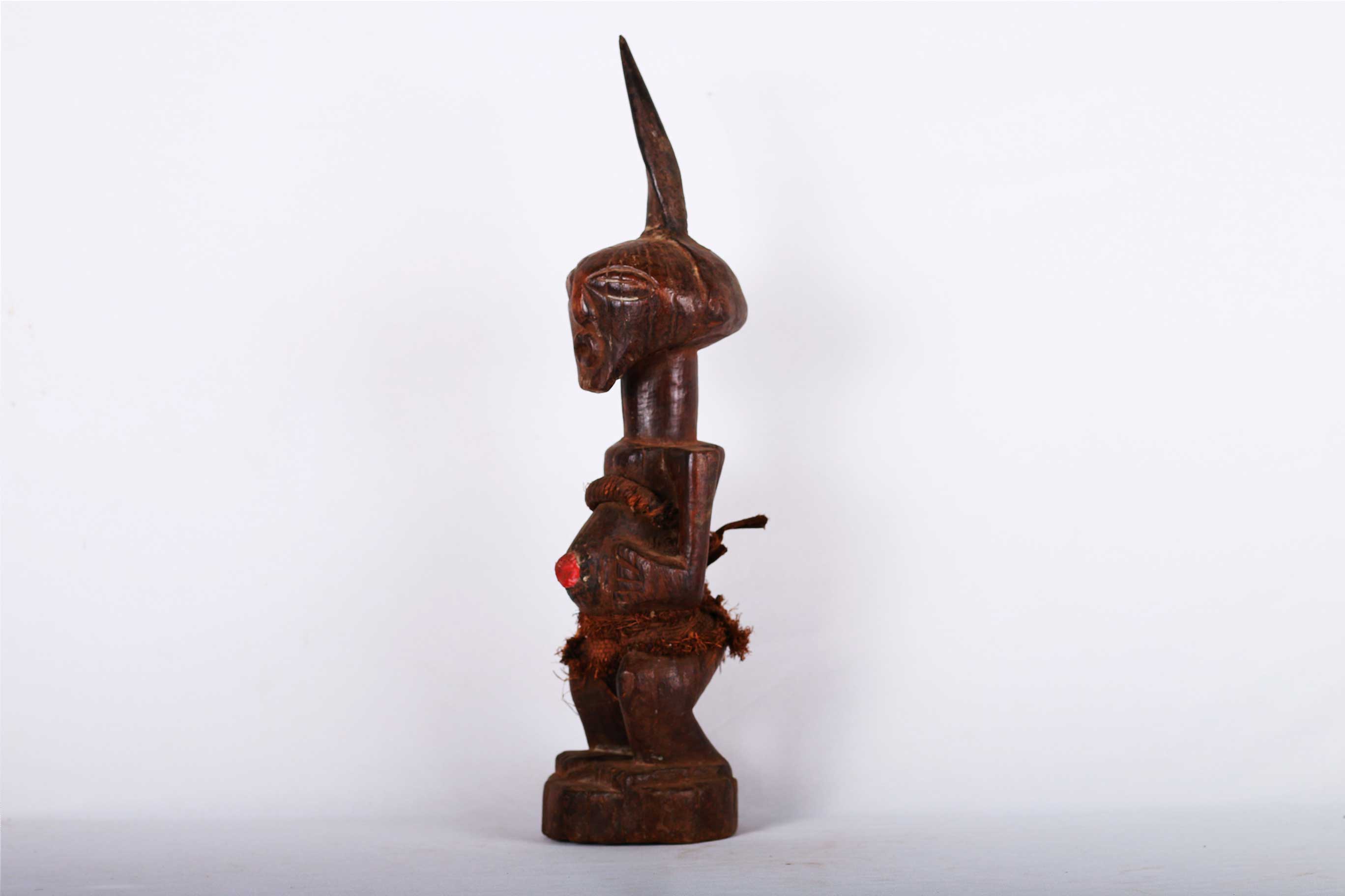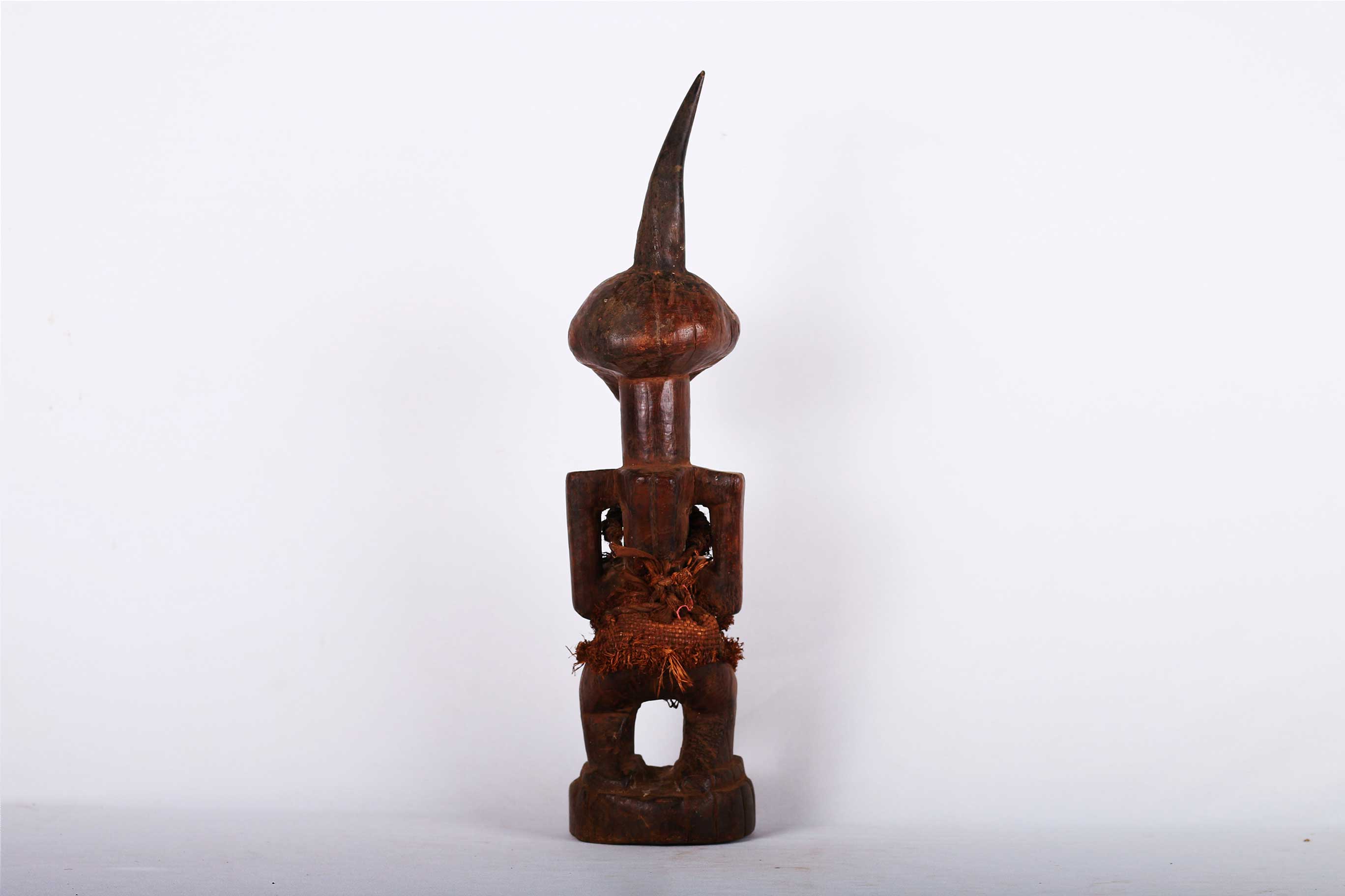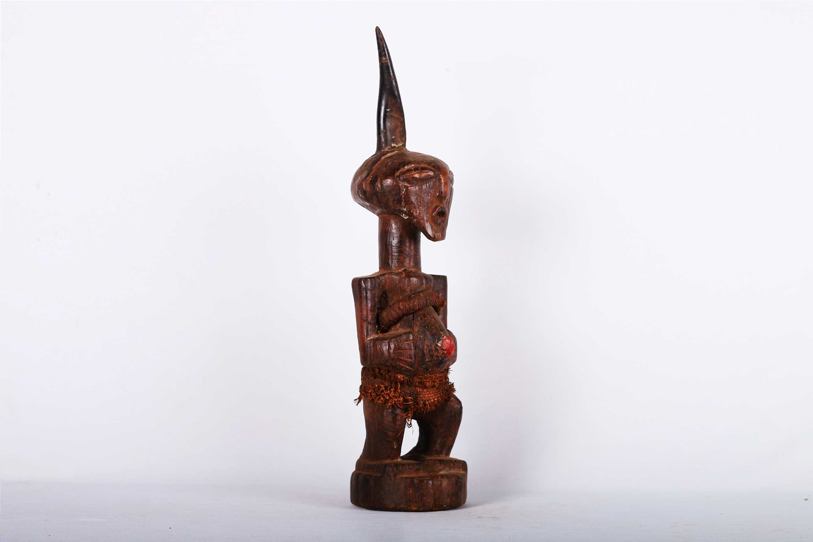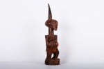 The Songye are found in the Democratic Republic Of Congo, the Songye made power figures known as Nkisi that were used to combat witchcraft and sorcery. They were also believed to bring promote fertility and success, vanquish enemies and protect one from evil. Large ones were owned by and served the community; small ones were for individual families.The following sculpture is crafted from hardwood with a brown patina.