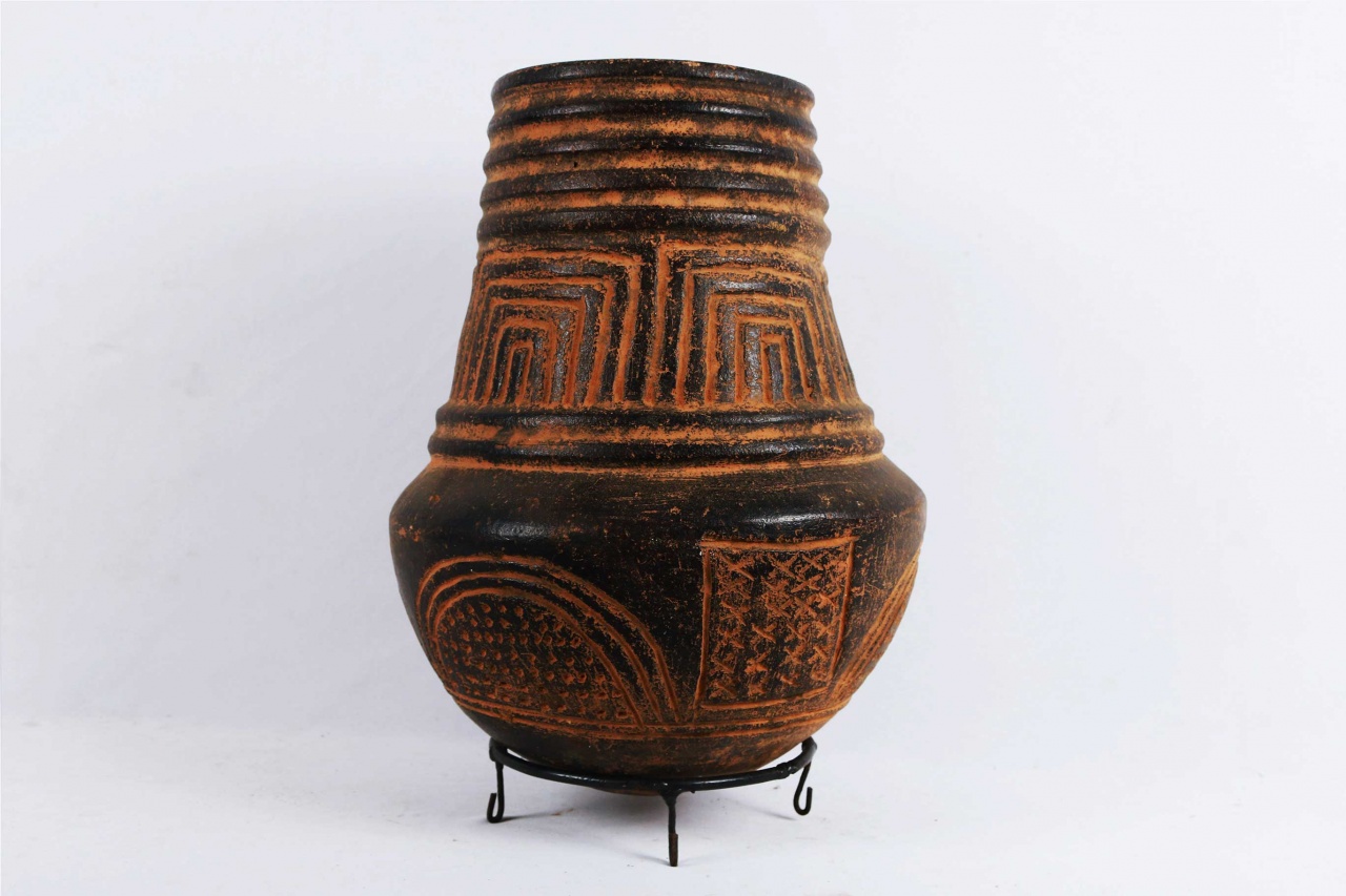 This container demonstrates the stylistic variations-on-a-theme that characterize Songye pottery: it is embellished in a characteristically robust style, with deeply incised lines that emphasize the neck and shoulders. Clay pots were and still are being used to cook food, store water and for various other food preparation functions. The following post shows good use and age.
