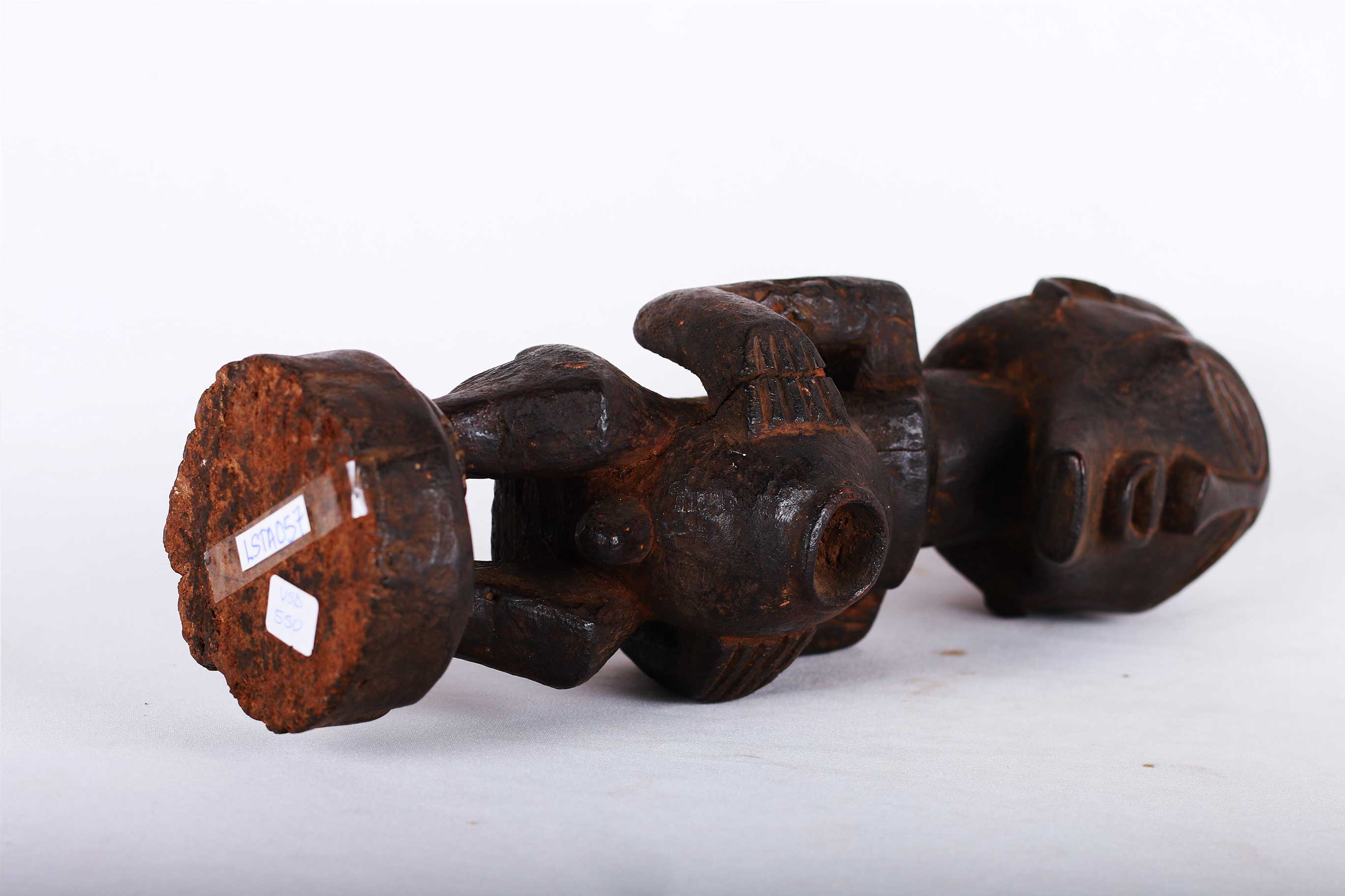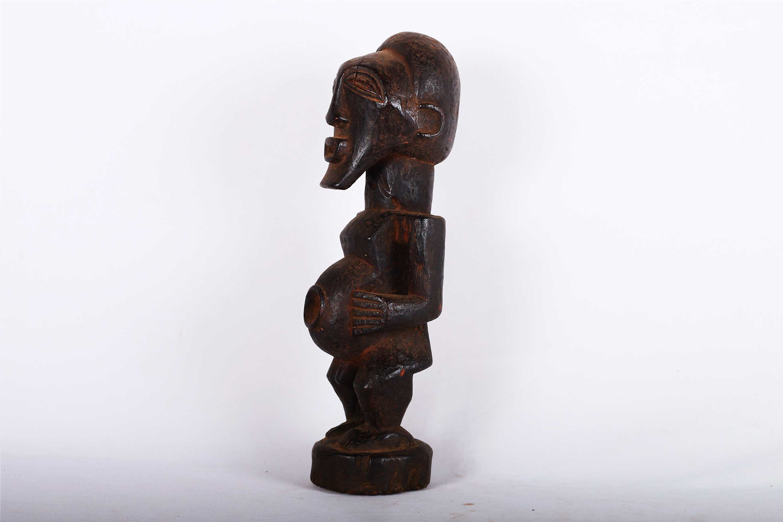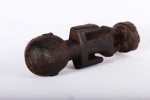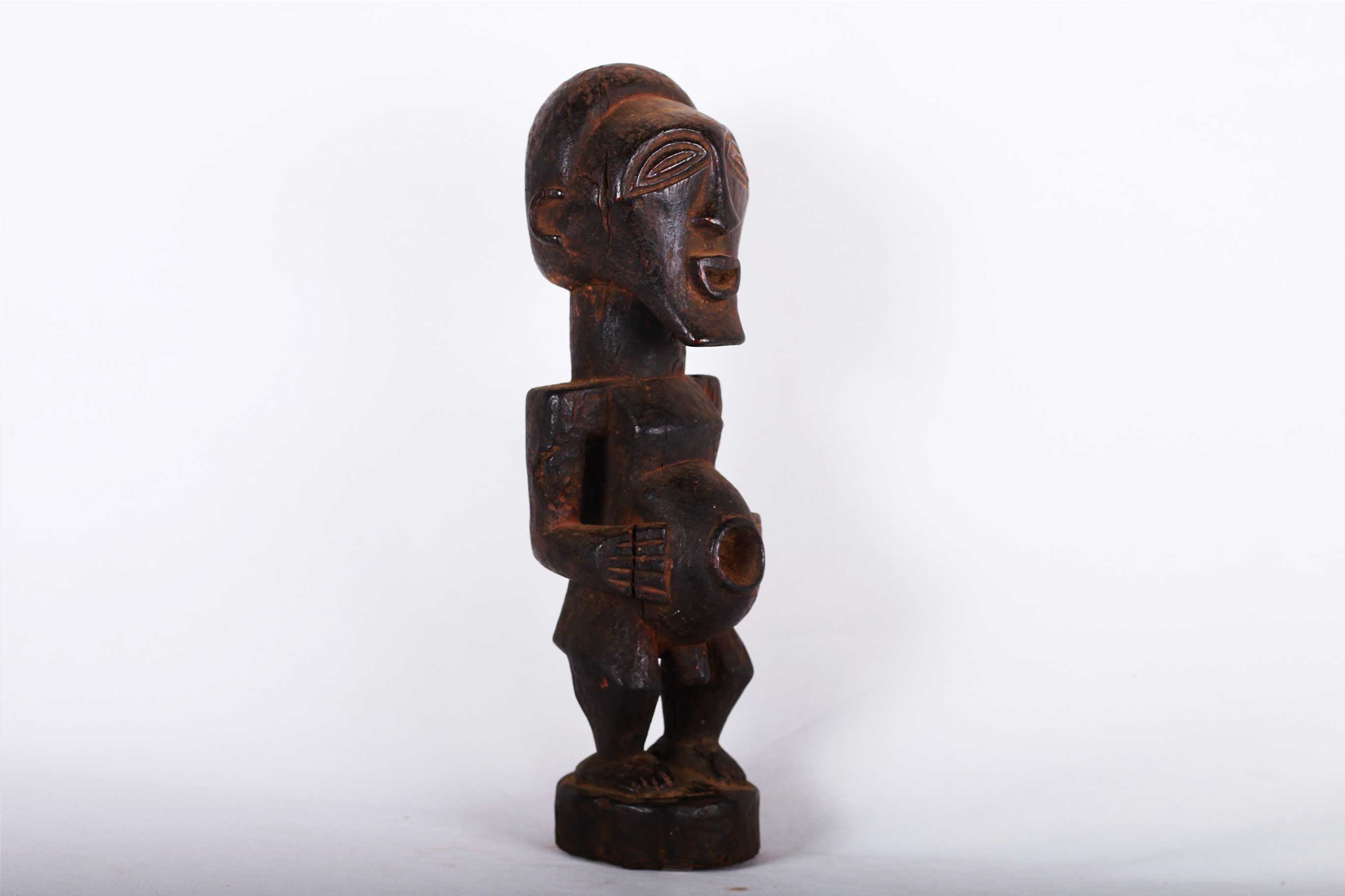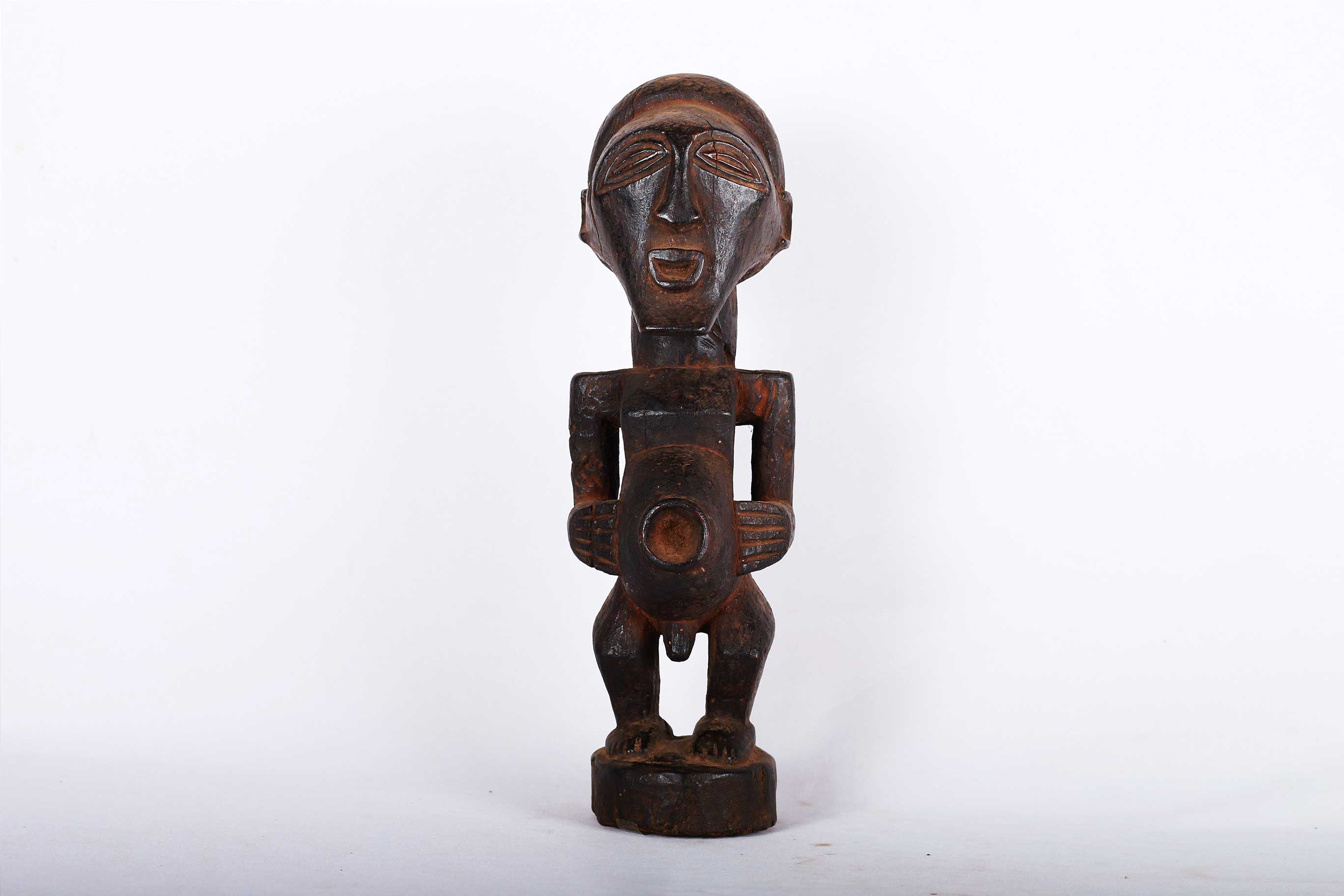 The Songye are found in the Democratic Republic Of Congo, the Songye made power figures known as Nkisi that were used to combat witchcraft and sorcery. They were also believed to bring promote fertility and success, vanquish enemies and protect one from evil. Large ones were owned by and served the community; small ones were for individual families. The following sculpture is crafted from hardwood with a dark patina.