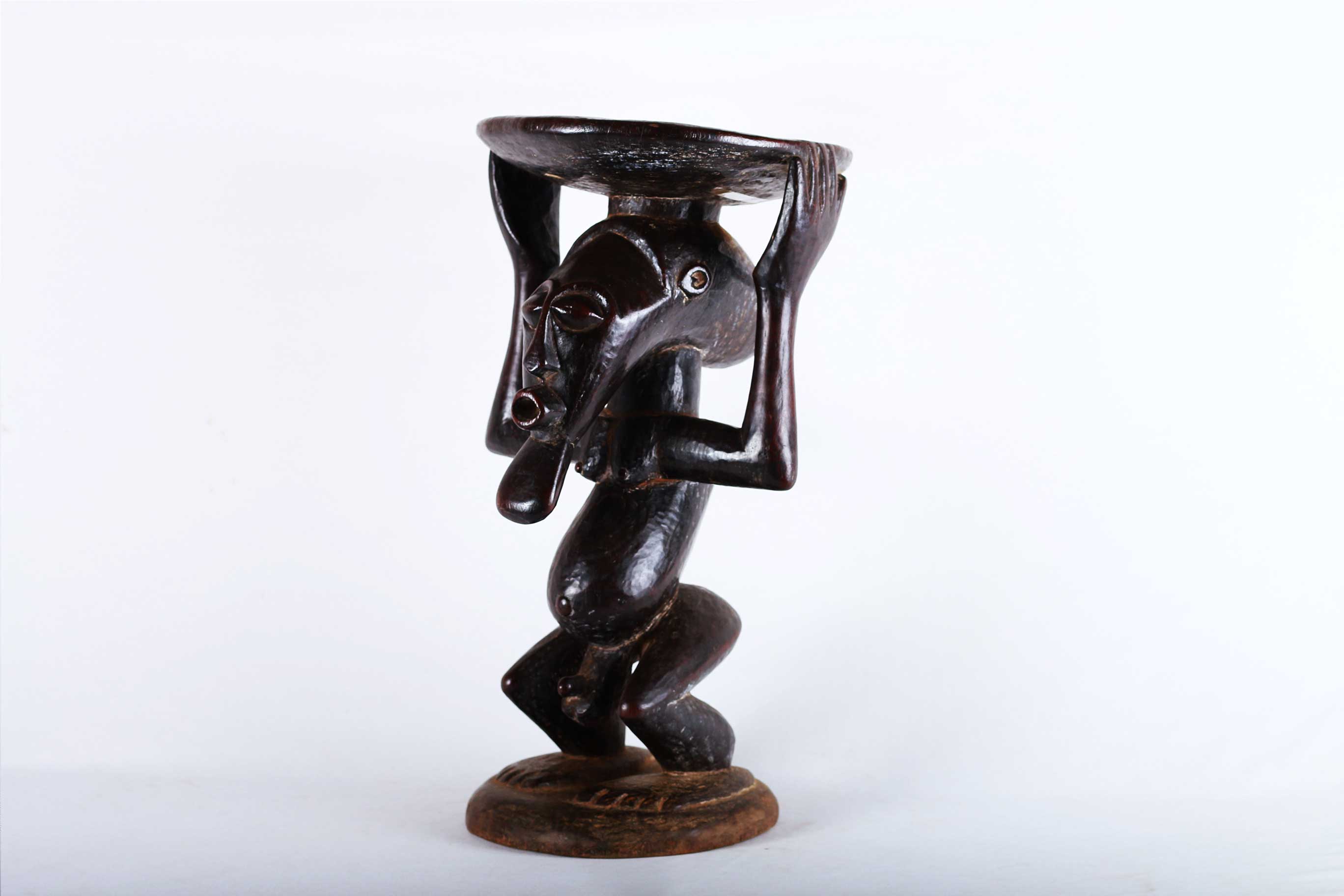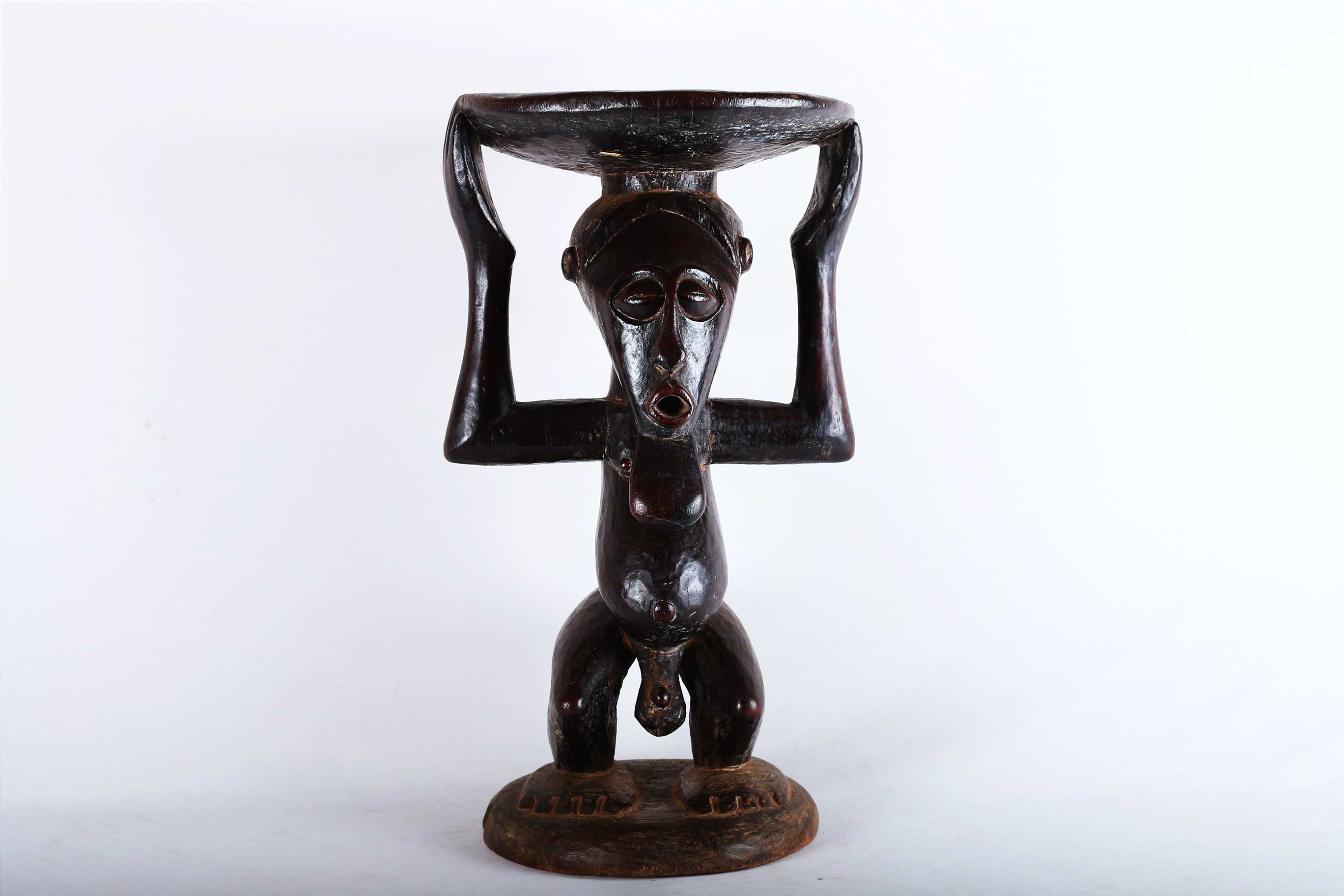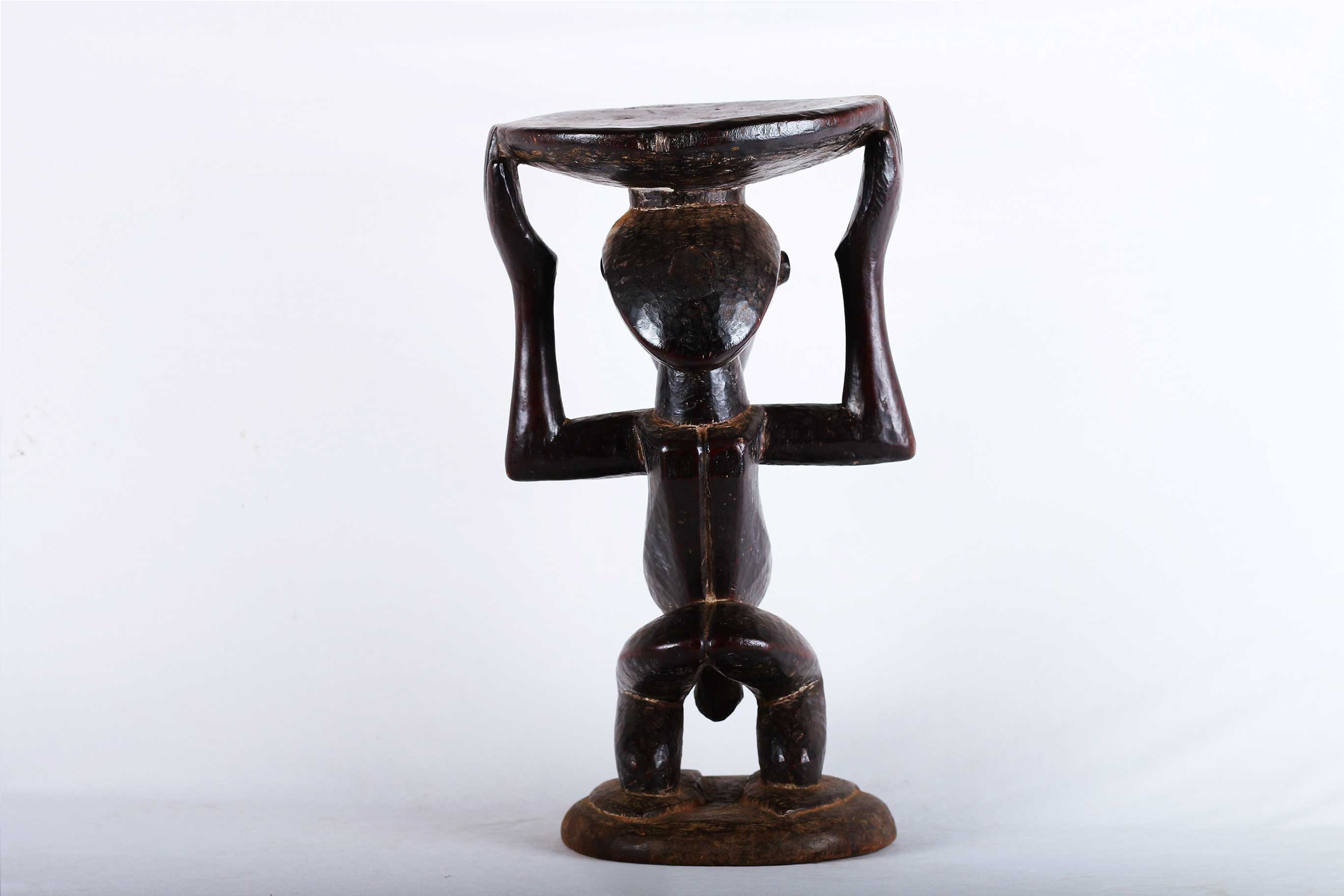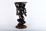 The Songye is found in the Democratic Republic Of Congo on the left of the River Lualaba. The Songye are popular for crafting numerous tribal artwork like power objects and objects associated with divination, fertility, and success. These stools were closely personal to the owner. The size of the stool was often in relation to the importance of the owner. This stool is in good condition, though worn with age, and has evidence overall of old worm wear to the surfaces, it is crafted in hardwood with a shiny dark patina, smooth texture and a round stable base supporting it.