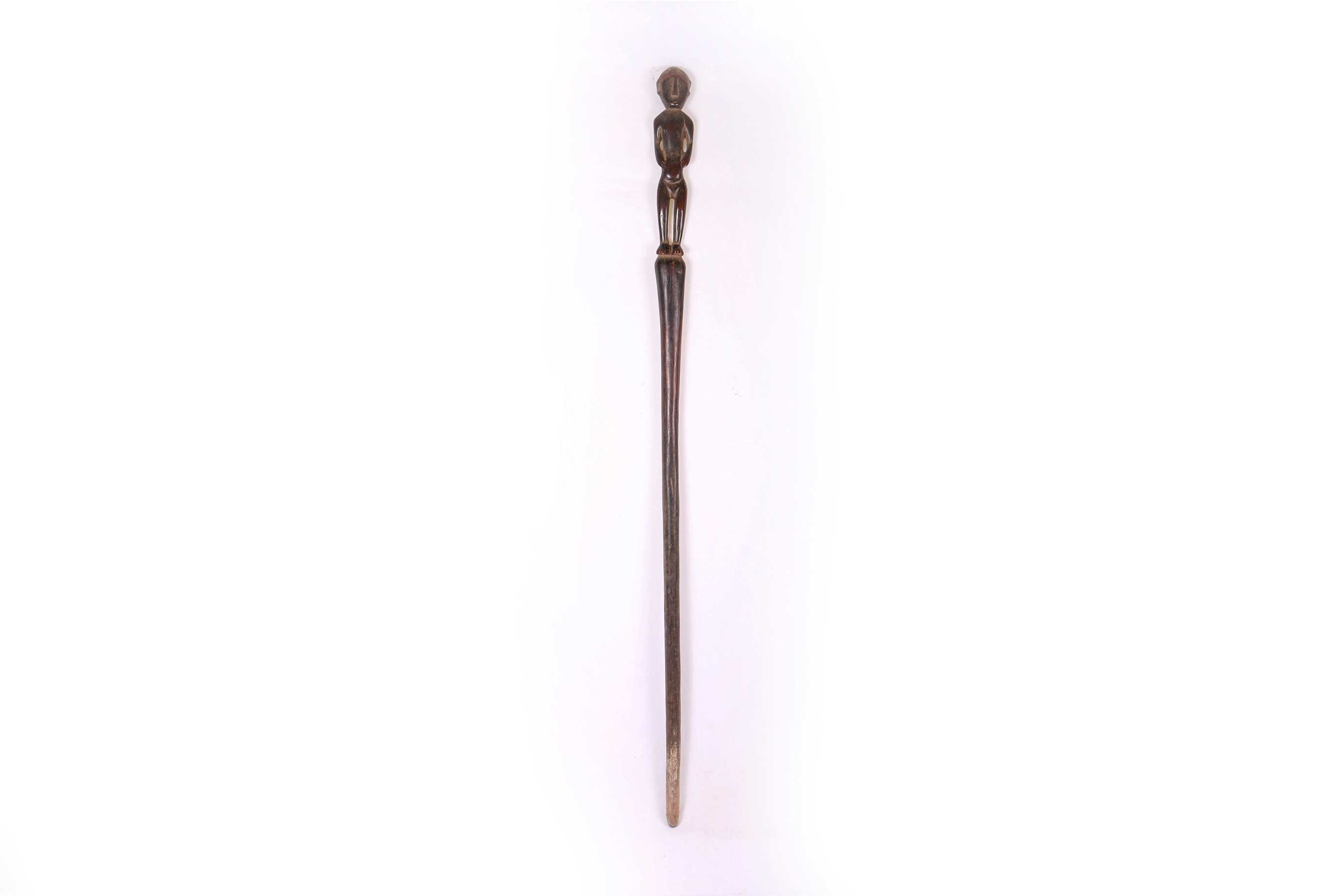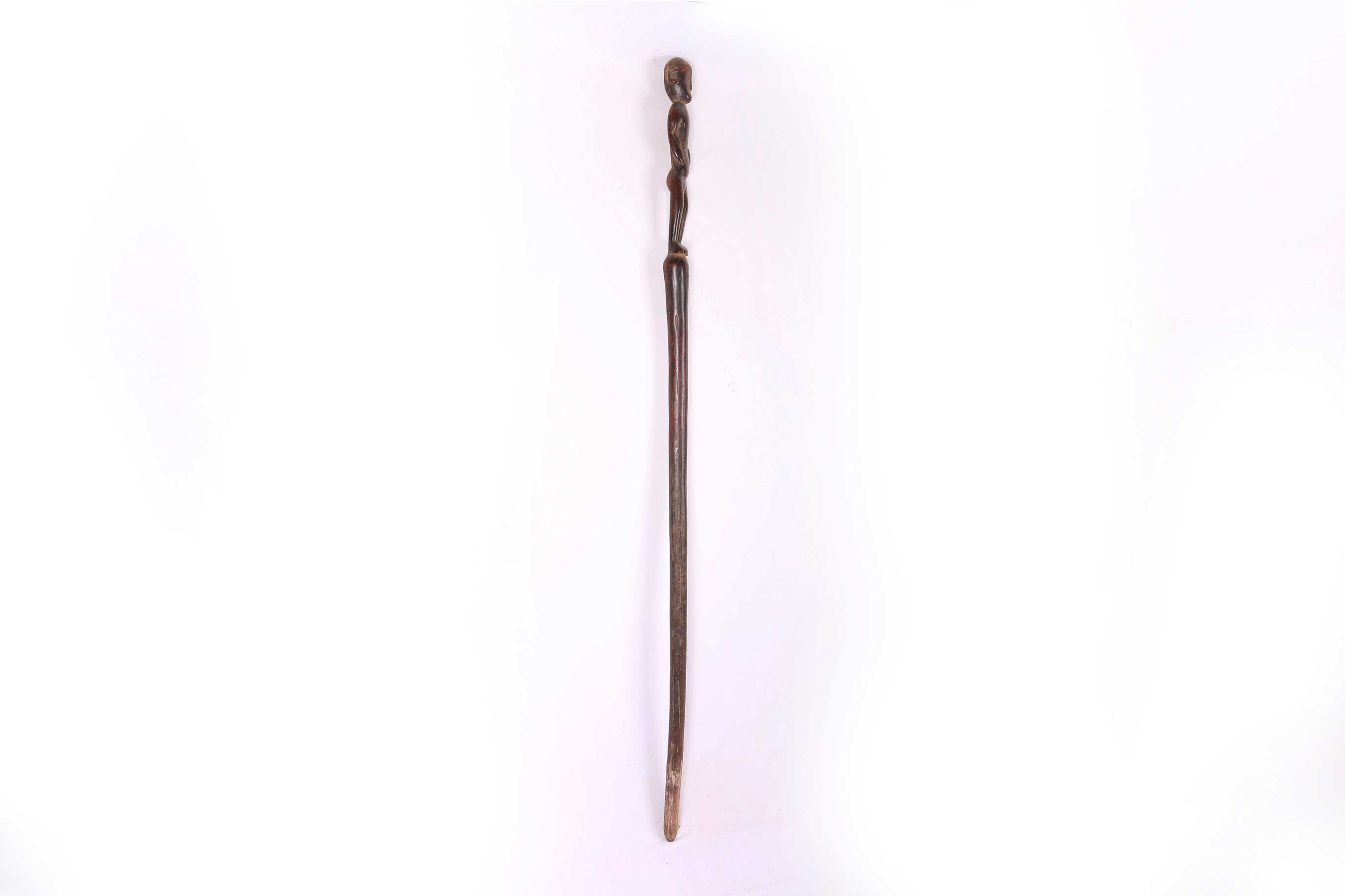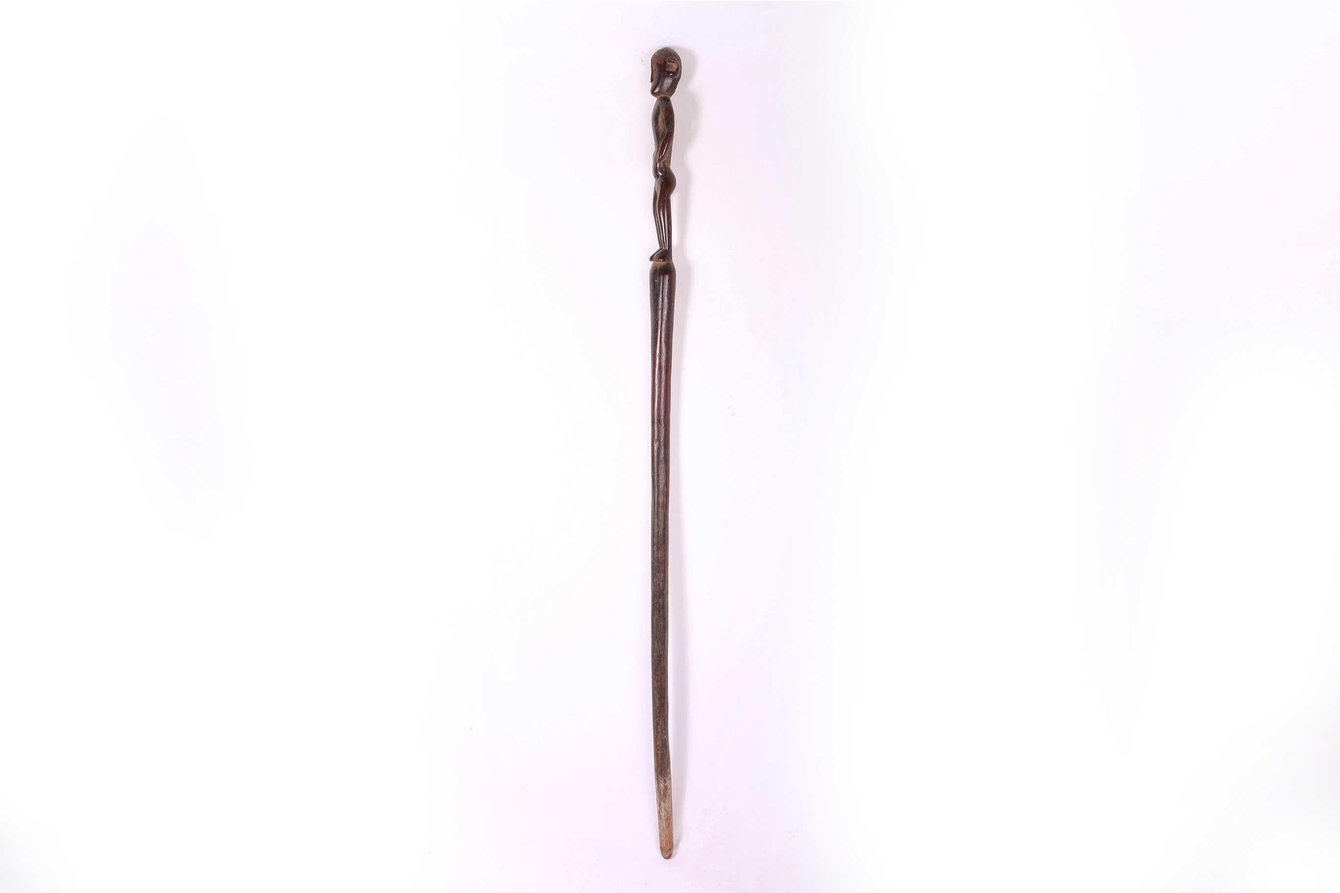 The Sukuma are an ethnic group inhabiting the southeastern African Great Lakes region. They are the largest ethnic group in Tanzania, Often the staffs represented the hierarchy among the chiefs of the tribe, who might carry a staff to show their rank as distinguished elders. The ornamental faces on the staffs can represent spirits, chiefs, or the chief’s ancestors. They are as much a religious symbol as an authoritative one.