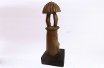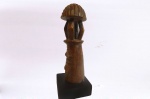 This is a very interesting traditional Tabwa tribal hand-carved wood figure from The Tabwa people living in the southeast of the Democratic Republic of the Congo to the northeast of Zambia, along Lake Tanganyika. The Tabwa carved wooden figures to represent ancestors, great healers, and earth spirits. Some of the Tabwa figures were kept by lineage elders in special buildings within their components, where the elders sometimes slept to receive ancestral inspiration in their dreams. The figures had powers to heal and protect. Tabwa art is both a symbol and an aesthetic statement.