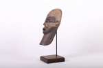 - The following mask has a black patina with scarifications on the face and a rather long neck.
