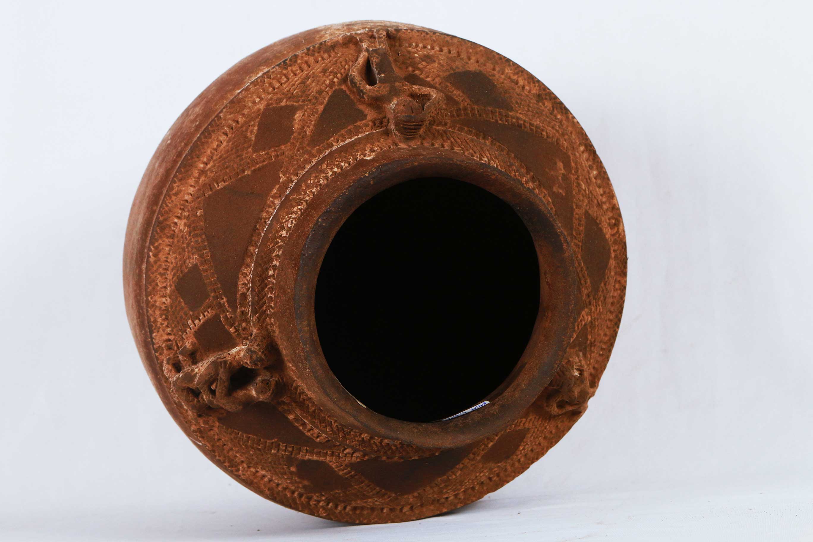 The Tabwa live mainly on the southwestern shores of Lake Tanganyika, on the high grassy plateaus of the Marangu massif in extreme southeastern Congo. Some also live in northeastern Zambia and along the Luapula River. African pots represent both conceptual ideas and practical utility. At once durable yet fragile, they have endured for centuries and through them, we can start to imagine the artists who shaped their form with their bare hands and crafted their features with crude tools. This pot was possibly used for storing beer or water. The following pot shows great age as well as usage.