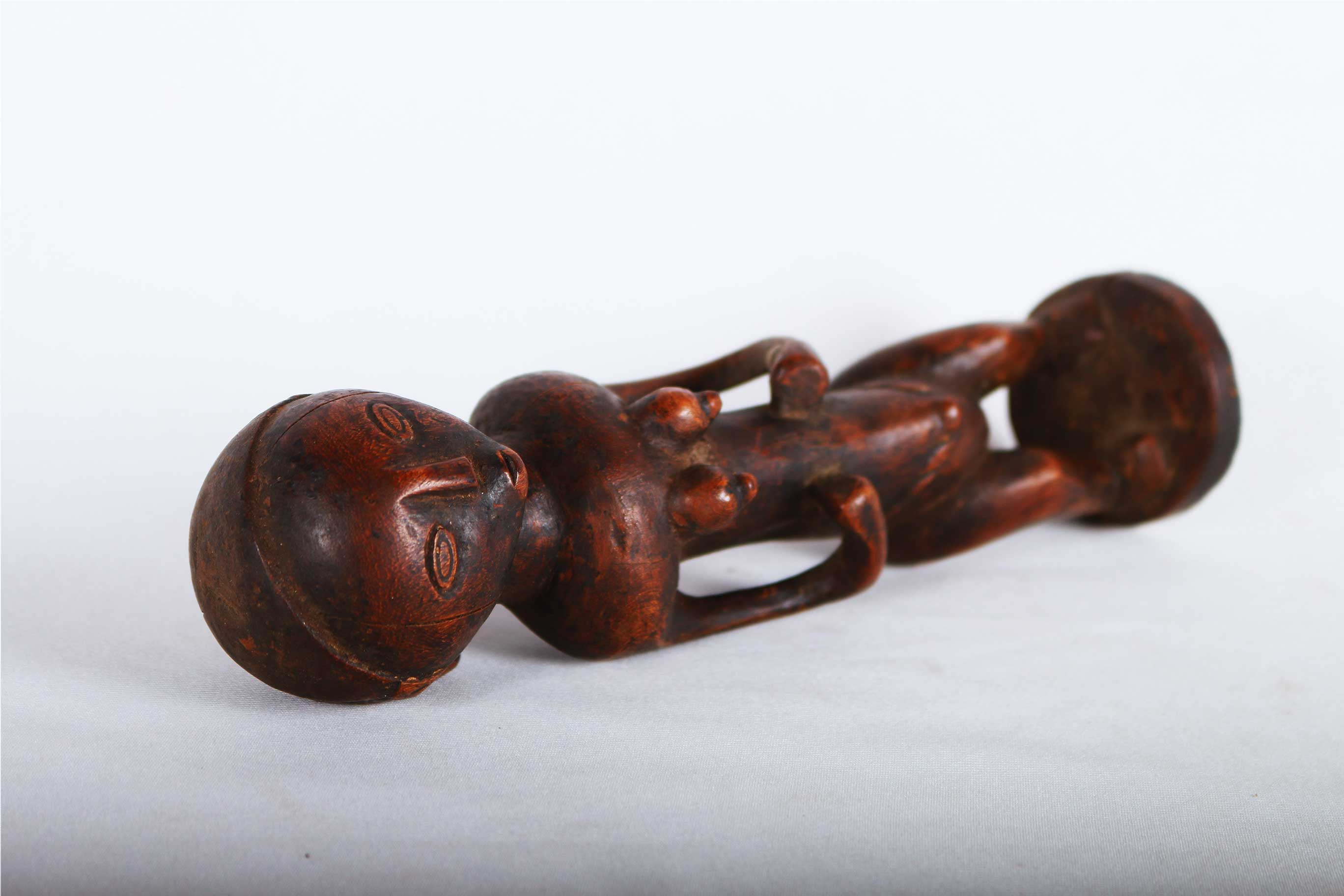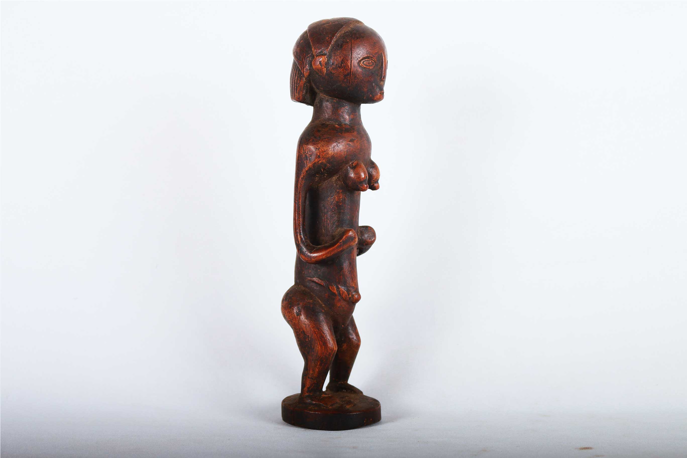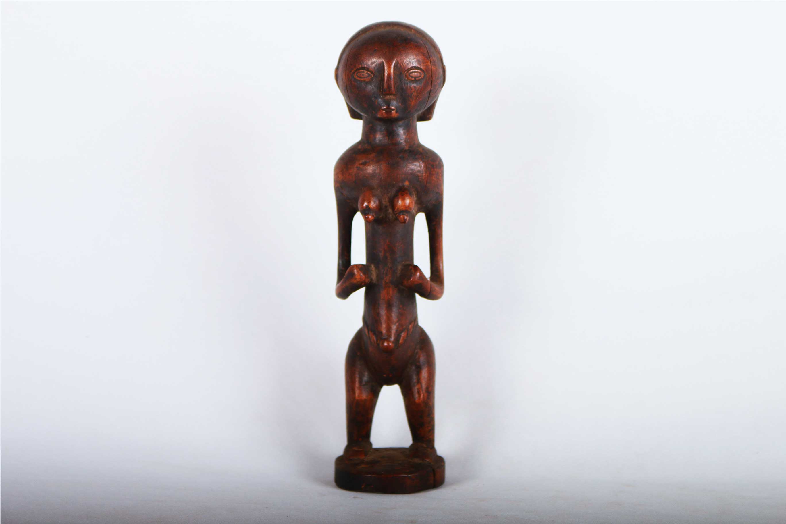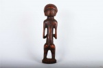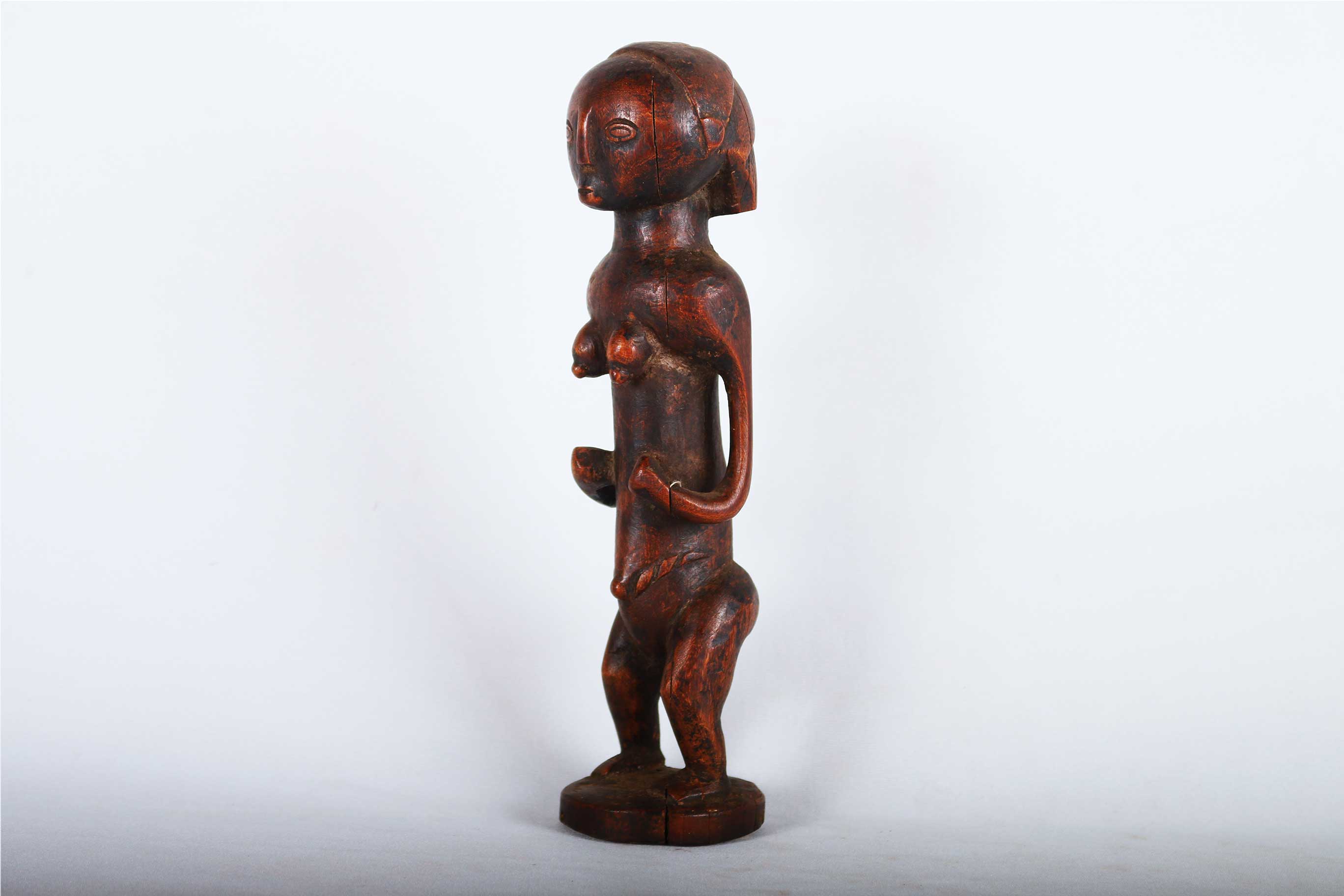 The Tabwa are an ethnic group living on the southwestern shores of Lake Tanganyika, and also found in the eastern Democratic Republic of the Congo. This is beautiful and elegant Tabwa sculpture, with a brown patina carved from wood. The Tabwa sculptures played a function of consolidating the power of the chiefs. Other statuettes were used for divination.