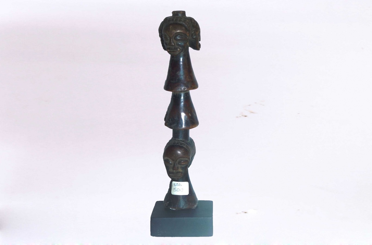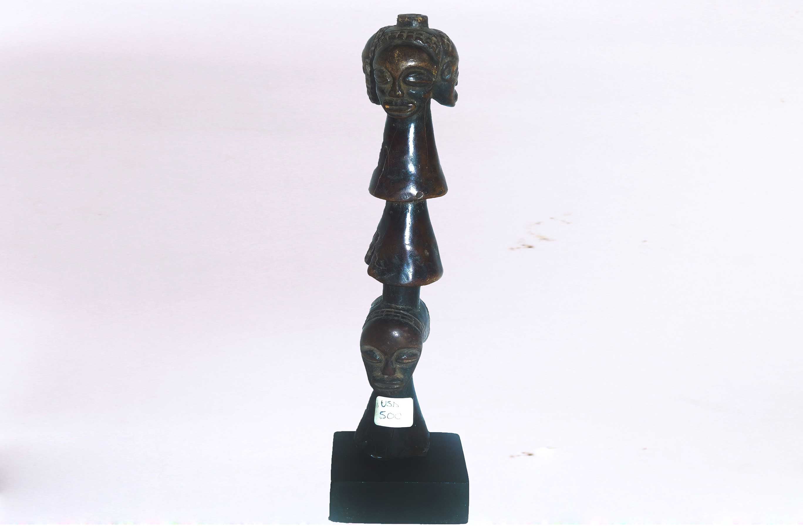 The Tabwa people live in the southeast of the Democratic Republic of the Congo to the northeast of Zambia, along Lake Tanganyika. The Tabwa carved wooden figures to represent ancestors, great healers, and earth spirits. Some of the Tabwa figures were kept by lineage elders in special buildings within their components, where the elders sometimes slept to receive ancestral inspiration in their dreams. The figures had powers to heal and protect. This is an old miniature figure with a shiny dark patina and looks visibly old.