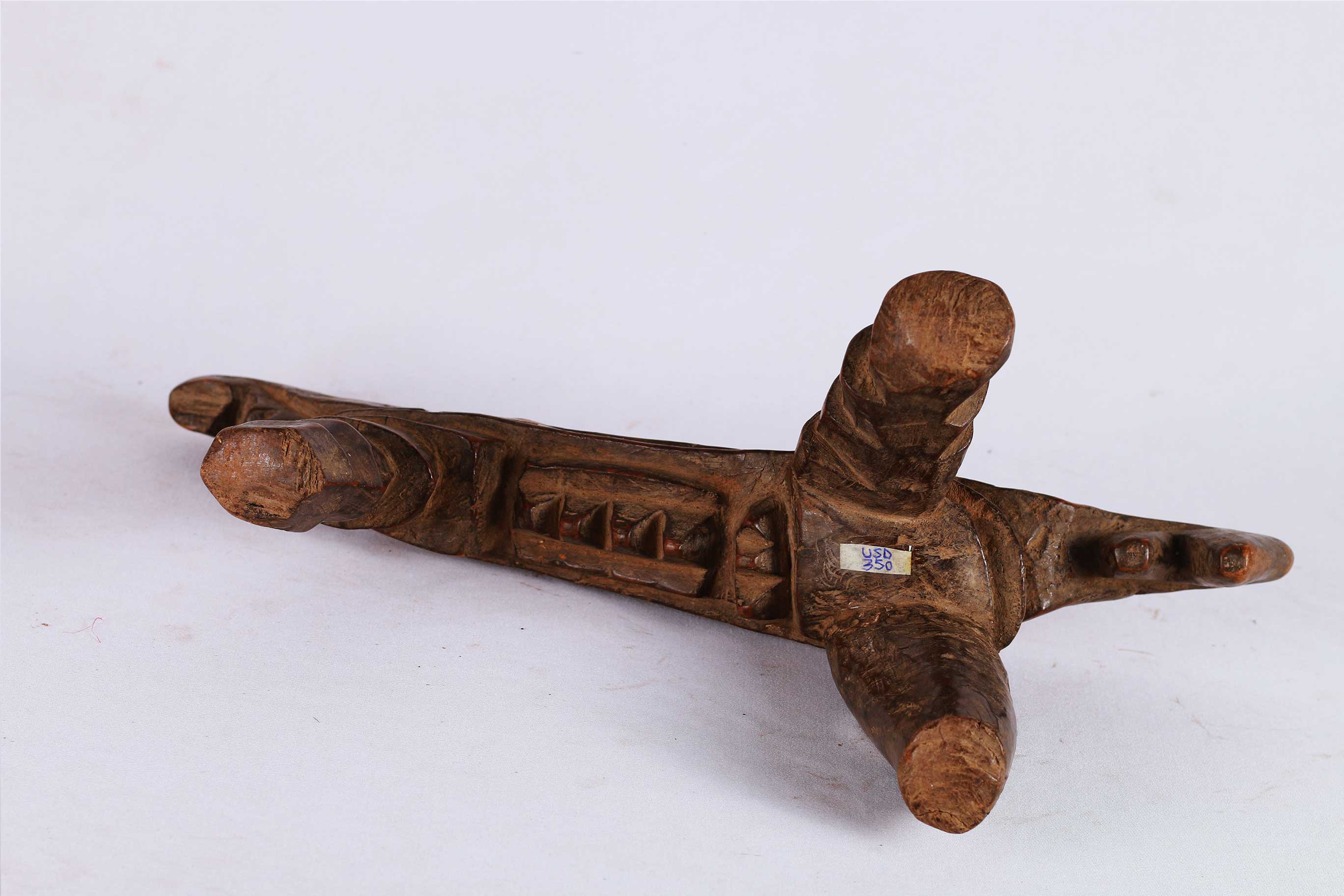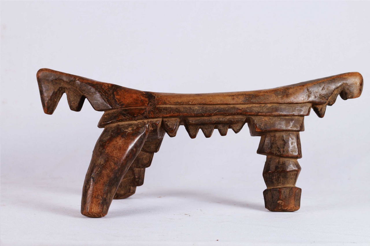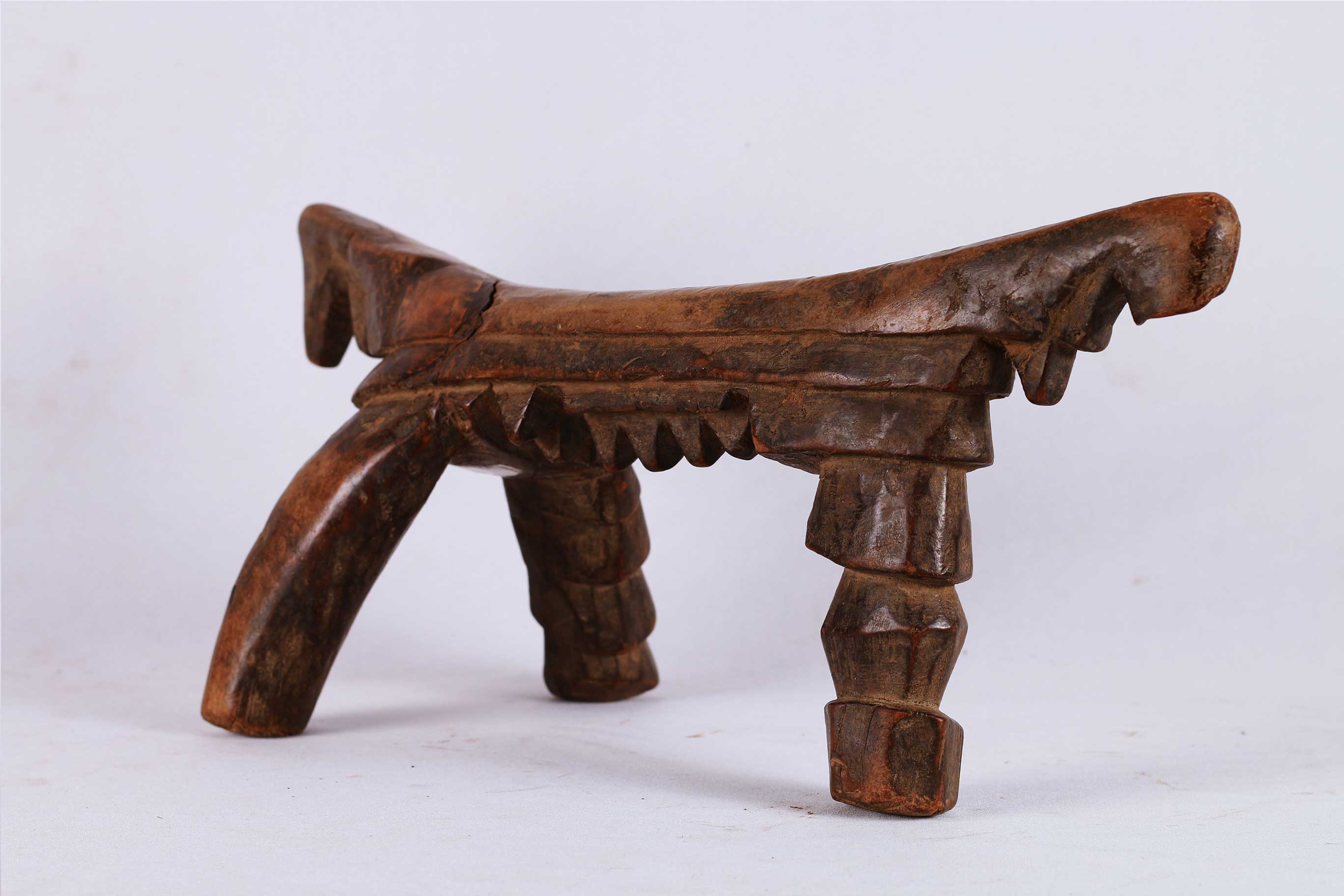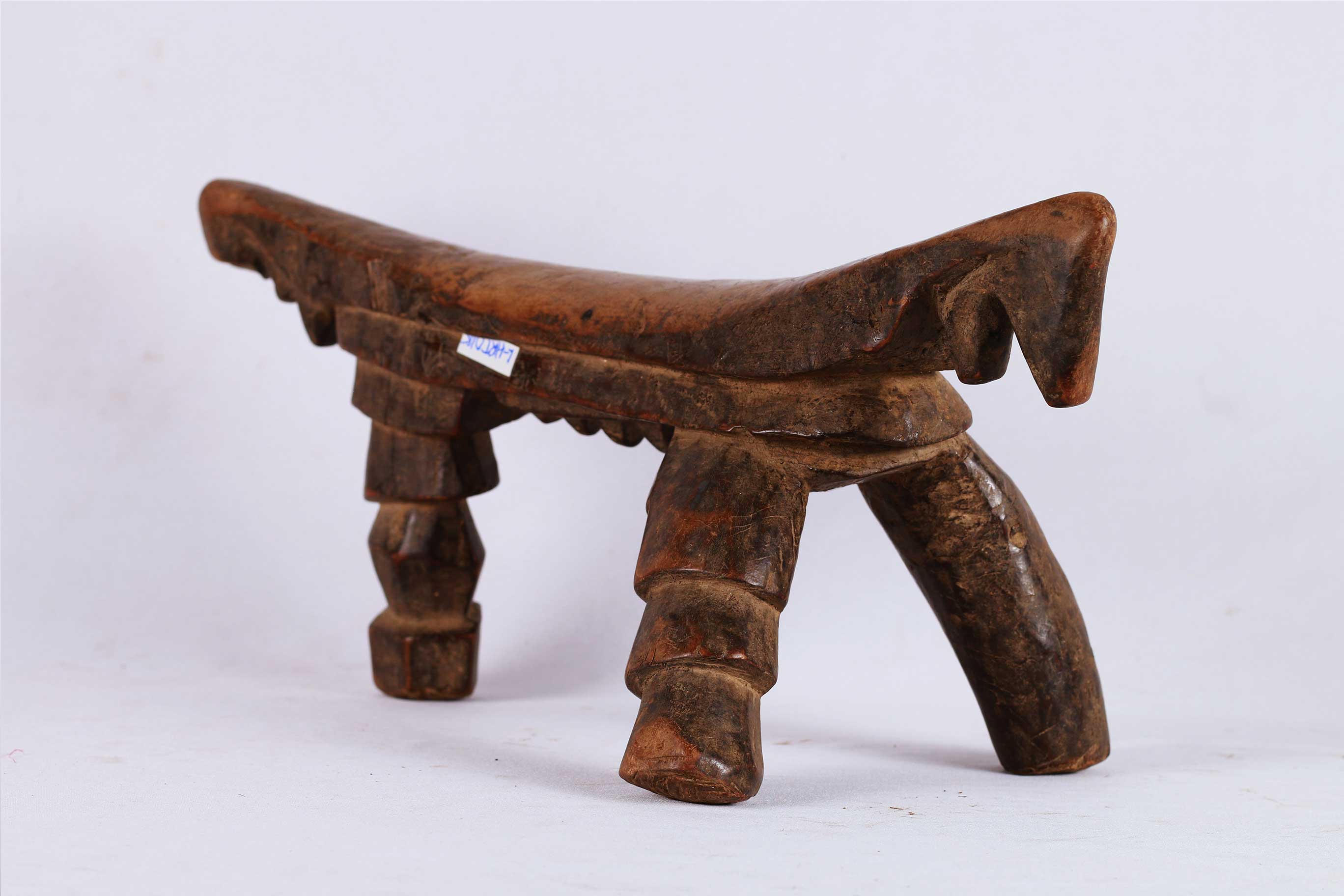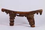Toposa headrest originates from Southern Sudan and was used by the Toposa, Didinga and Larim in Sudan and also across a wide area of northern Uganda, Kenya and in adjacent areas of Ethiopia to protect elaborate hairstyles. The following headrest is made from hardwood and shows significant age as well as usage.
