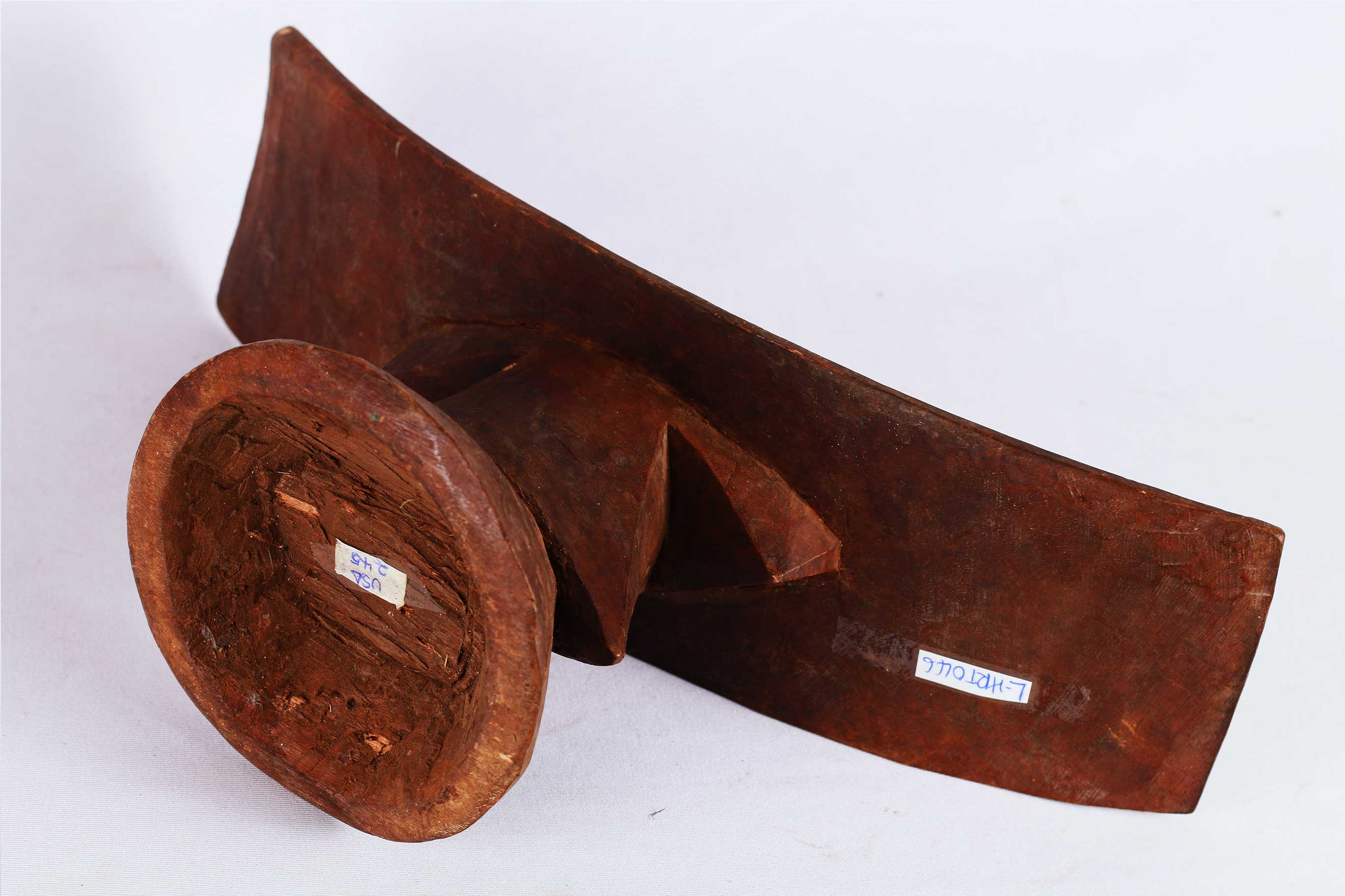 Toposa headrest originates from Southern Sudan and was used by the Toposa, Didinga, and Larim in Sudan and also across a wide area of northern Uganda, Kenya and in adjacent areas of Ethiopia to protect elaborate hairstyles.